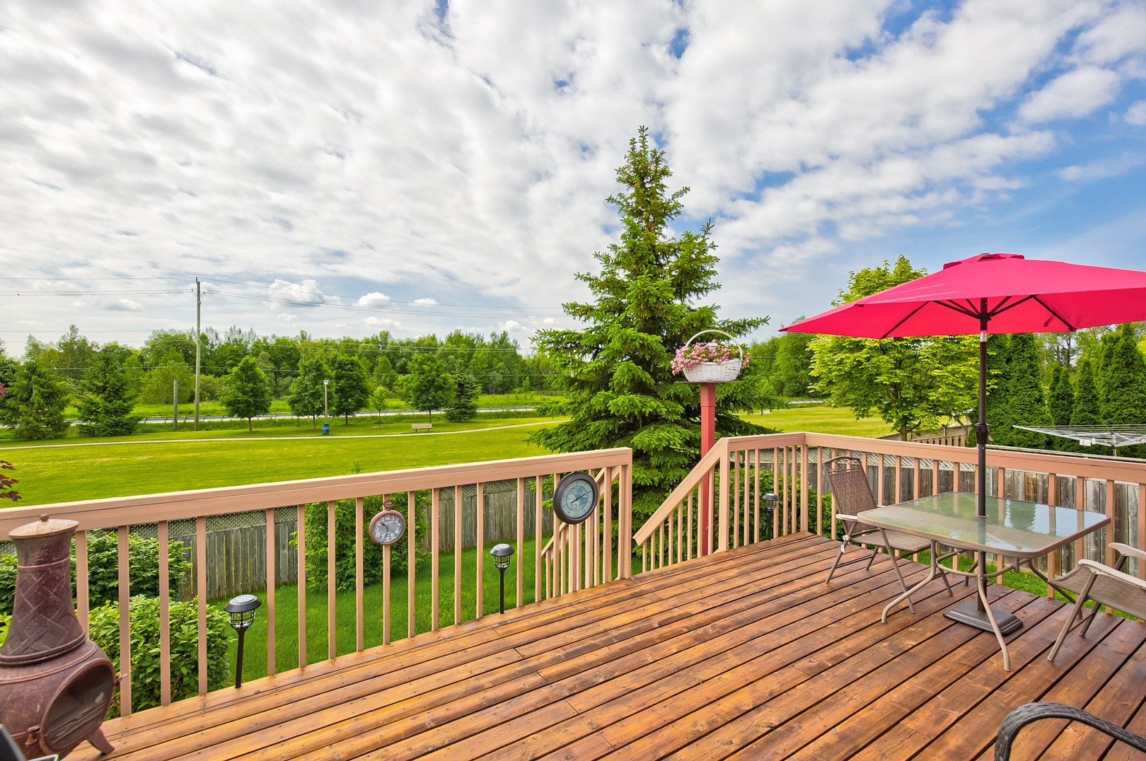 Large deck, perfect for entertaining, backs onto a gorgeous park, with clear views to the forest. Beautifully landscaped and manicured gardens adorn the large 50 foot lot.