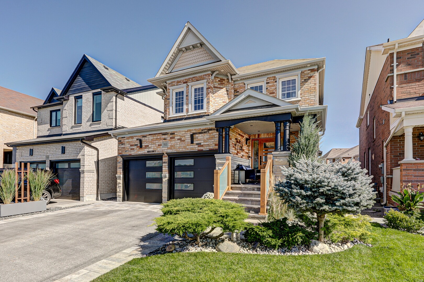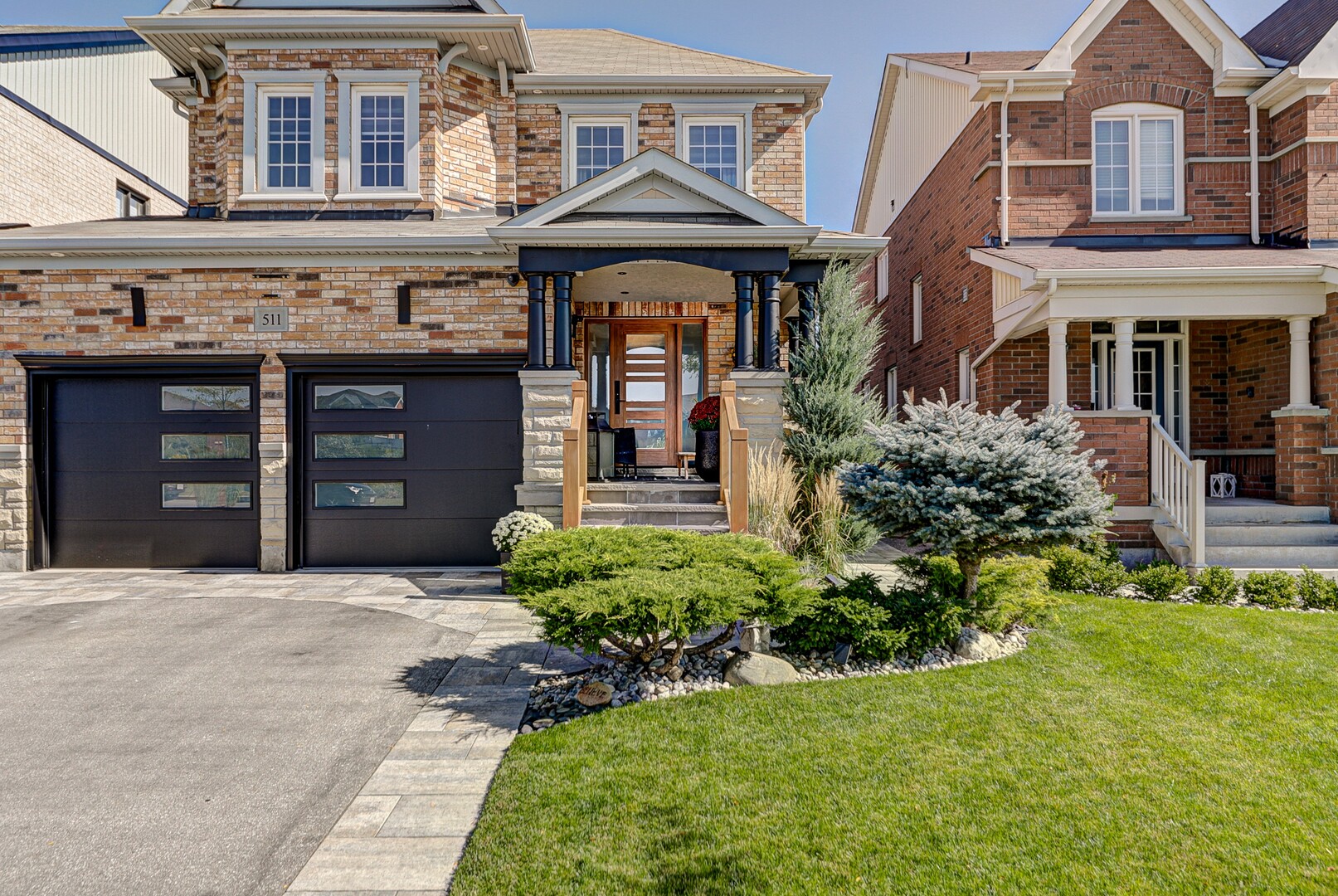 Welcome to this exquisite home! Enjoy over 3000sqft of living space. This 2-story 4-bedroom home fronts on Nature Trails & close to pond. Fiberglass front door is stunning and provides high security. Gorgeous engineered hardwood floors throughout. Kitchen has quartz waterfall counters and quartz backsplash behind WOLF Professional Gas Stove & Commercial Hood Vent (8in). Large family room with gorgeous high vaulted ceiling and architectural fireplace. Basement in-law suite is perfect for a separate living quarters for family member. Inc. fireplace, LED lighting throughout w/ dimmers, kitchenette, 4pc luxury on-suite w/ heated floor. Large finished pantry, cold cellar, workout gym (rubber flooring). Custom built garden shed (backyard), professionally landscaped, natural stone-porch-pathways. Rough-In Electrical for Hot Tub. Over $100,000 in upgrades that are visible throughout the property. Family home is ready to move in!