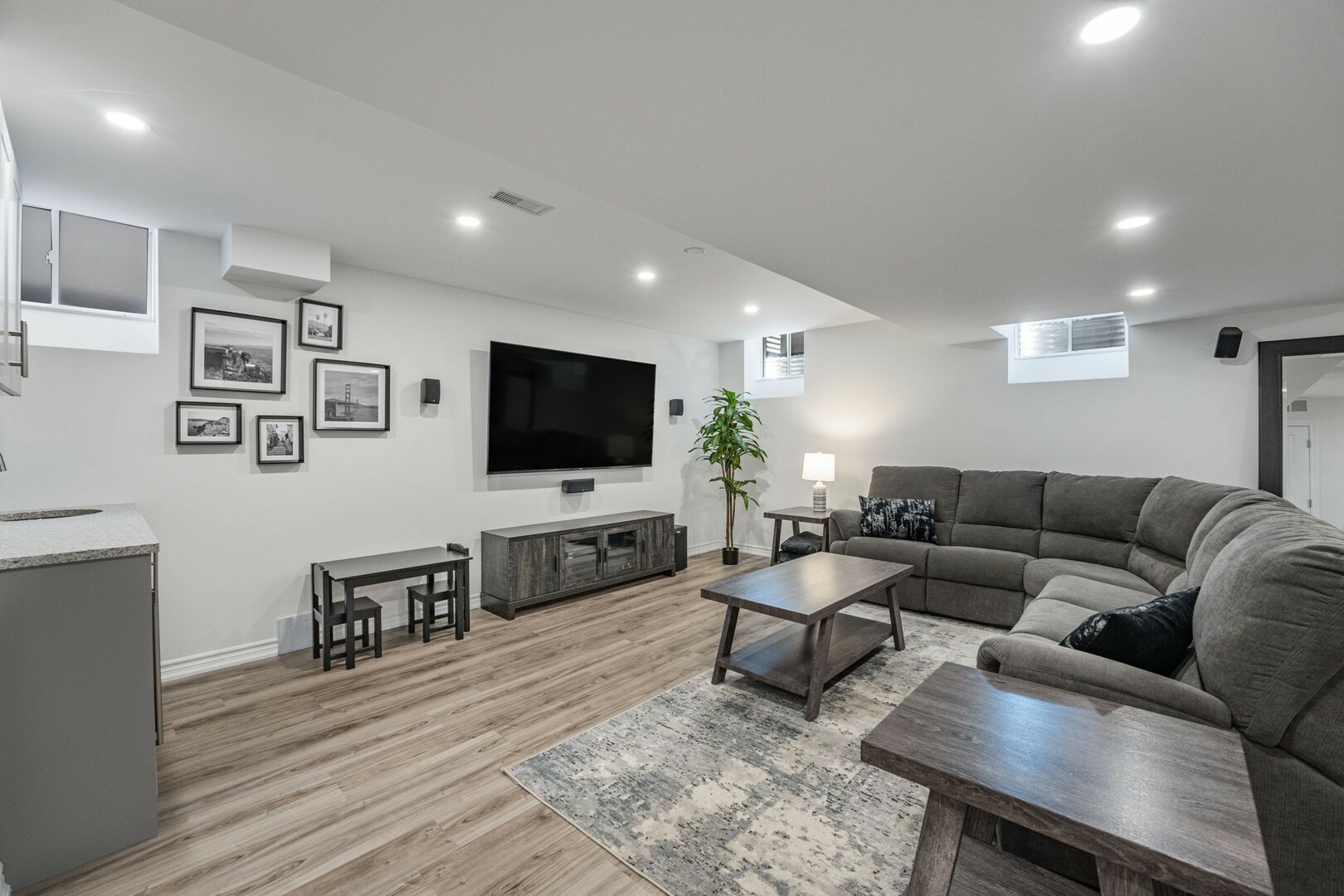Stunning home on a 45ft lot. Chef's kitchen w/quartz countertops, GE Monogram gas range w/grill, breakfast bar, w/out to maintenance free composite deck (2019) & fenced yard. Features wide plank bamboo hardwood floors, pot lights, smooth 9ft ceilings & 3 sided fireplace. Entertainer's basement (2021) complete w/wet bar, 3pc bath, cold room & Queen size murphy bed. Primary renovated 5pc ensuite w/dual vanities, corner tub, glass shower (2024) & walk-in closet. 2nd floor Media room, office or potential bedroom with balcony. Shingles (2018), Furnace Heat Exchanger (2024), paved 4 car driveway & interlock (2024). Includes Stainless Steel 36' Fridge, 36' Gas Stove, Dishwasher, Microwave, Washer, Dryer, Shed, C/Air, C/Vac & attachments, Security System, Garage Door Opener & Remotes. Prime location near schools, park, and future amenities.