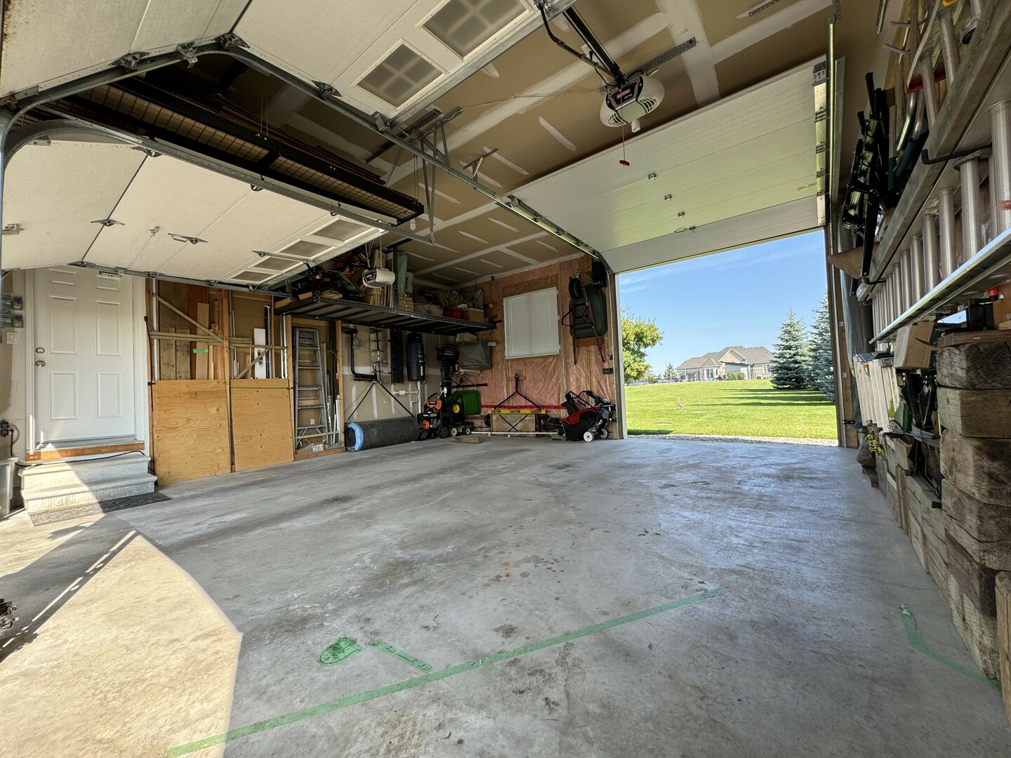 5 insulated 9 ft wide garage doors with garage door openers, 4 car garage on the east side has a pass through to the back yard.