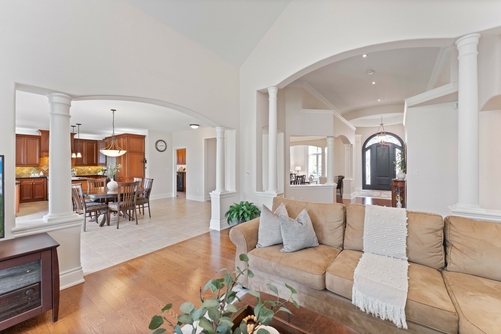 Almost 6000 Square feet of potential living space, Four car garage! Close to GO! Nestled in a private court in Bradford West Gwillimbury, this exquisite bungalow invites you to experience a harmonious blend of elegance and functionality. This newly and prof painted home is a testament to meticulous craftsmanship and thoughtful design. A major highlight of this home is that it offers two double car garages, with a 5th door which acts as a pass through to the back yard. A separate list of upgrades is available upon request. Included in this sale: Stainless steel Kitchen Fridge, Gas Stove, Dishwasher (5/2024), Microwave, Exhaust fan, Clothes Washer/Dryer (11/21), CVAC and attach, Hunter Douglas blinds throughout main level with remote in fam room, security cameras, monitoring system, attic TV antenna as is, HTW19, 22 KW whole home generator, Water soft/ Water filter.+ UV systems, HRV, TWO stairwells to bsmt, main floor and service stairs access to both garages from side vestibule(continued) Hi eff: furnace, air filter and humidifier. Sump pump alarms and backup, Septic pump chamber alarm, Whole home surge protection, Drilled well, Gas Fireplace with blower fan, Coax cable throughout, Rough-in bathroom In basement.