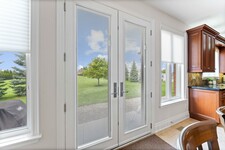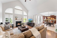 Hunter Douglas blinds / luminettes throughout main level with remote in family room