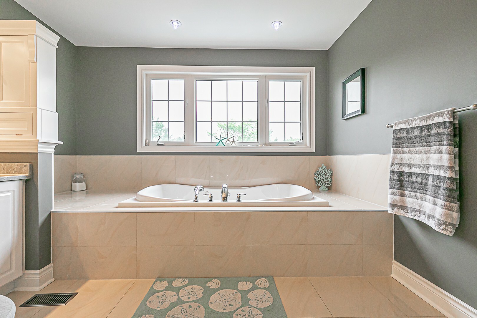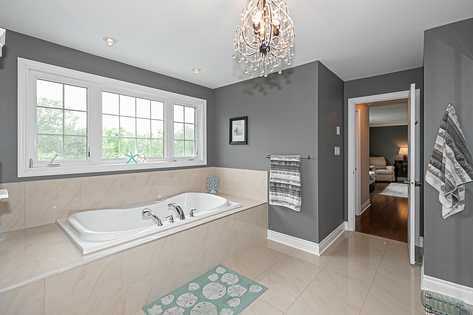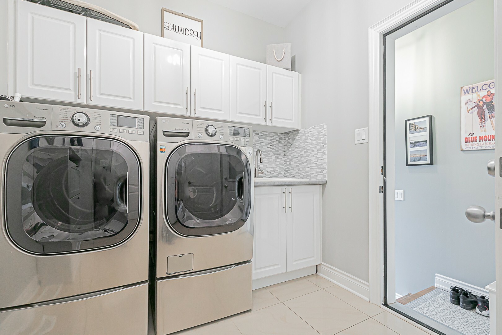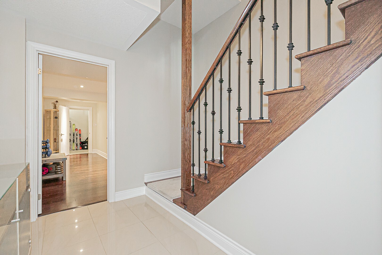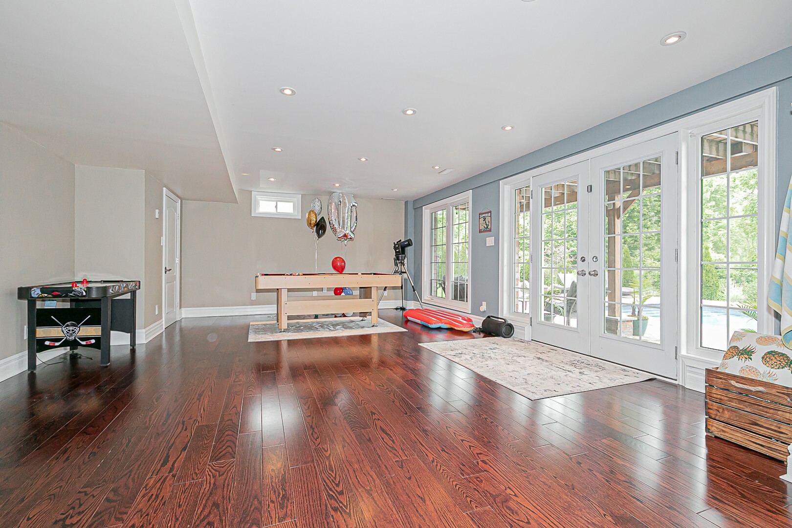 The main level boasts a four-piece bathroom, a convenient garage entry, a well-appointed laundry room, and a second staircase leading to the basement. This thoughtful design allows for potential in-law accommodations or simply provides the opportunity to enjoy the expansive living space in the basement. The lower level features a cozy gas fireplace, an exercise room, a luxurious four-piece bathroom, a sauna for indulgent relaxation, and a versatile den/office or additional bedroom. A cantina and ample storage space complete this level.
