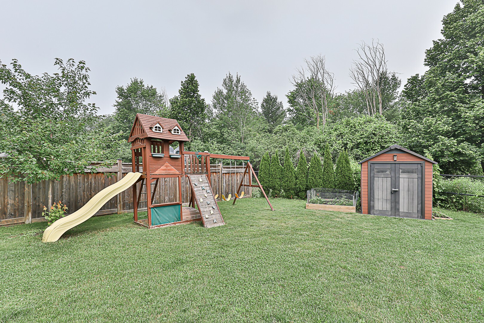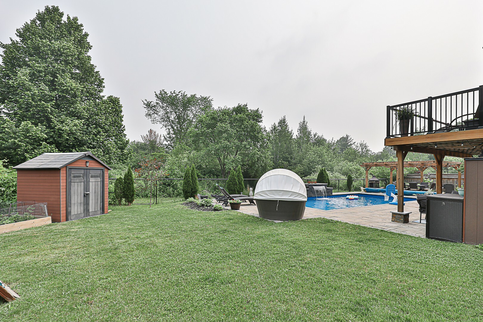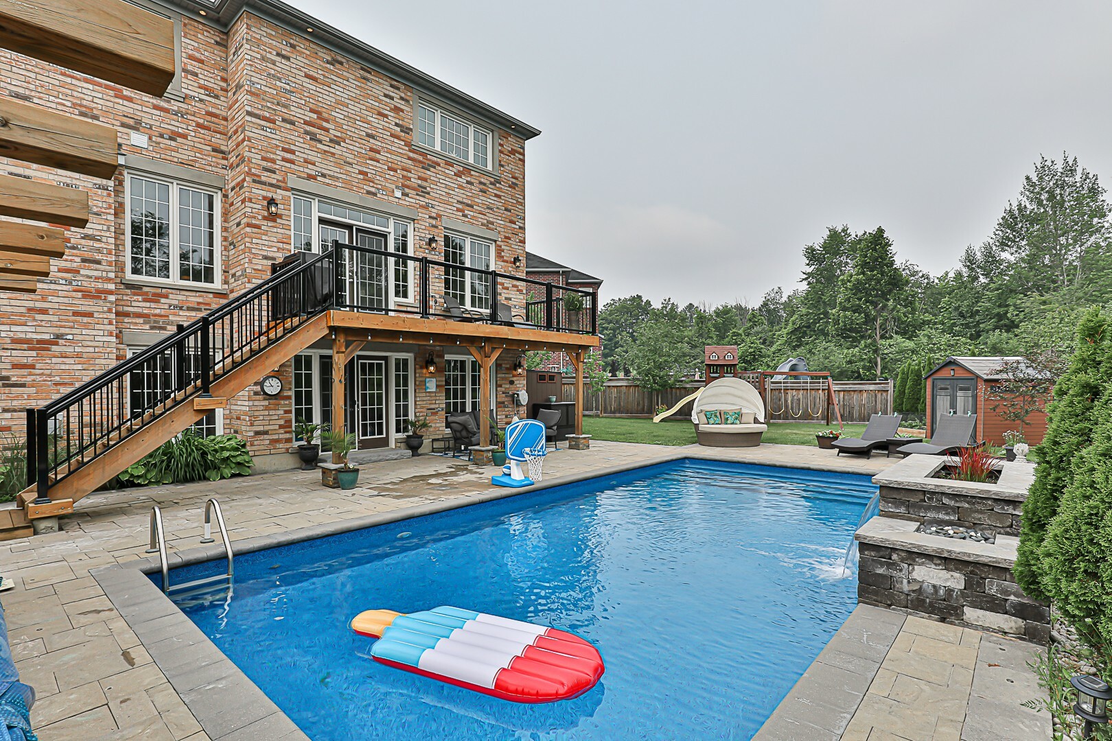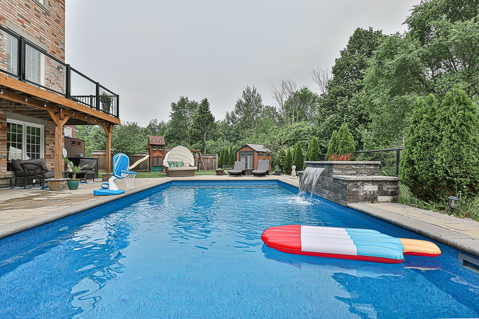 Welcome to the ultimate family haven that checks all the boxes in one remarkable package. This exceptional home is ideally situated, backing onto a protected area, and sits on an irregular shaped lot that is fully fenced. As you explore the backyard oasis, you'll discover a heated saltwater pool, a delightful playground area, a convenient garden shed, and a captivating patio that leads to the finished walkout basement.