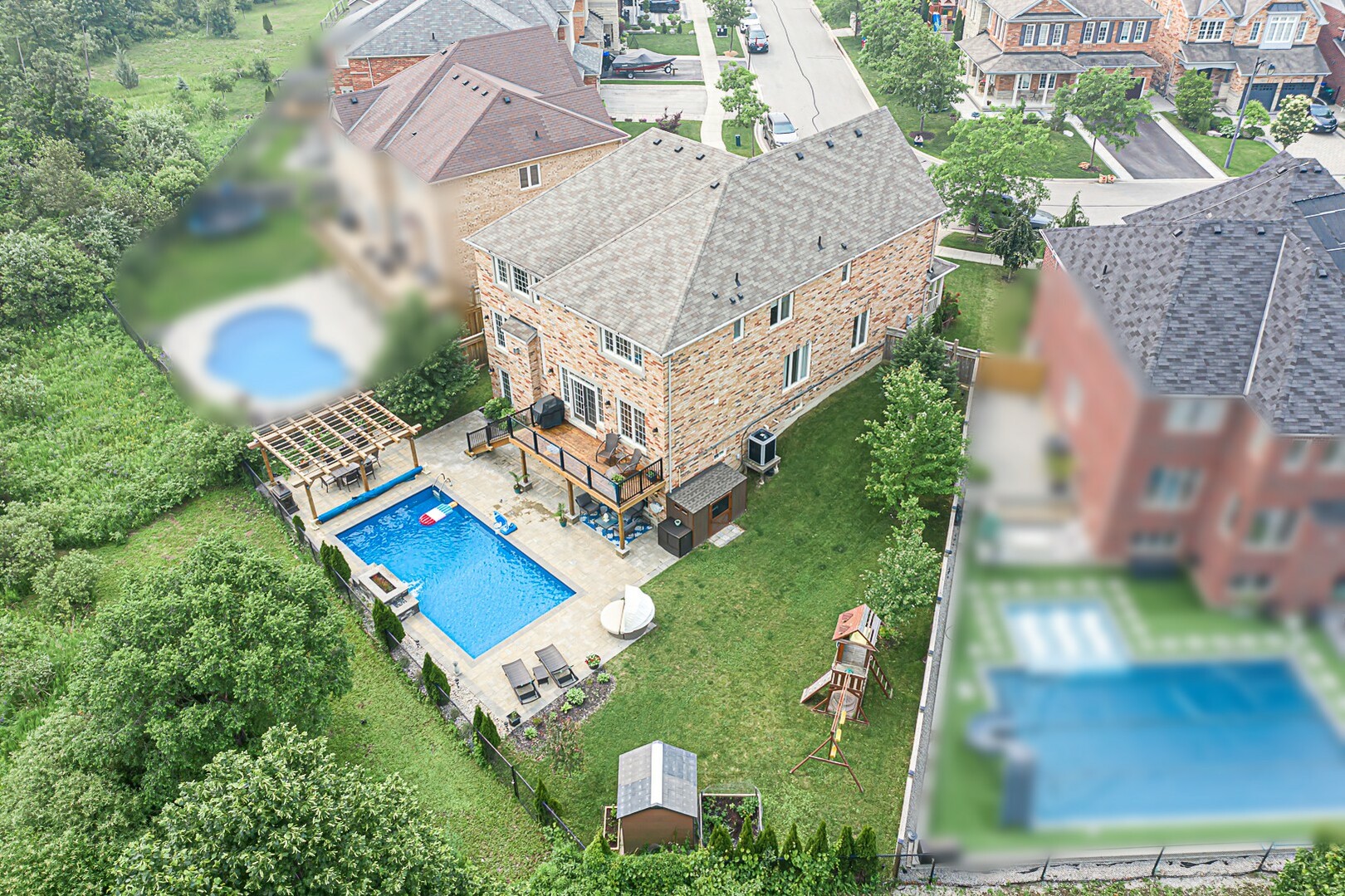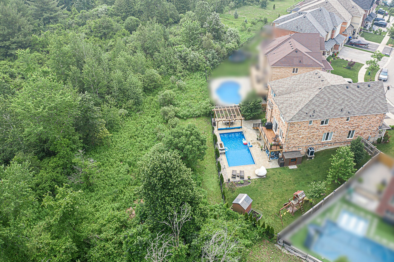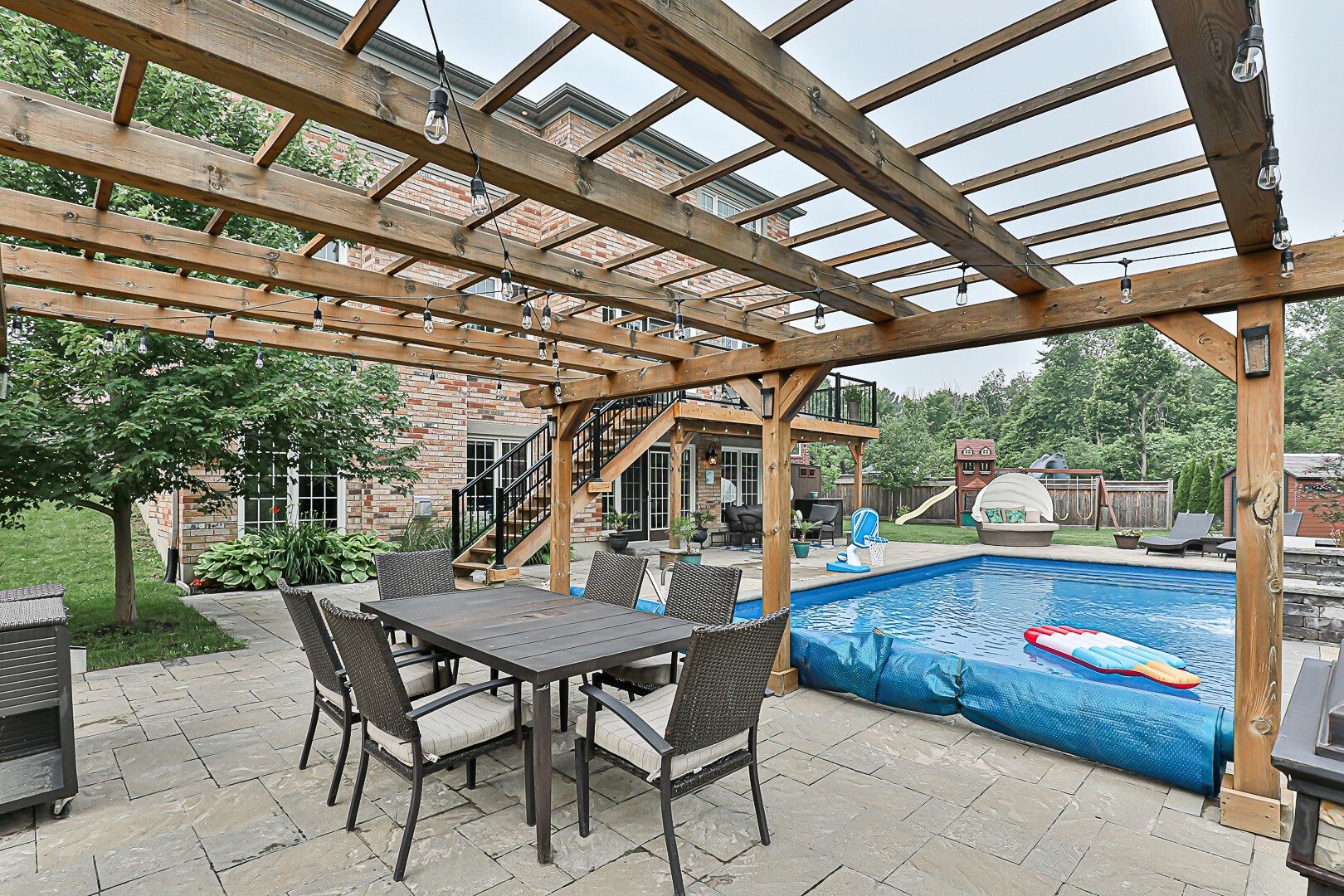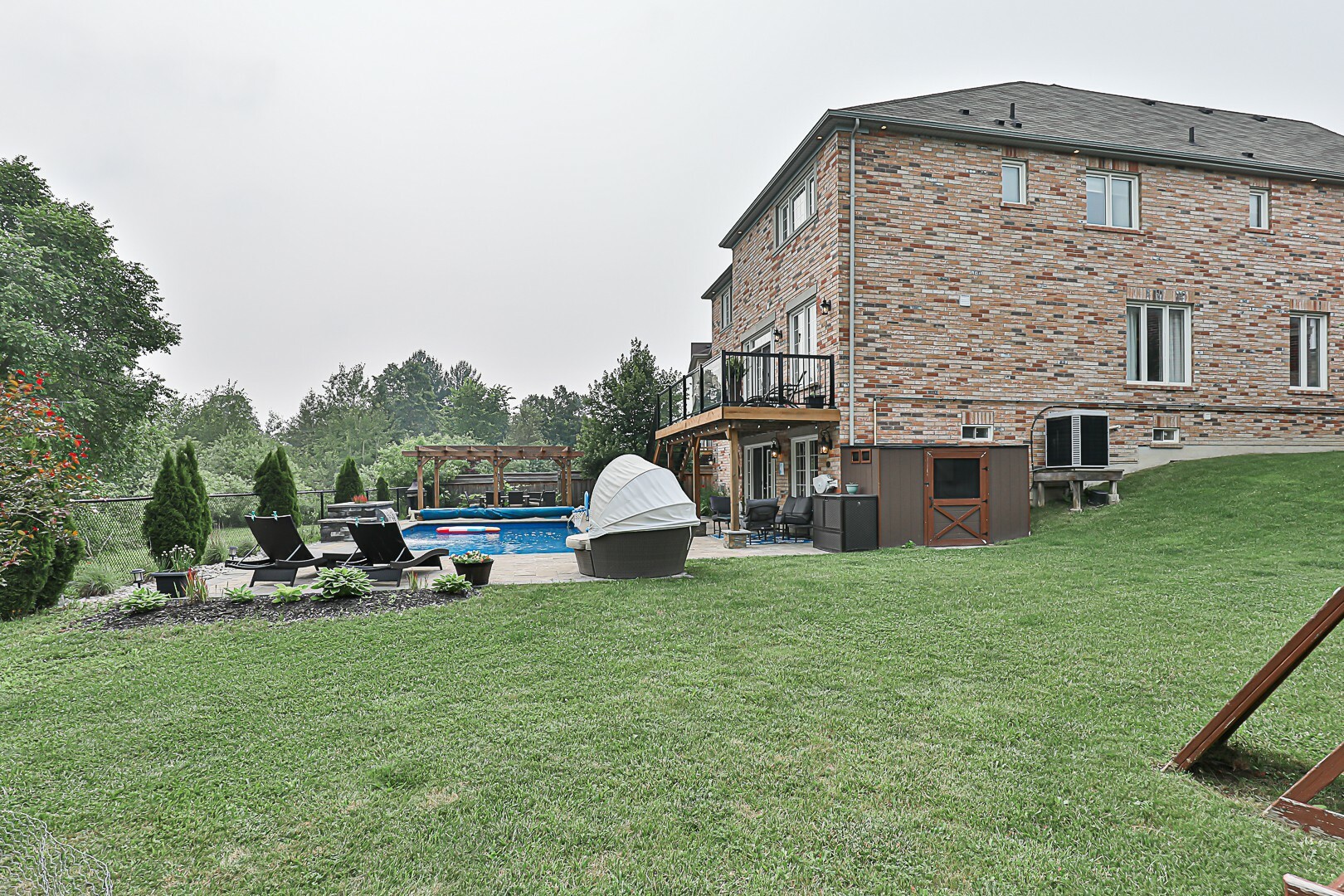 Welcome to the ultimate family haven that checks all the boxes in one remarkable package. This exceptional home is ideally situated, backing onto a protected area, and sits on an irregular shaped lot that is fully fenced. As you explore the backyard oasis, you'll discover a heated saltwater pool, a delightful playground area, a convenient garden shed, and a captivating patio that leads to the finished walkout basement.