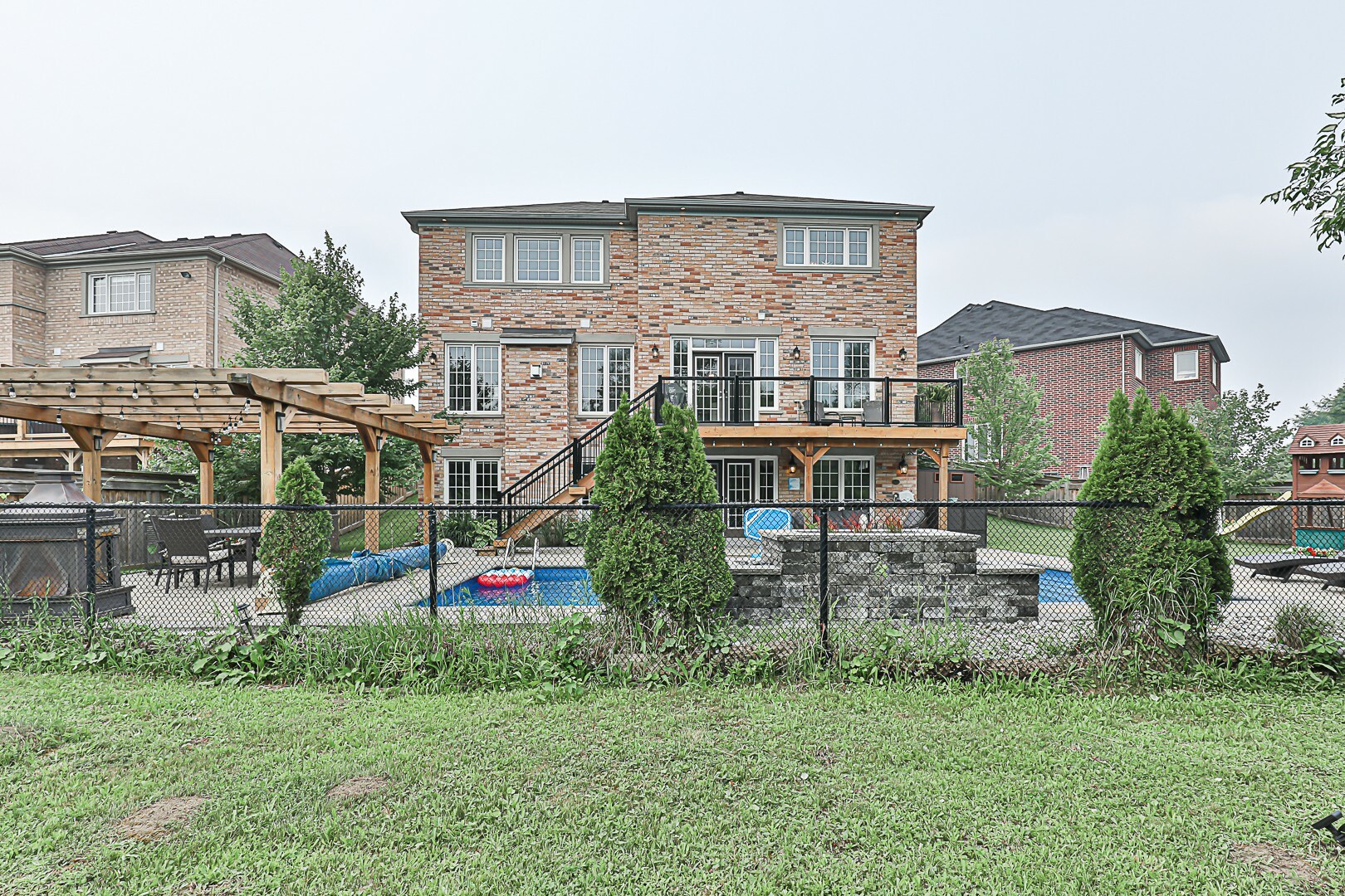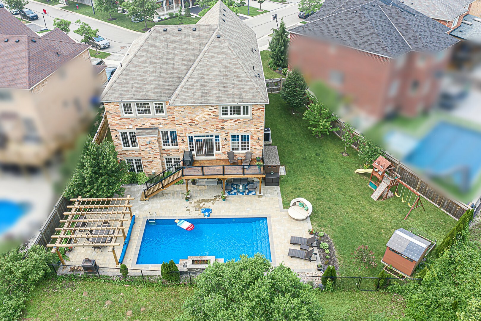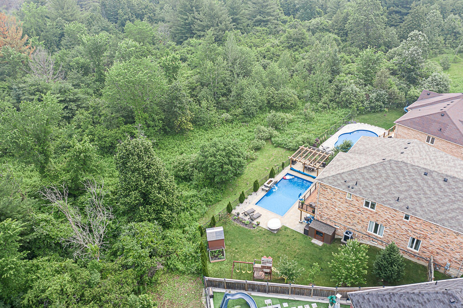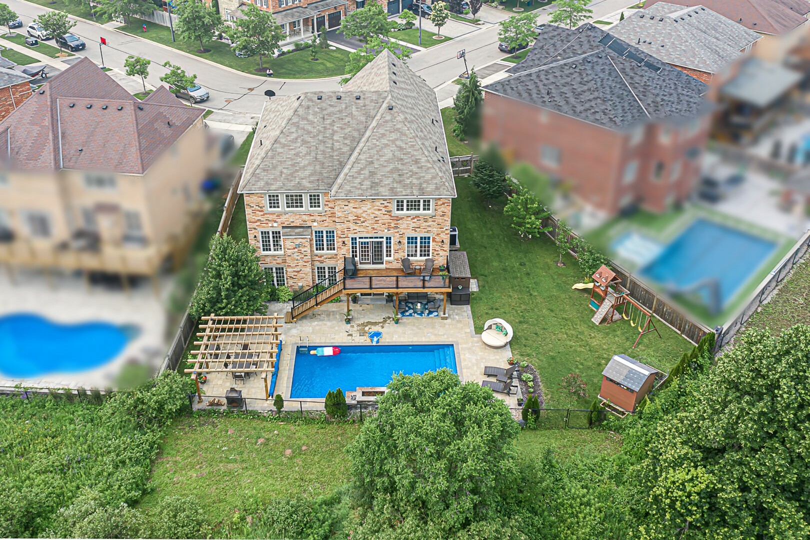 Welcome to the ultimate family haven that checks all the boxes in one remarkable package. This exceptional home is ideally situated, backing onto a protected area, and sits on an irregular shaped lot that is fully fenced. As you explore the backyard oasis, you'll discover a heated saltwater pool, a delightful playground area, a convenient garden shed, and a captivating patio that leads to the finished walkout basement.