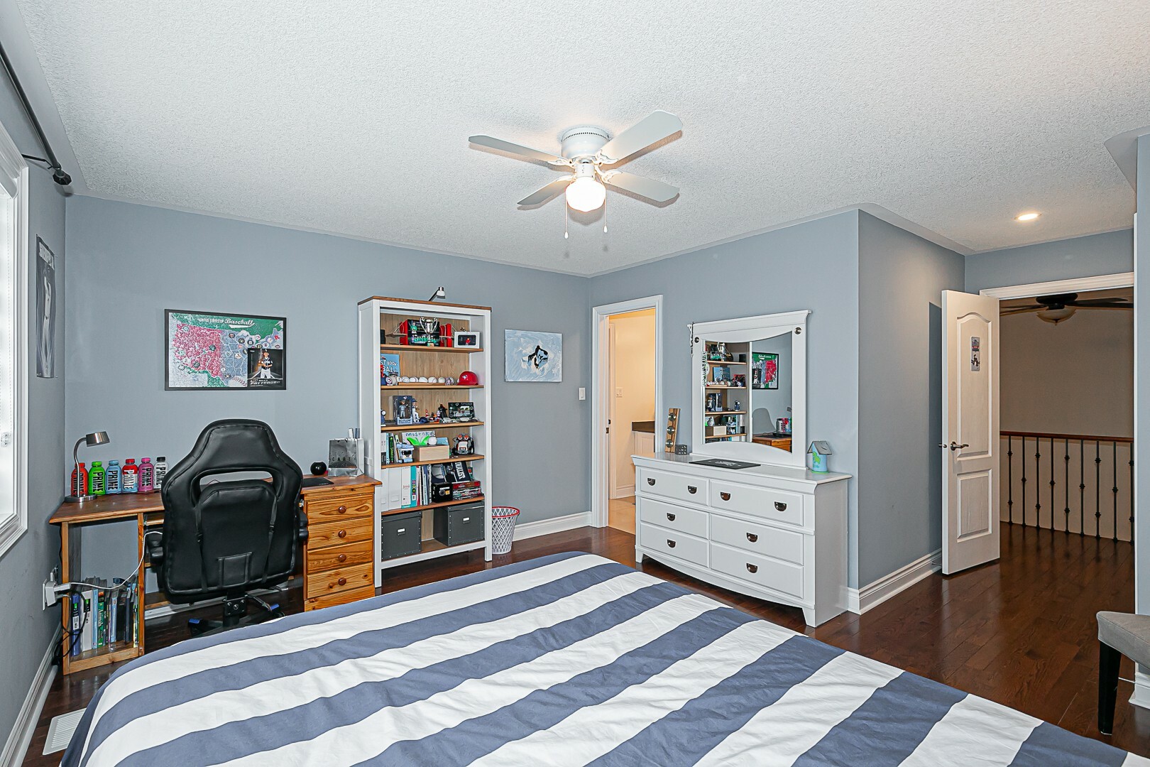 Moving to the upper level, you'll find five cozy bedrooms, each offering bathroom access for added convenience. Some of the bedrooms share Jack-and-Jill style arrangements, providing a practical yet comfortable living arrangement. Additionally, the open area on this level accommodates a study or games area, ensuring there's a dedicated space for work or play.