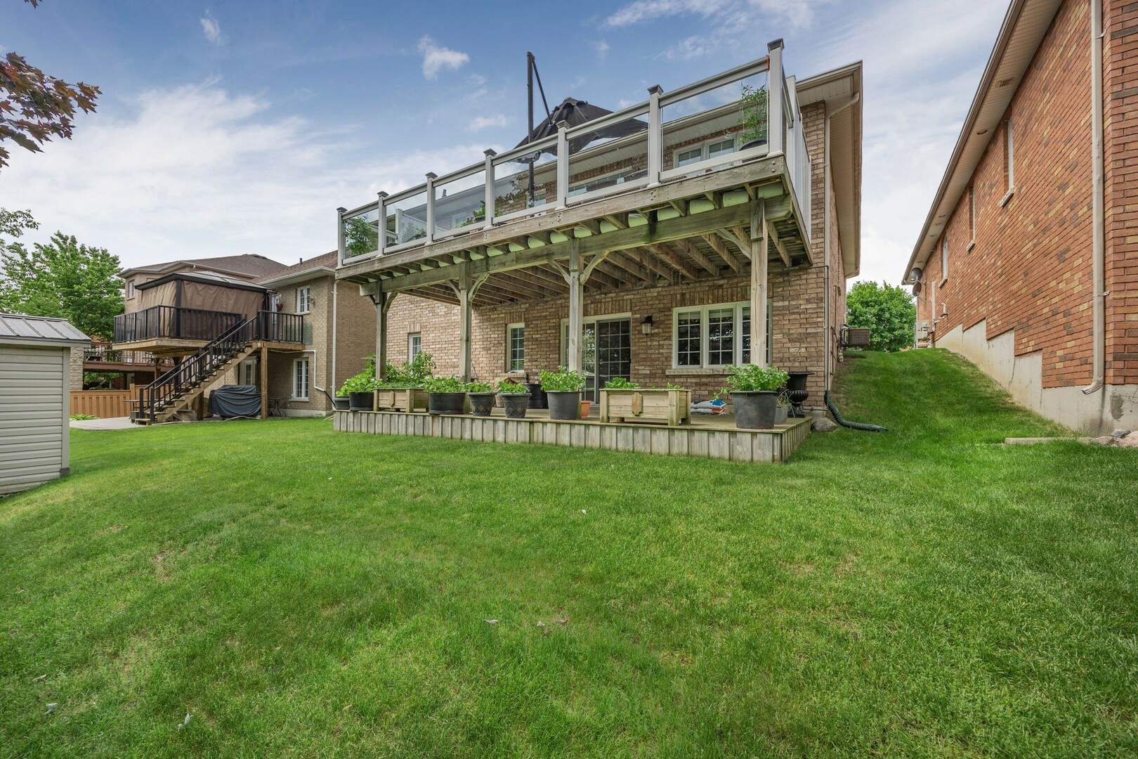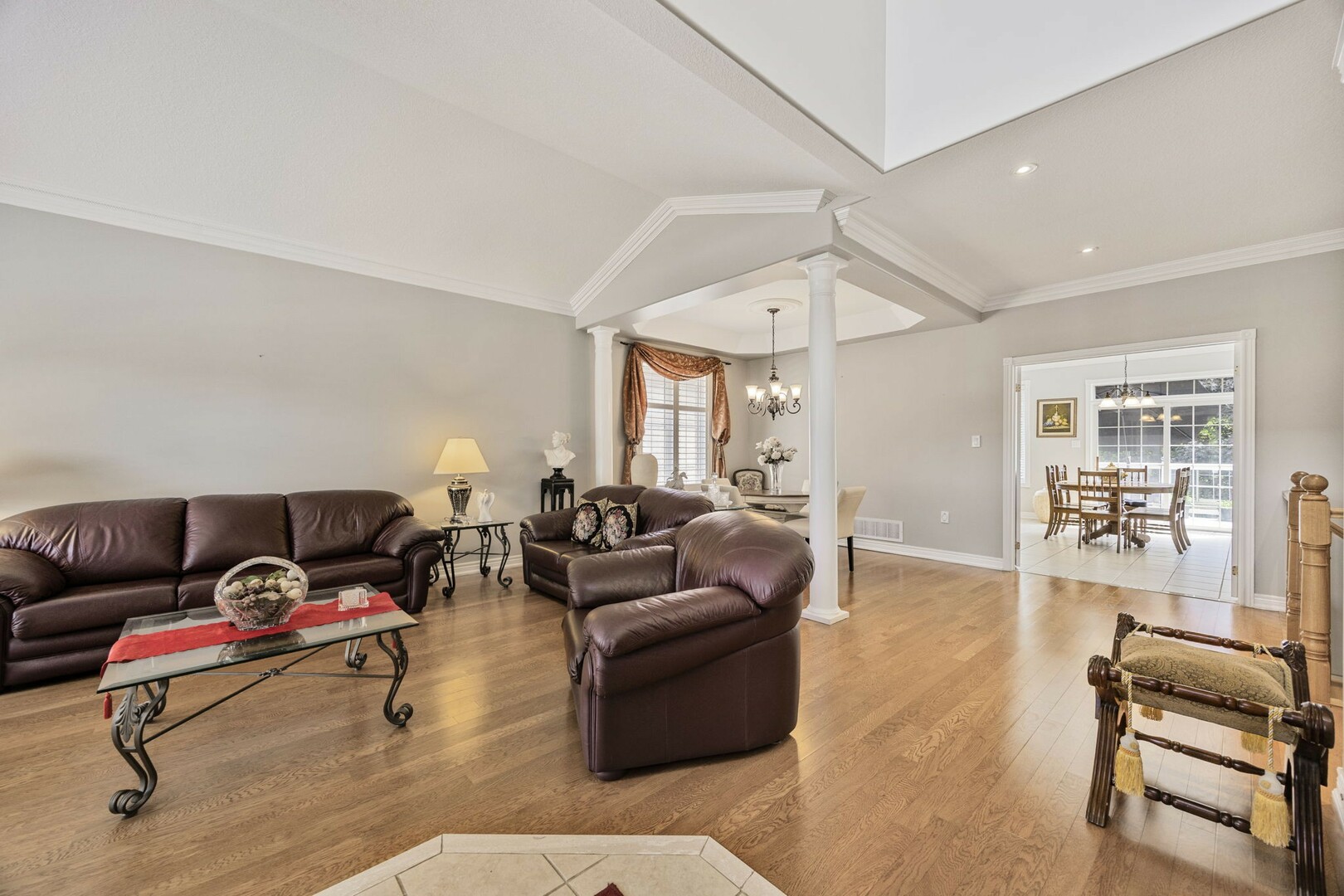 Welcome to this Immaculate and Stunning 3+2 Bedroom, 3 full Bathroom Bungalow with a 2-Car Garage featuring Inside Entry with a Loft Storage Space to this gorgeous home. Upgraded W/ A Grand 17-foot Entryway, California Shutters, Califonia Knockdown Ceilings, Rounded Corners, Pot Lights, Plaster Crown Moulding, 9'Ceilings, & Hardwood Floors On Main. The Kitchen Features Granite Counters W/Backsplash, Breakfast Bar, Stainless Steel Appliances & A Walkout To The Large Upper Deck. Primary Bedroom Features Hardwood Floors and Large enough for a King Sized Bed with a 4 Pc Ensuite complete with a Soaker Tub and Separate Shower & a Walk-in Closet. The Dining Room has a Coffered Ceiling and Pillars to separate the space from the Living Room with Vaulted Ceilings. Main Floor Laundry with access to the Garage. The Bright Walk-Out Basement is an Entertainers Dream with a Large Open 800+ Sqft Great Room W/ a Fireplace & Wet Bar. The Basement Features a Bedroom with a Semi-Ensuite Bath, a Den and a Cold Room. The Basement is very bright with windows and a Full Walk-Out to another Large Deck.
