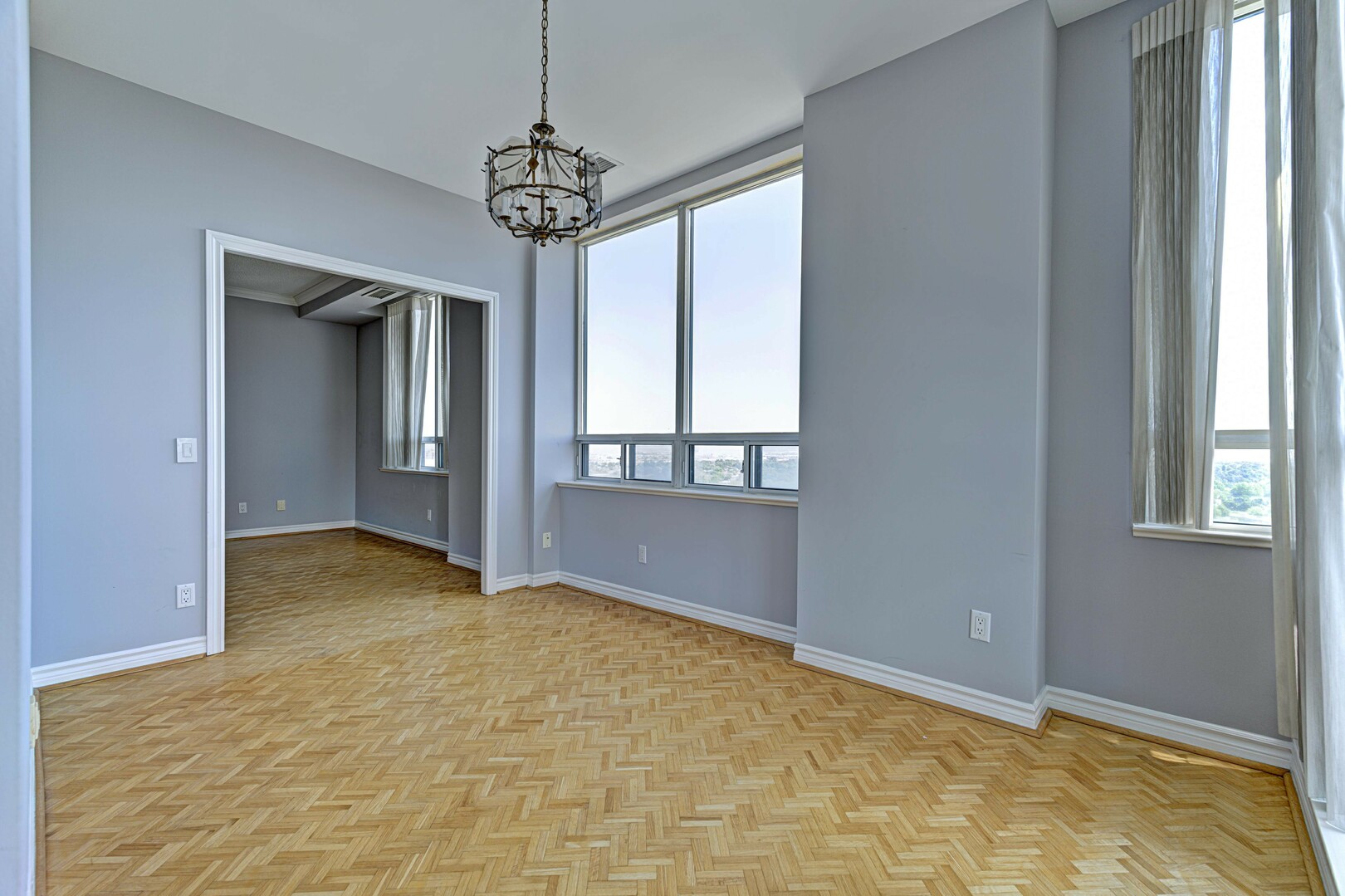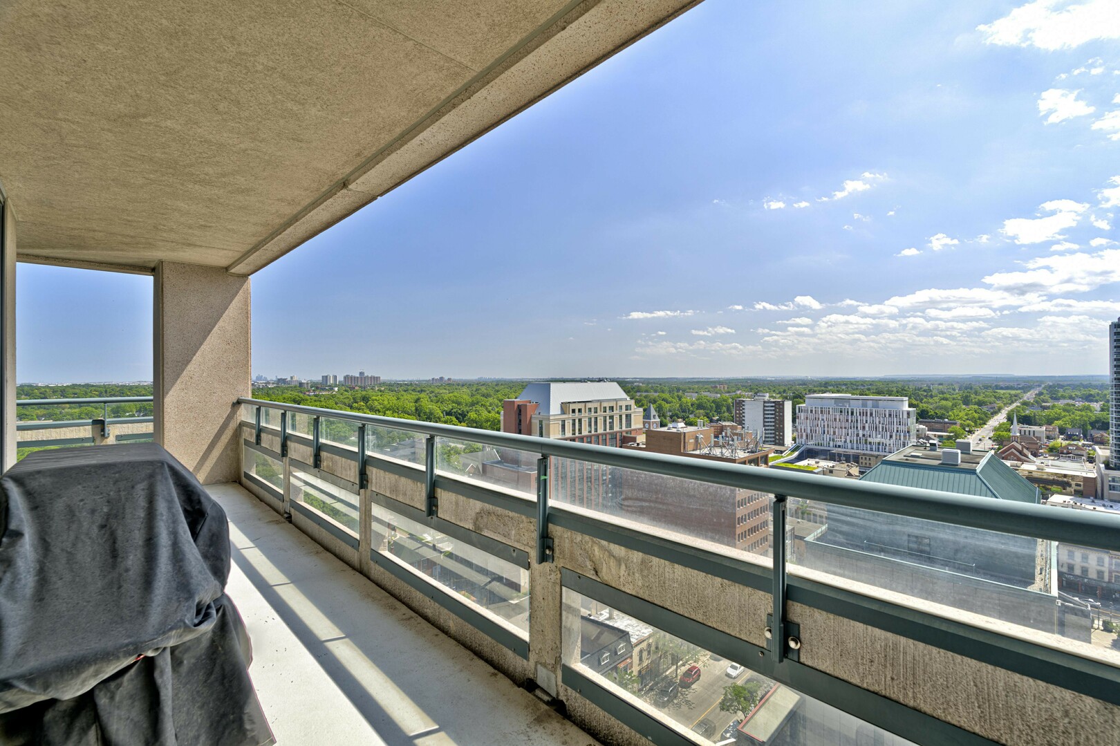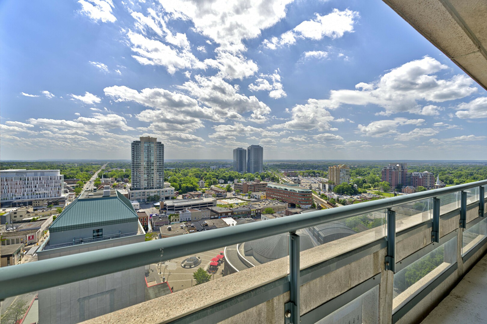 Nestled in the heart of historic downtown Brampton, this spacious Penthouse 2-bedroom + den corner unit condominium offers 1,400+ sq ft of elegant living space. Ideal for those looking to downsize or a family seeking comfortable, livable space, this unit is in good condition and awaits your personal touch. Step into the expansive principal rooms, perfect for entertaining guests with ease. The generous balcony provides stunning, panoramic views stretching from north to south, making every moment outdoors a visual delight. Enjoy the luxury of a rare gas line on the balcony, allowing for convenient barbequing and outdoor dining. Living in this building means having everything at your fingertips. Indulge in a variety of restaurants, explore local shops, and enjoy cultural events at The Rose Theatre just across the street. The GO Station is just a short walk away, making commuting a breeze. Spend your weekends at Gage Park or visit the nearby library for a quiet retreat. This penthouse at 1 Belvedere Court is more than just a home; its a lifestyle. Don't miss the opportunity to make this exceptional space your own.