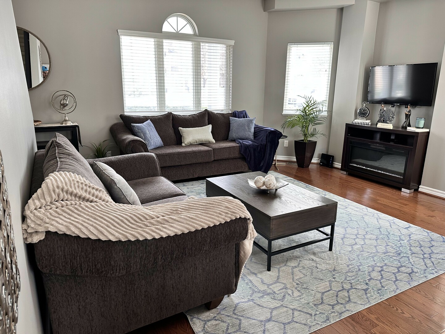 Team Tiger presents a rarely offered and impeccably maintained bright sun-filled 2-storeyend-unit townhome tucked away in the exclusive Dayspring community an intimate enclave of just 24 homes bordering the peaceful Claireville Conservation. Beyond the pristine home itself,you'll find a true sense of community and security, where neighbours become friends and pride of ownership shines through.The welcoming foyer features direct garage access, leading into a renovated kitchen that walks out to a large, private patio perfect for quiet mornings or lively gatherings. The open-concept living and dining areas boast soaring 9-foot ceilings, creating an inviting and spacious atmosphere. Upstairs, the generous primary suite offers a walk-in closet and two additional closets for exceptional storage.The newly finished, bright lower level offers even more living space with a large family room,a bedroom, and a full bathroom ideal for guests or extended family. Complete with 2-car parking, this move-in-ready home is a rare opportunity to join a warm, connected community surrounded by nature, yet close to every convenience. (id:9346)