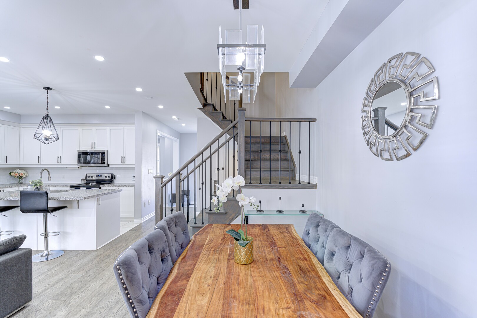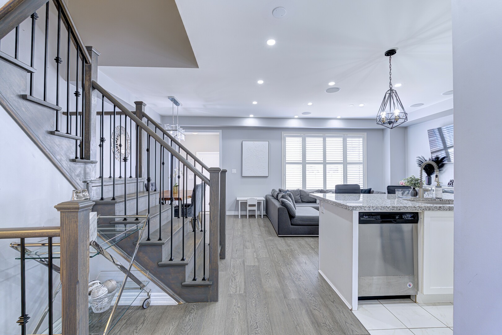 Welcome to 153 Remembrance Rd, a beautifully maintained freehold townhome that blends modern design, a functional layout, and an abundance of natural light in one of Brampton’s most desirable communities. From the double-door entrance, you’re greeted by a spacious foyer that includes a 2-piece powder room, a large coat closet, and a bright den that works perfectly as a home office or study nook. Throughout the home, California shutters and large windows allow sunlight to flow through each space, creating a warm and inviting atmosphere. The main floor features an open-concept layout with 9-foot ceilings, pot lights, and hardwood flooring, while the modern kitchen is equipped with stainless steel appliances, a centre island with built-in outlets, a double sink, and a dishwasher. This kitchen seamlessly connects to the dining and living areas, making it ideal for entertaining or comfortable daily living. Just off the living space, step into a fenced courtyard-style backyard with a private separate entrance that’s perfect for morning coffee, casual gatherings, or outdoor relaxation. A full laundry area on the main floor offers convenient access to the attached garage, making everyday routines more efficient. Upstairs, you’ll find three generously sized bedrooms with large windows that let in plenty of light. The primary suite features his-and-hers closets along with a private four-piece ensuite bathroom, offering a peaceful space to unwind. The two additional bedrooms are spacious and share a well-appointed full bathroom, making this home ideal for families or guests. The unfinished basement is full of potential for a home gym, media room, or extra living space, and includes a cold room for added storage. Located in a family-friendly neighbourhood close to parks, schools, shopping, and public transit, this home is move-in ready.