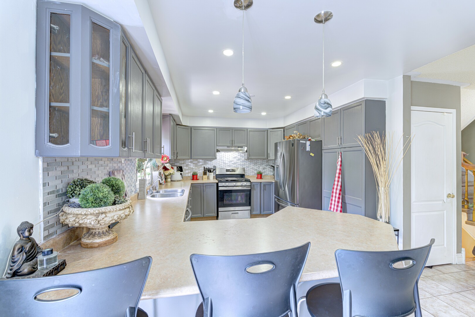 Beautiful 3+1 Bedroom, 3 Bath Semi-Detached Home in Prime Brampton Location! Welcome to this spacious and well-maintained 3+1 bedroom, 3 bathroom semi-detached gem, ideally situated just minutes from Trinity Commons, Brampton Civic Hospital, and Hwy 410 perfect for commuters and families alike! Step inside to a bright and updated eat-in family kitchen featuring a stylish glass backsplash, breakfast bar, stainless steel appliances, and a convenient walkout to the deck and backyard, ideal for entertaining or enjoying your morning coffee. The cozy main floor family room offers a vaulted ceiling and gas fireplace, creating a warm and inviting atmosphere. The upper level boasts a serene primary bedroom retreat complete with a walk-in closet and a 4-piece ensuite. Two additional generously sized bedrooms share the 4-piece main bathroom, providing plenty of space for the whole family. The partially finished basement offers endless possibilities! Currently there is a versatile extra bedroom and rec room, with unfinished space ideal for a potential in-law or income suite. Great opportunity in a family-friendly, ultra accessible neighborhood! (