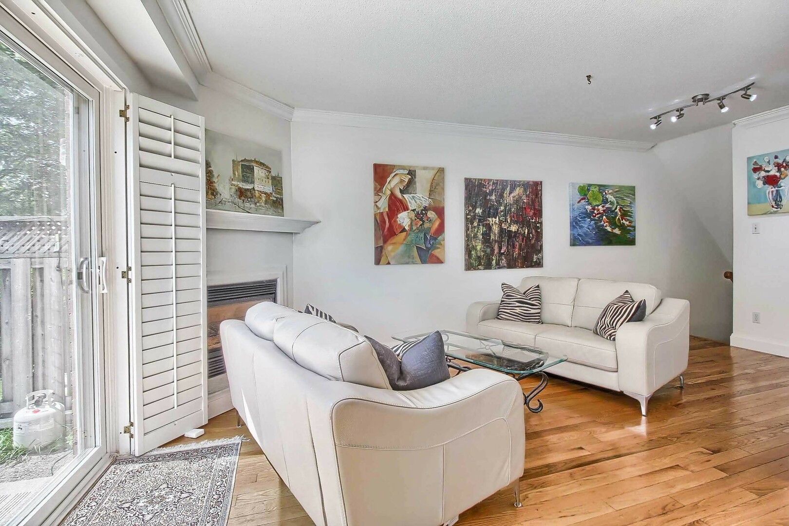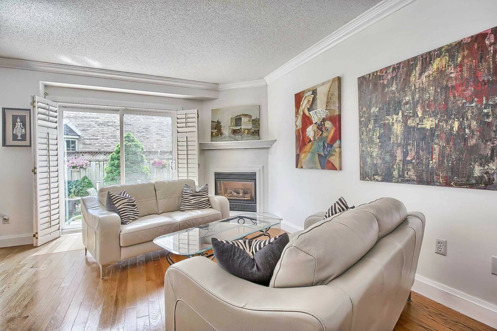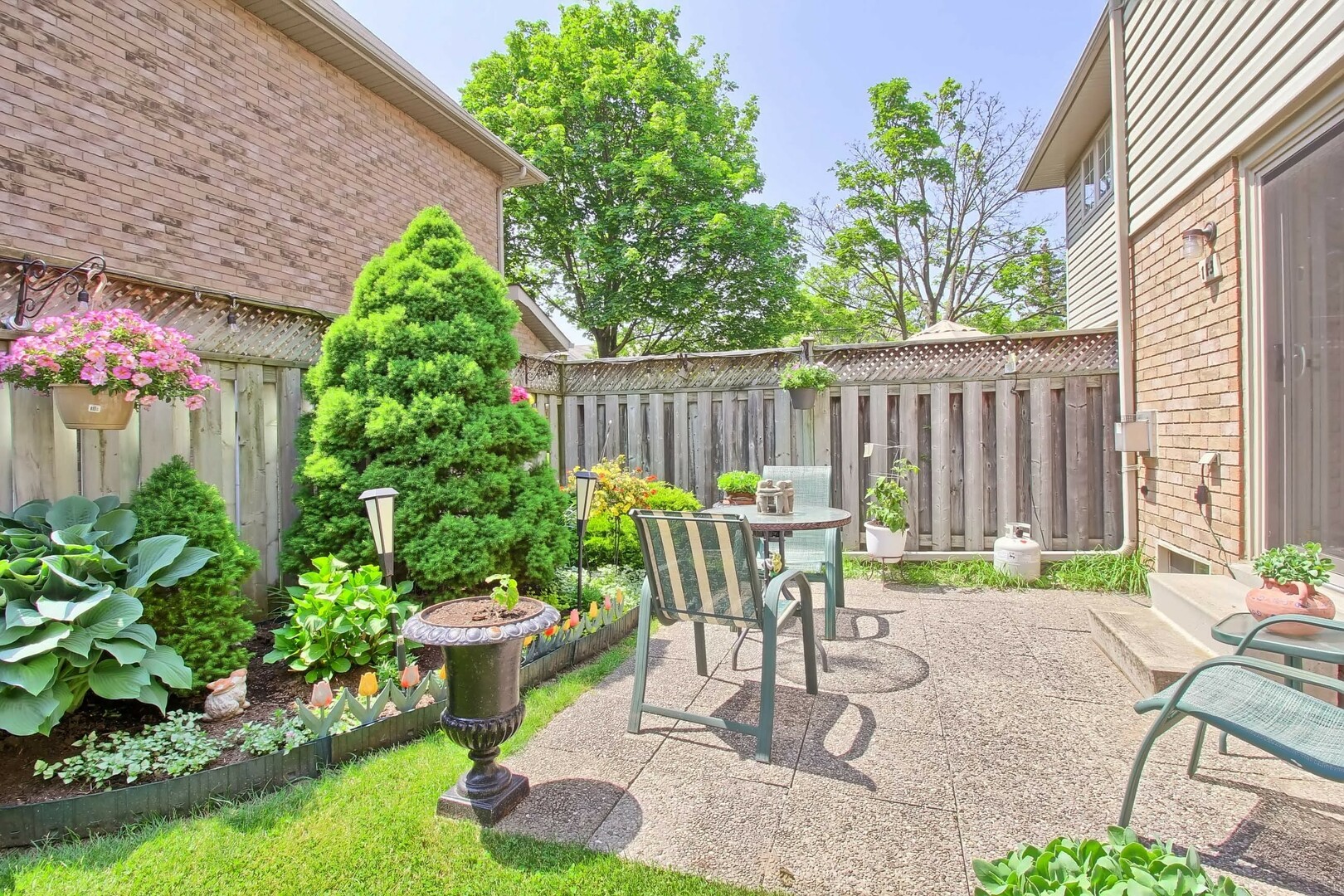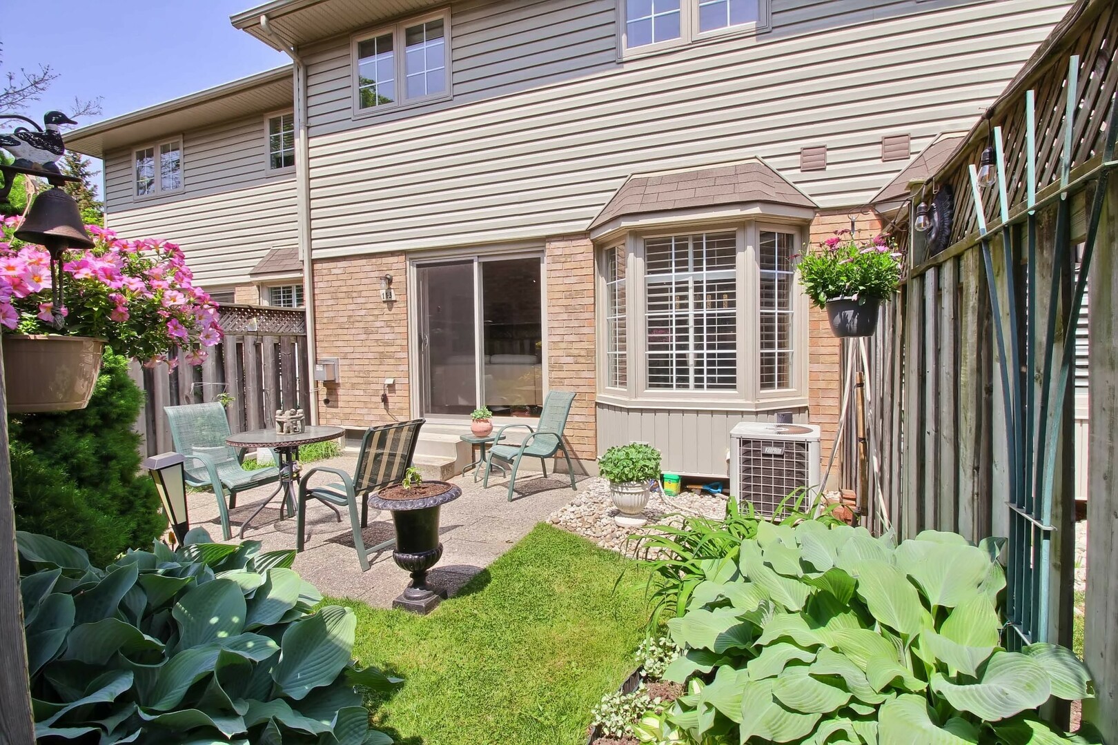 Welcome to the Prestigious Roseland Green Condo Townhouse Complex located in downtown Burlington. This open concept main floor boasts the following features an open concept kitchen with stone counter tops, backsplash, modern LED lighting, a dining room with a bay window, a living room with a gas fireplace, a two piece powder room & sliding door with access to a walkout to a private beautifully landscaped fenced-in yard. The 2nd floor boasts a skylight at the top of stairs, two full bathrooms, three bright spacious bedrooms, the primary bedroom features a three piece ensuite & a generously-sized closet. The finished basement has a good size recreation room and a separate laundry room. This home includes all the appliances, central vacuum attachments, garage door opener, all electric light fixtures, & window coverings.