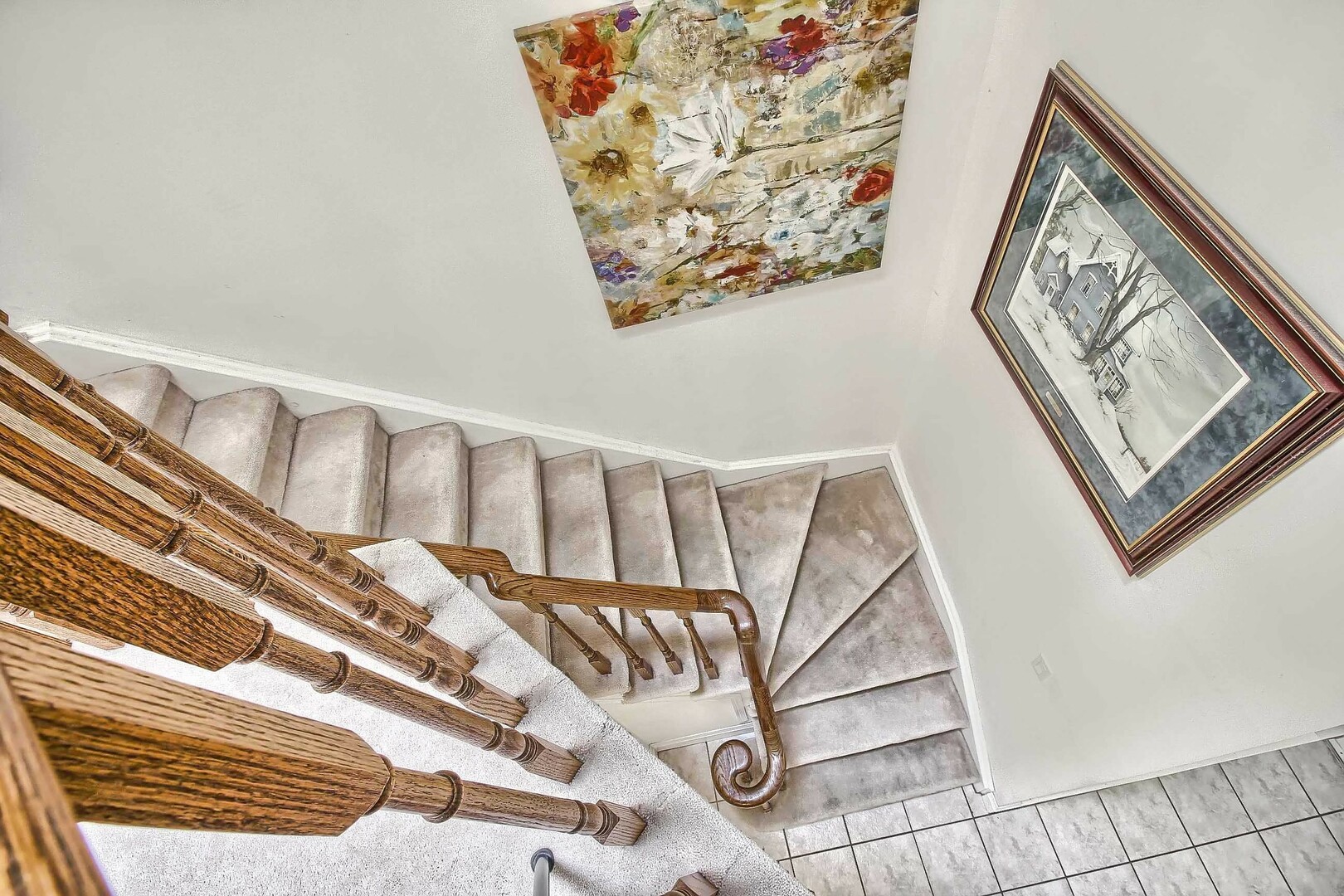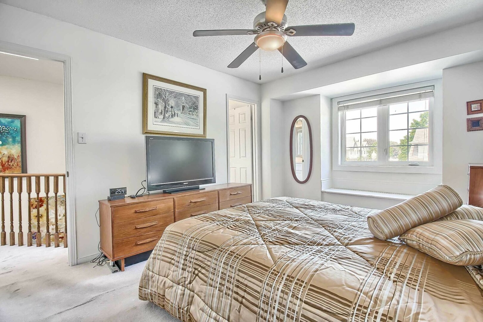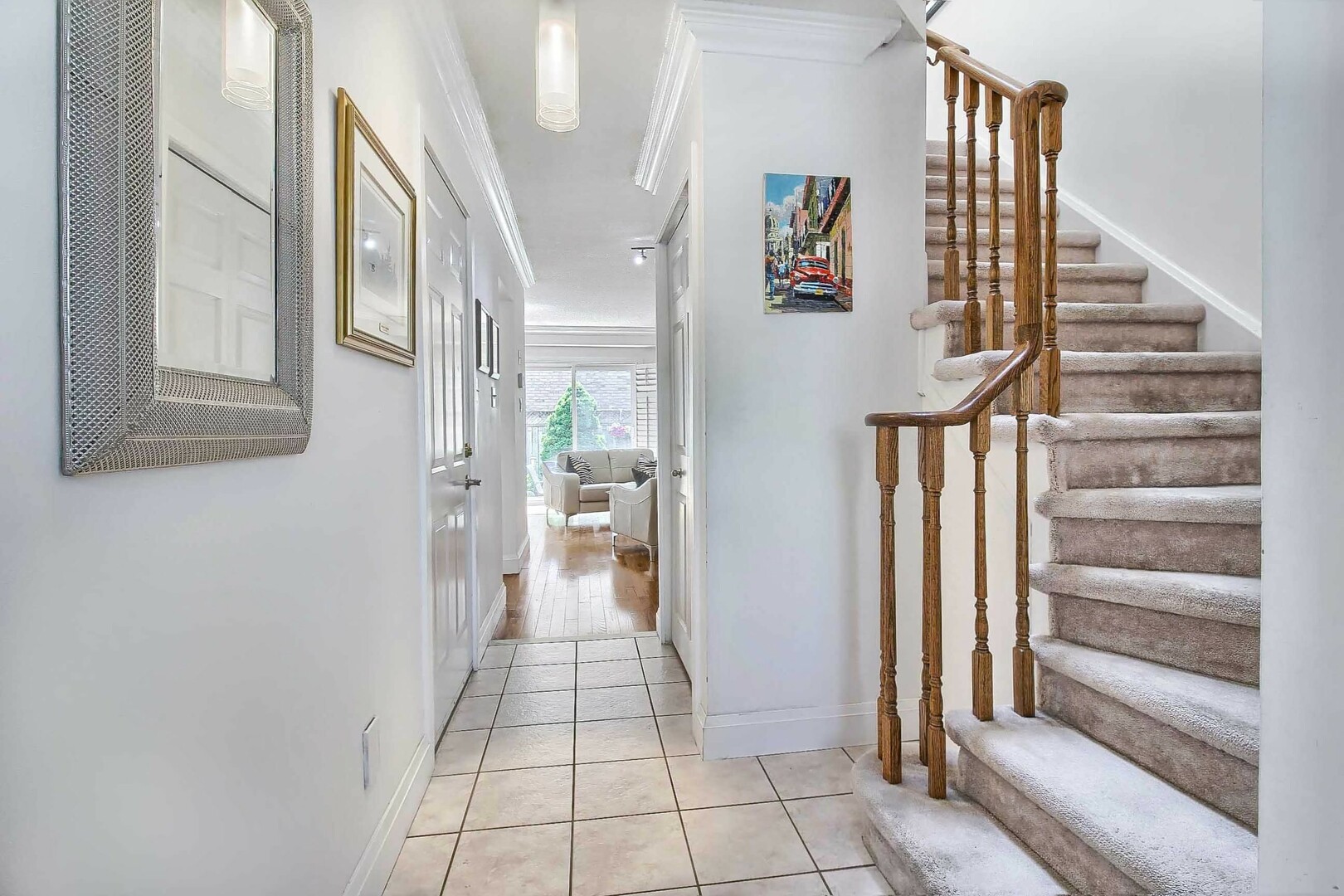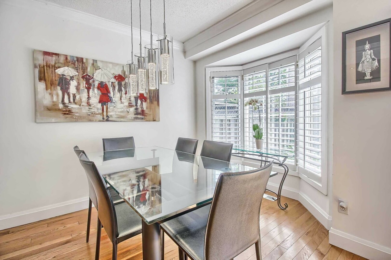 Welcome to the Prestigious Roseland Green Condo Townhouse Complex located in downtown Burlington. This open concept main floor boasts the following features an open concept kitchen with stone counter tops, backsplash, modern LED lighting, a dining room with a bay window, a living room with a gas fireplace, a two piece powder room & sliding door with access to a walkout to a private beautifully landscaped fenced-in yard. The 2nd floor boasts a skylight at the top of stairs, two full bathrooms, three bright spacious bedrooms, the primary bedroom features a three piece ensuite & a generously-sized closet. The finished basement has a good size recreation room and a separate laundry room. This home includes all the appliances, central vacuum attachments, garage door opener, all electric light fixtures, & window coverings.