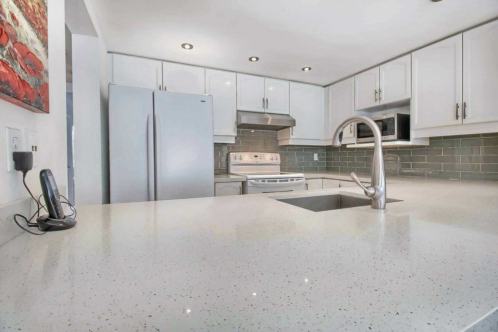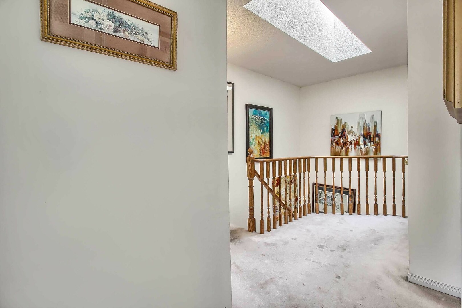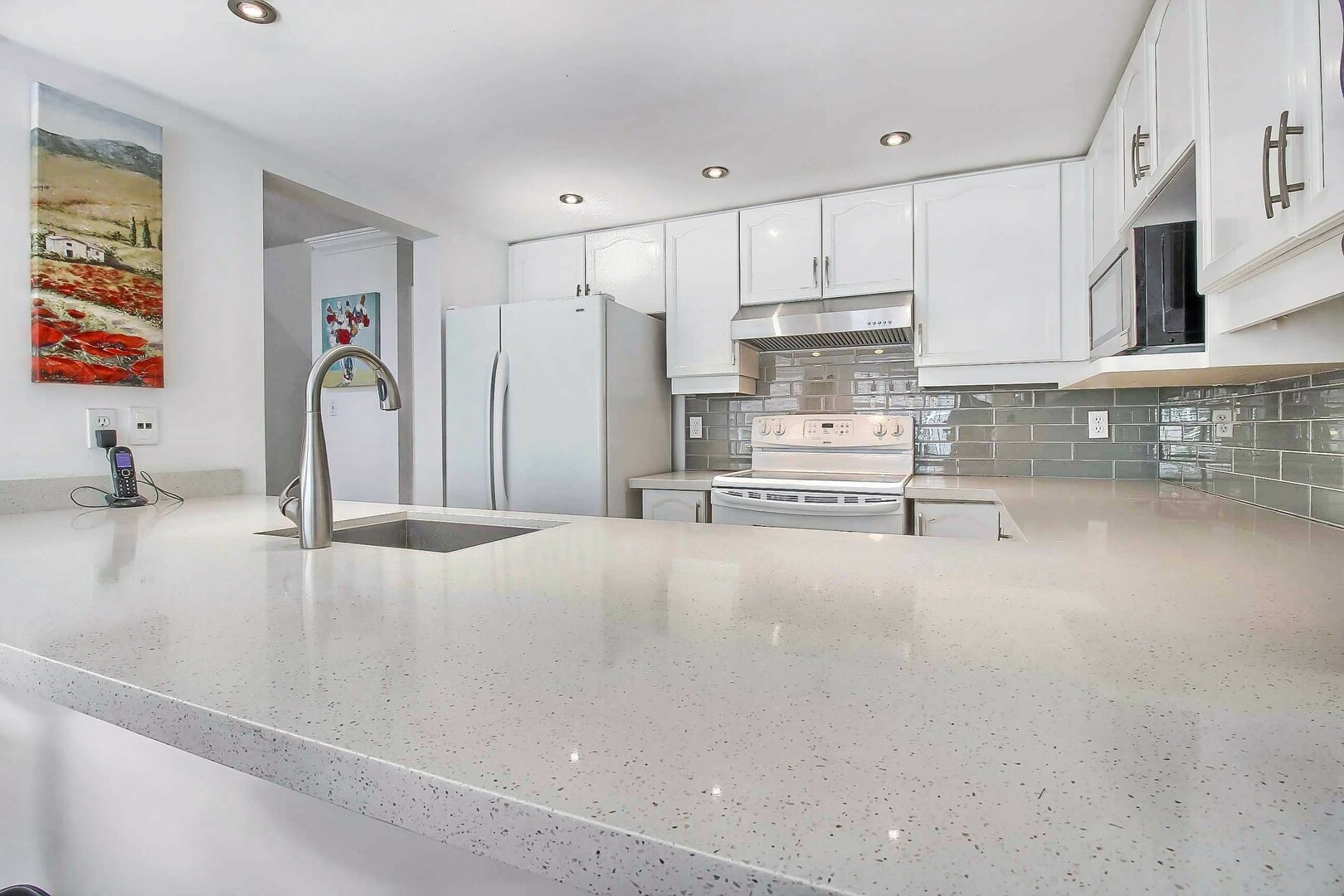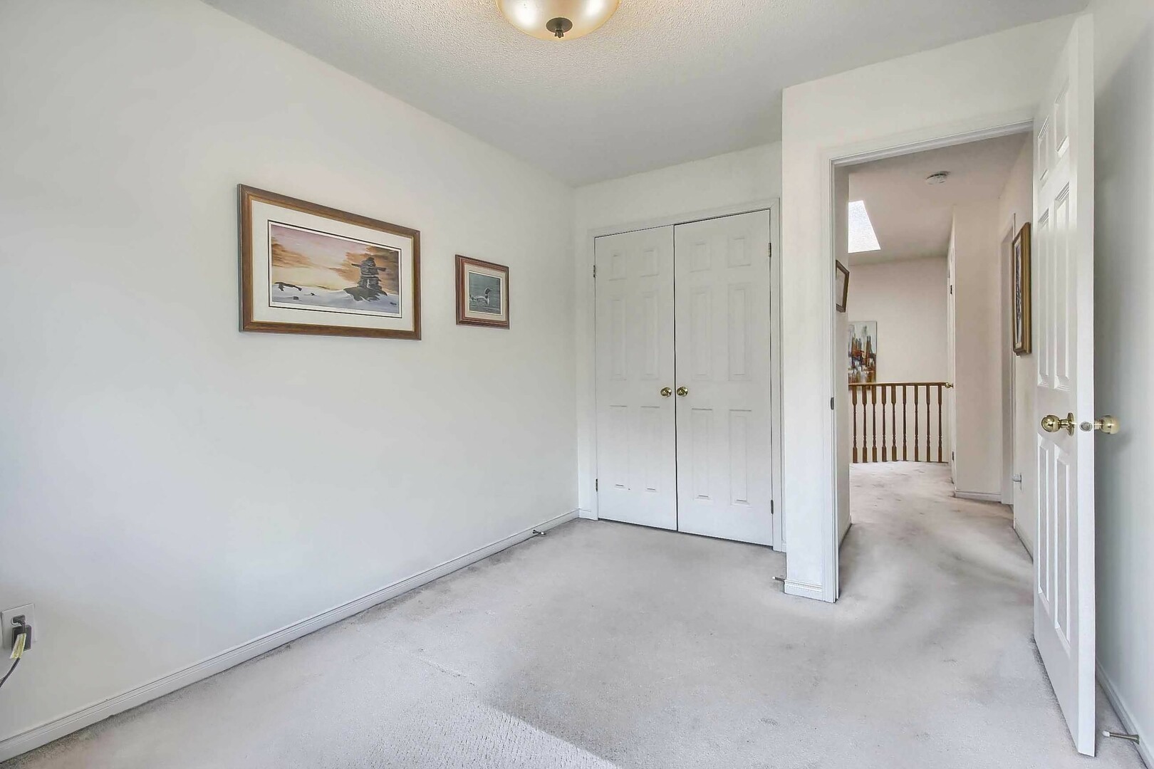 Welcome to the Prestigious Roseland Green Condo Townhouse Complex located in downtown Burlington. This open concept main floor boasts the following features an open concept kitchen with stone counter tops, backsplash, modern LED lighting, a dining room with a bay window, a living room with a gas fireplace, a two piece powder room & sliding door with access to a walkout to a private beautifully landscaped fenced-in yard. The 2nd floor boasts a skylight at the top of stairs, two full bathrooms, three bright spacious bedrooms, the primary bedroom features a three piece ensuite & a generously-sized closet. The finished basement has a good size recreation room and a separate laundry room. This home includes all the appliances, central vacuum attachments, garage door opener, all electric light fixtures, & window coverings.