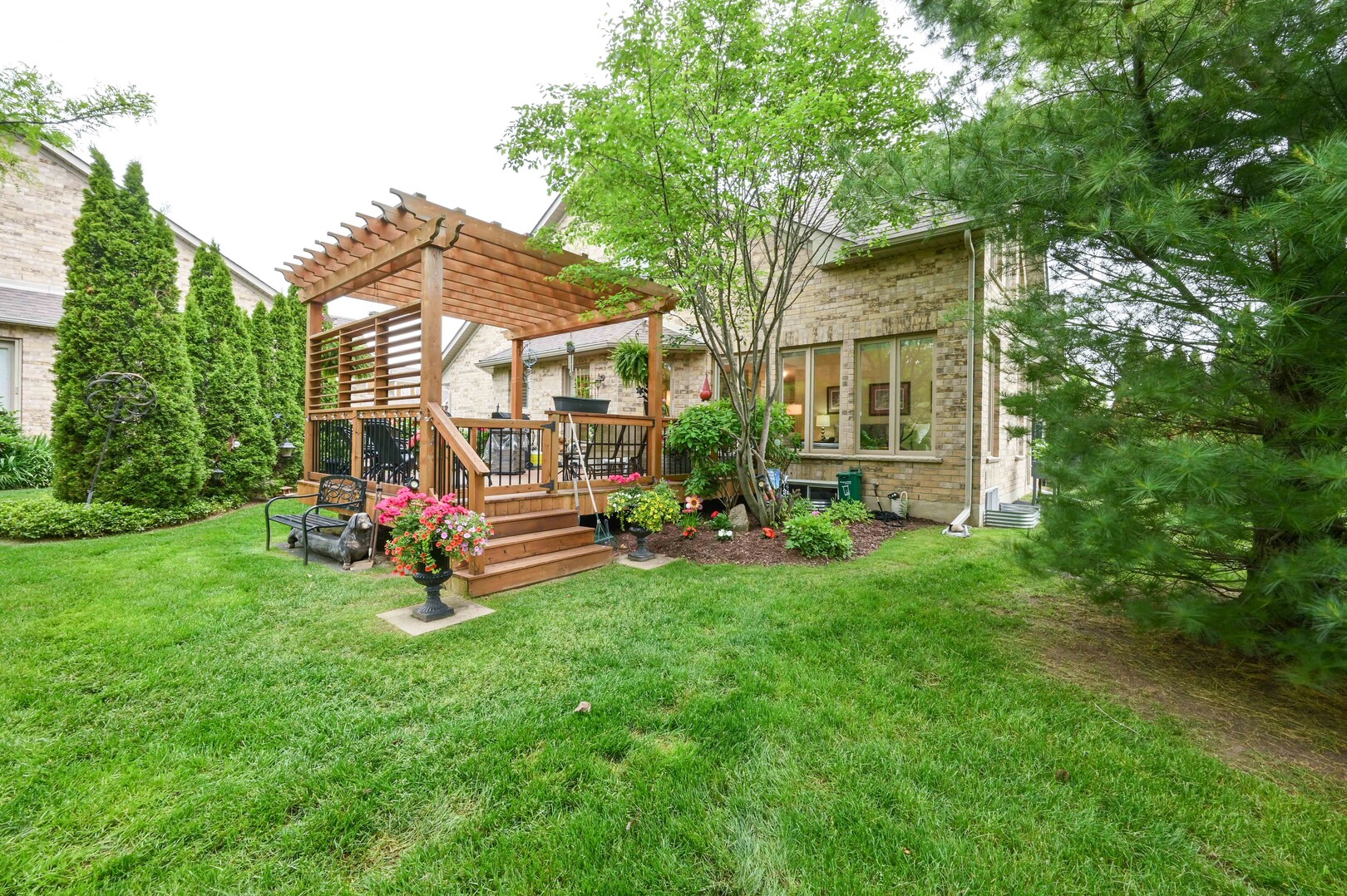 Legacy pines community in Palgrave. 9 hole golf course, tennis courts, pickle ball, club house and so much more. This terrific 1993 sq. ft. home is a 3 bedroom semi detached bungaloft. Hardwood and ceramic floors throughout the main floor. Primary bedroom on the main floor with 4 pc ensuite with stand up shower and soaker tub, 3 double closets. The 2 bedrooms upstairs share a 4pc ensuite, Extra bedrooms upstairs could provide room for the grandkids or 2 separate offices. Great loft area as well. Kitchen has loads of cabinet space, centre island, granite counters, stainless steel appliances. Builder floor plan design change added more storage space on the main floor. Hunter Douglas blinds grace the living room windows. Enjoy the gas fireplace. Dining room is combined with the living room and allows for a great entertaining space. Walk out to cedar deck and pergola built in 2022. Private lot. Beautiful well maintained home.