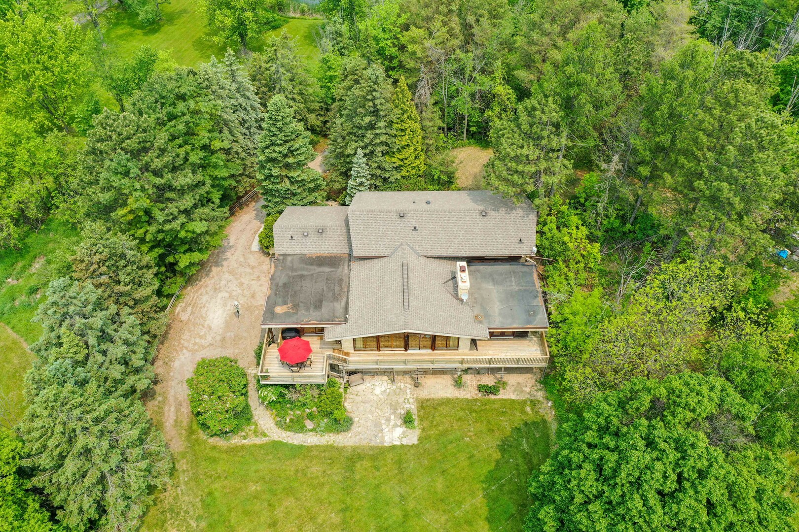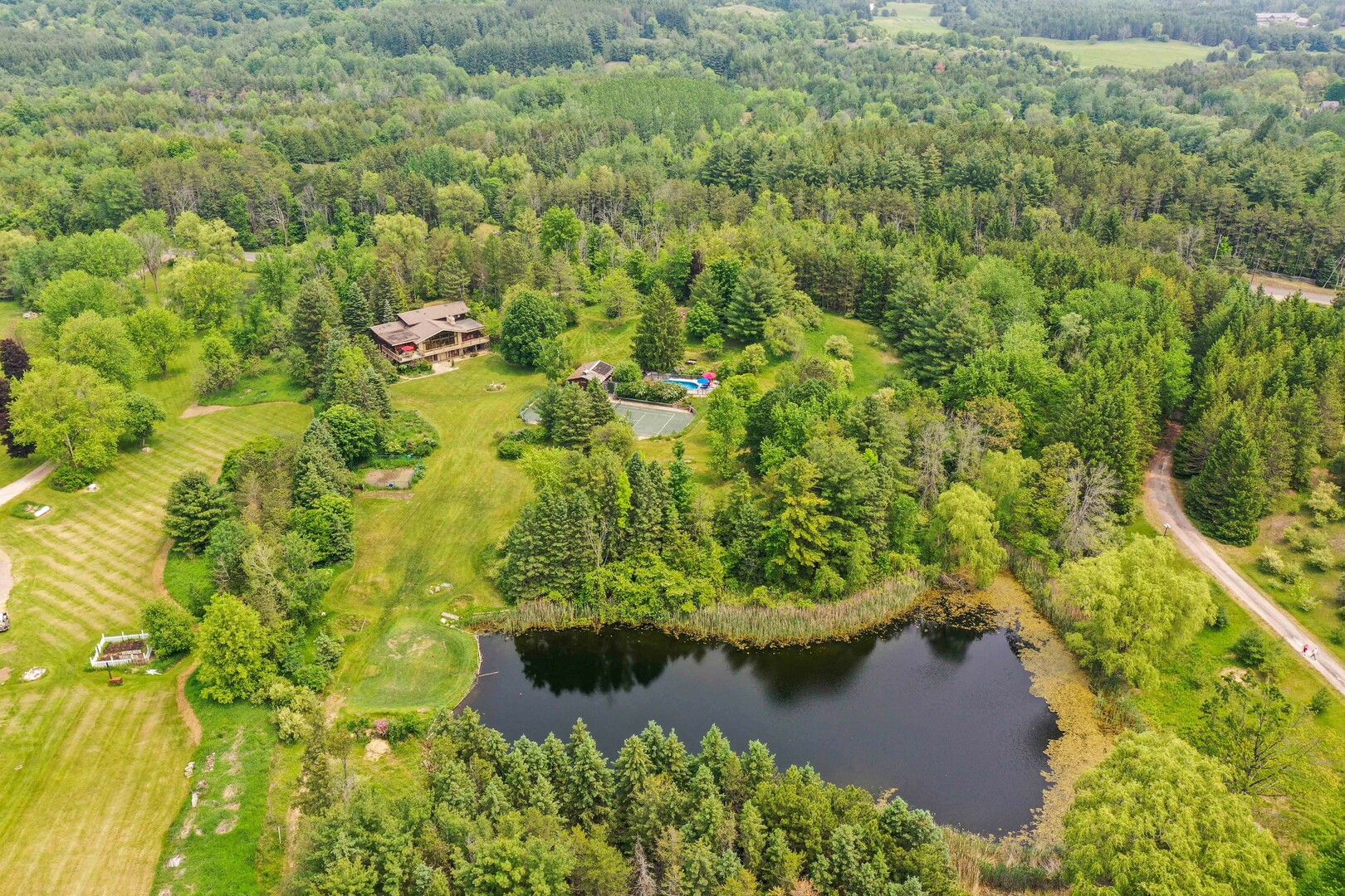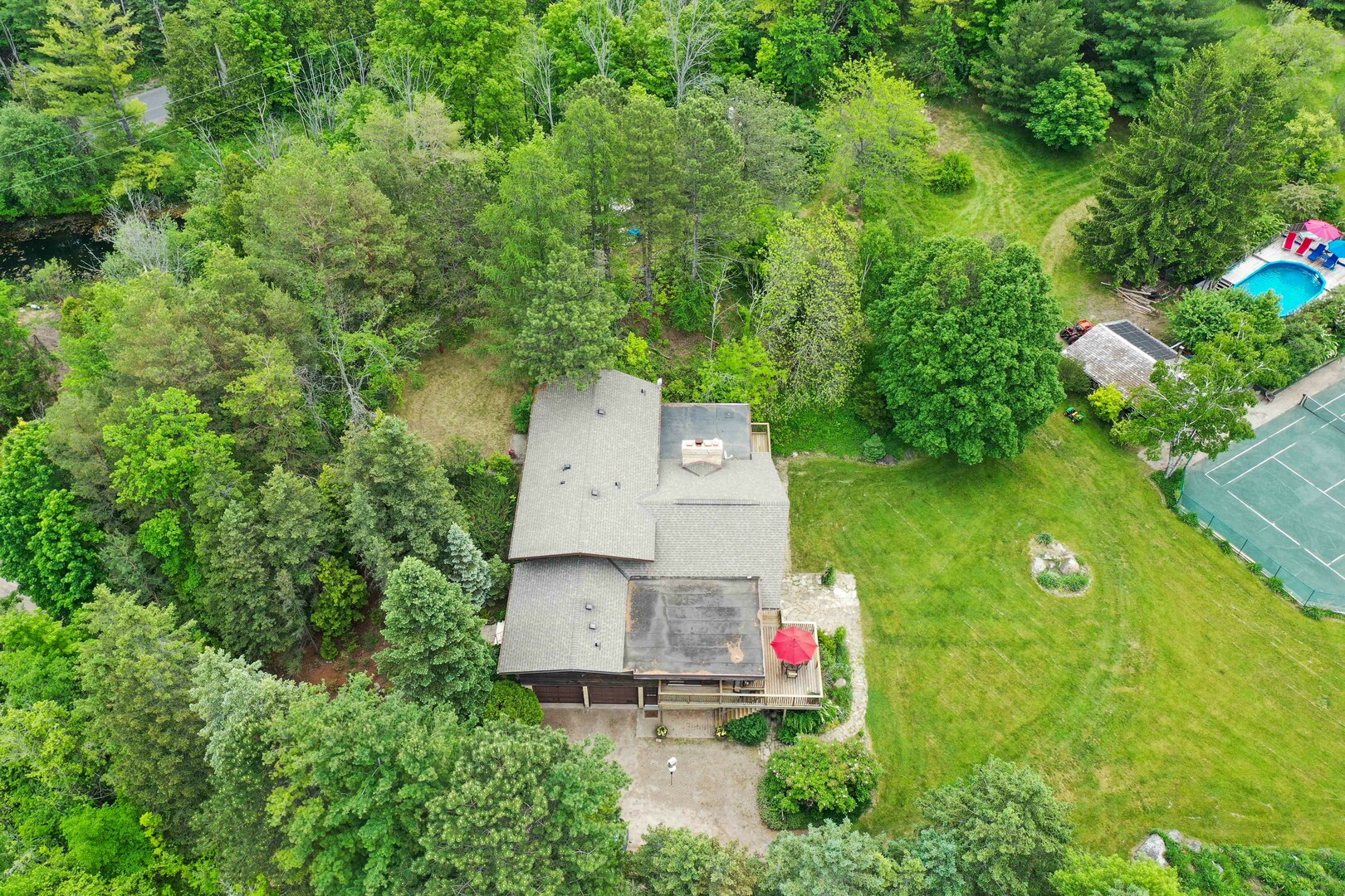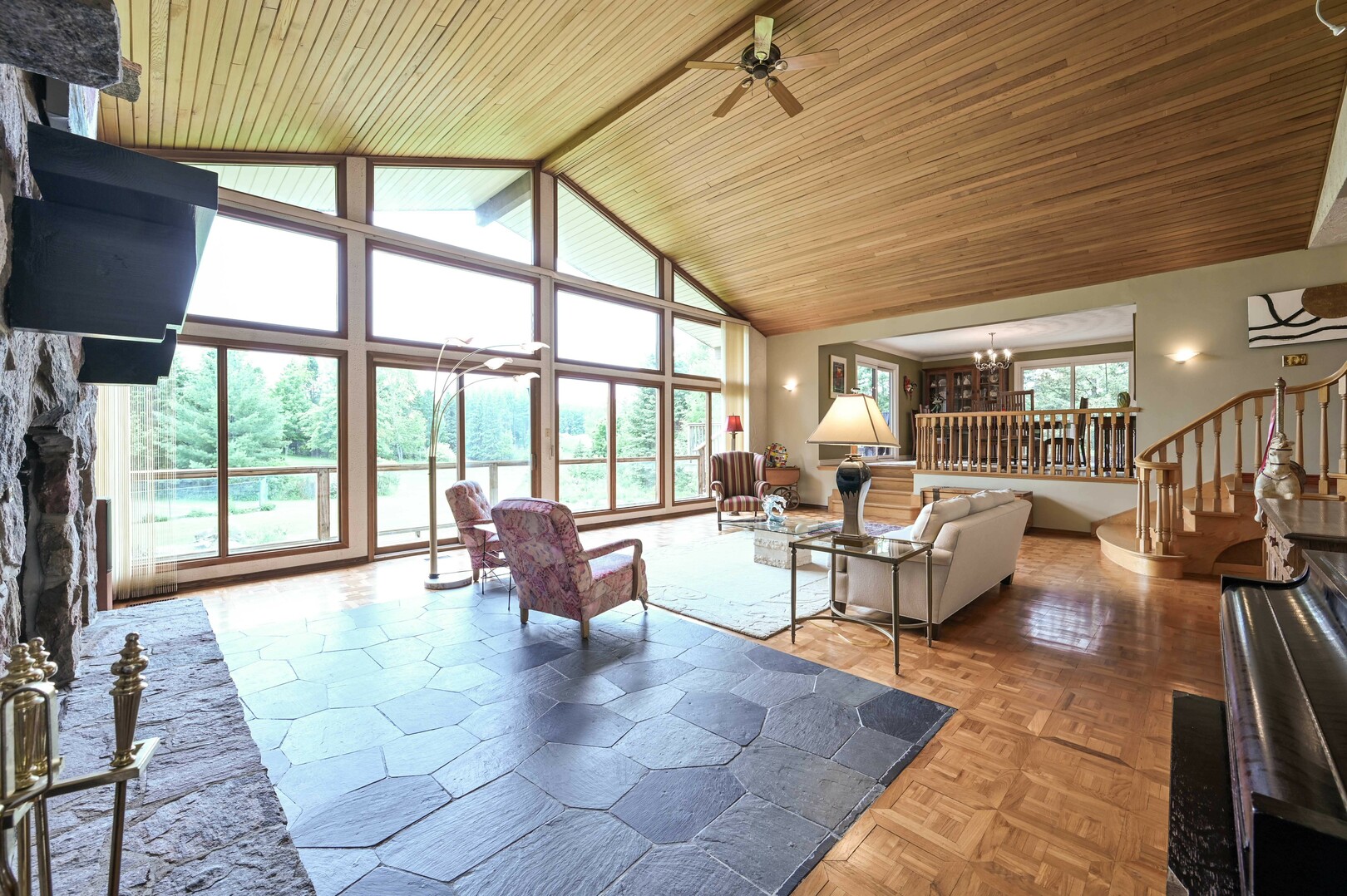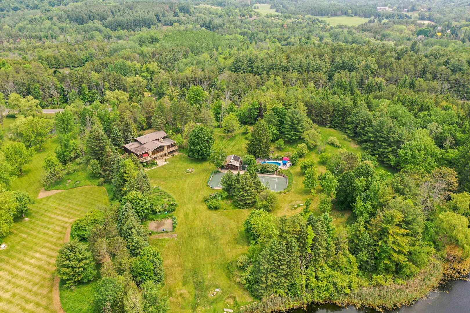 A stunning, secluded estate in one of the most desirable areas of Caledon, five minutes from Palgrave. This 7.42 acre property boasts two large, spring-fed ponds and extensive landscaped grounds with dozens of specimen trees, shrubbery and gardens. It also includes a tennis court, large golf green and pool. The European-designed, custom-built home has a spacious open-concept floor plan featuring a spectacular great room with a 16-ft. cathedral ceiling, a wall of south-facing windows and sliding glass doors overlooking the grounds, and a towering fieldstone fireplace on the main level. This level also includes the dining room, kitchen, and cozy library with a gas fireplace. On the upper level, the large principal bedroom has a beautiful ensuite with a walk-in marble shower and garden doors to a rear patio. Lower level with full walkouts features a large recreation room with a wood-burning fireplace and a spa with hot tub and sauna. Do Not Miss Out on viewing this Gem!