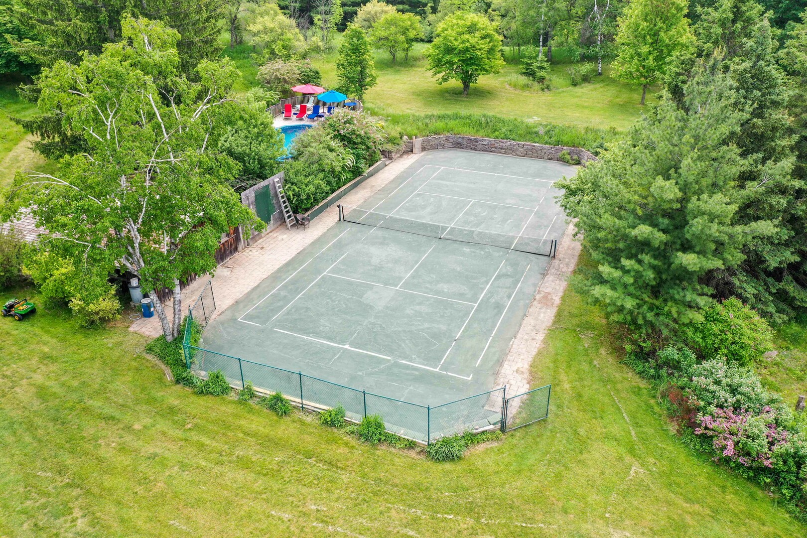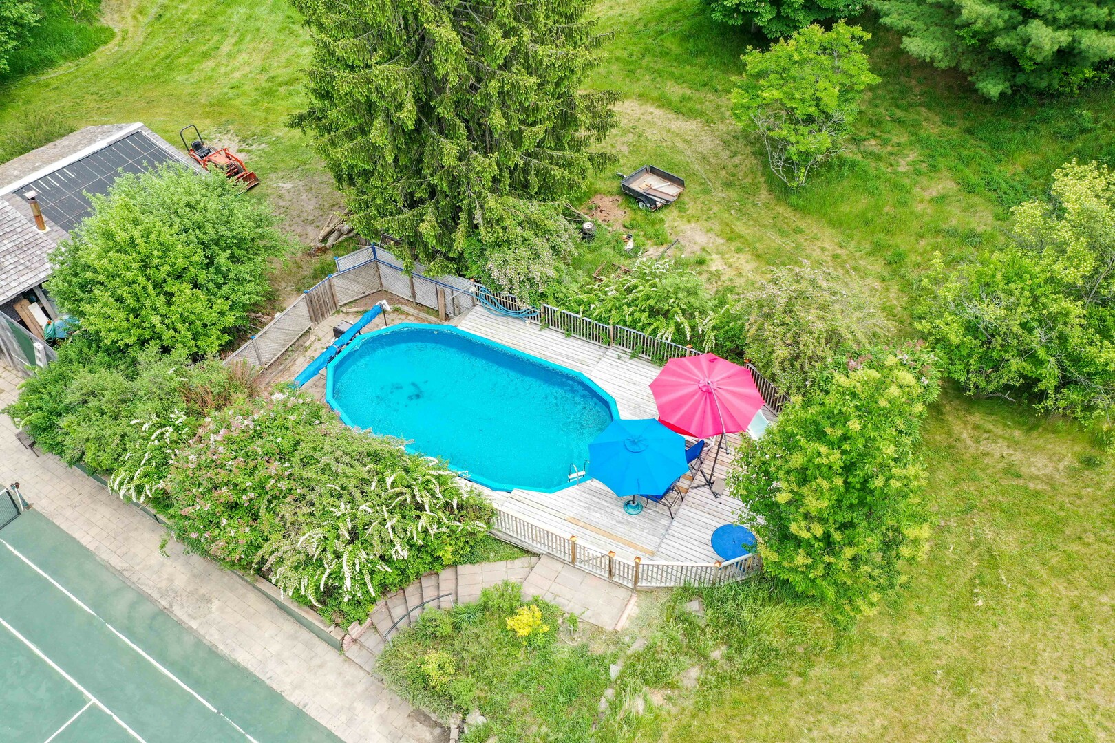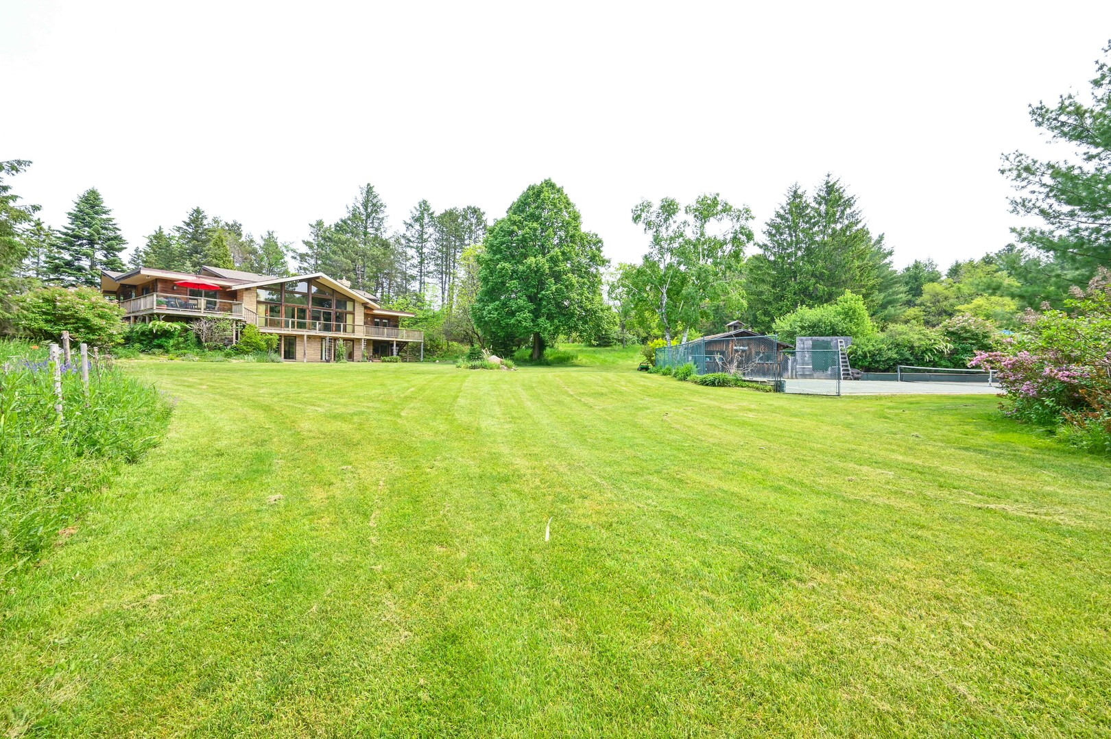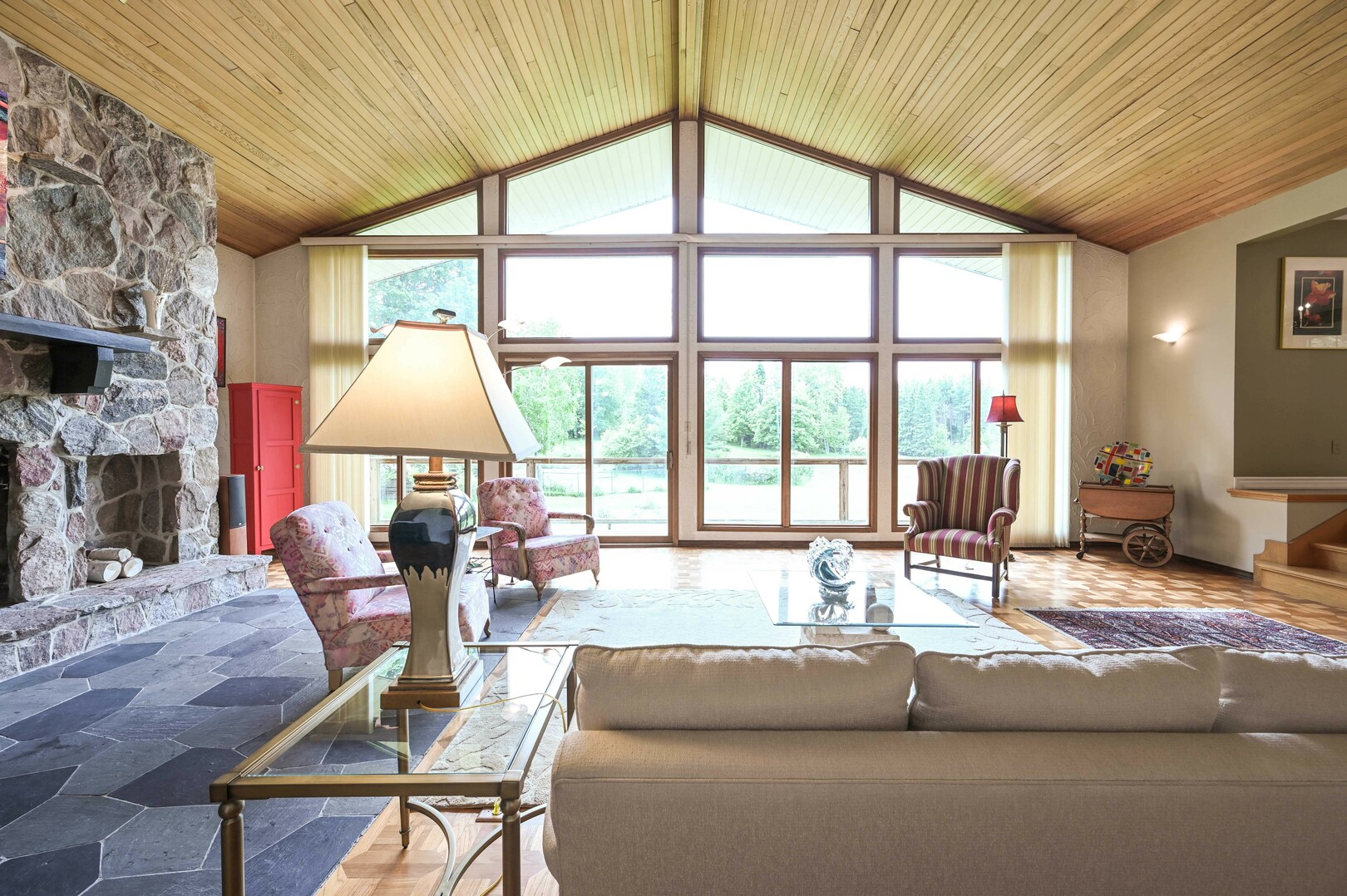 A stunning, secluded estate in one of the most desirable areas of Caledon, five minutes from Palgrave. This 7.42 acre property boasts two large, spring-fed ponds and extensive landscaped grounds with dozens of specimen trees, shrubbery and gardens. It also includes a tennis court, large golf green and pool. The European-designed, custom-built home has a spacious open-concept floor plan featuring a spectacular great room with a 16-ft. cathedral ceiling, a wall of south-facing windows and sliding glass doors overlooking the grounds, and a towering fieldstone fireplace on the main level. This level also includes the dining room, kitchen, and cozy library with a gas fireplace. On the upper level, the large principal bedroom has a beautiful ensuite with a walk-in marble shower and garden doors to a rear patio. Lower level with full walkouts features a large recreation room with a wood-burning fireplace and a spa with hot tub and sauna. Do Not Miss Out on viewing this Gem!