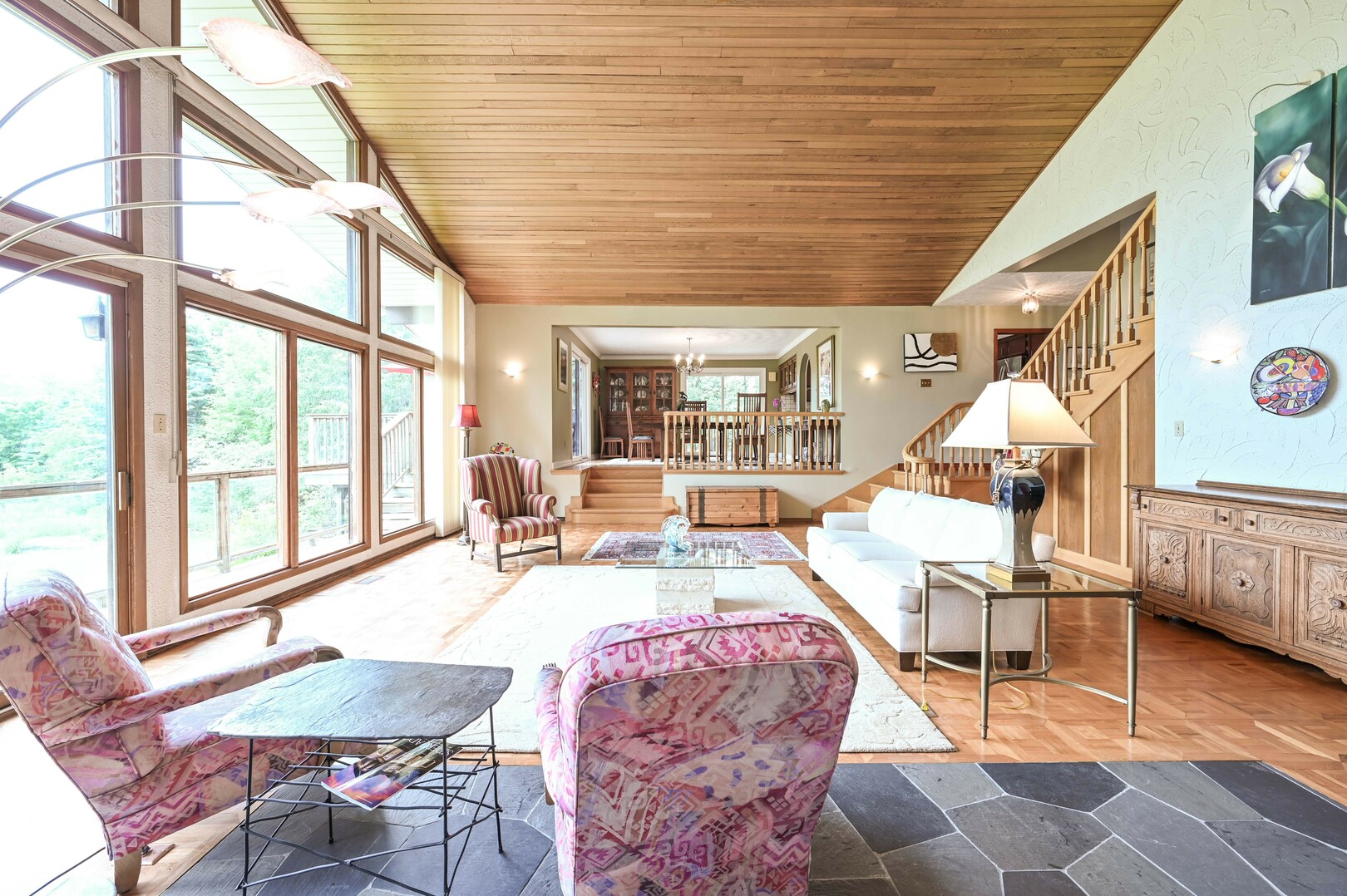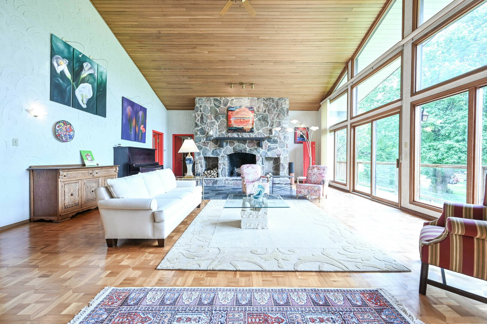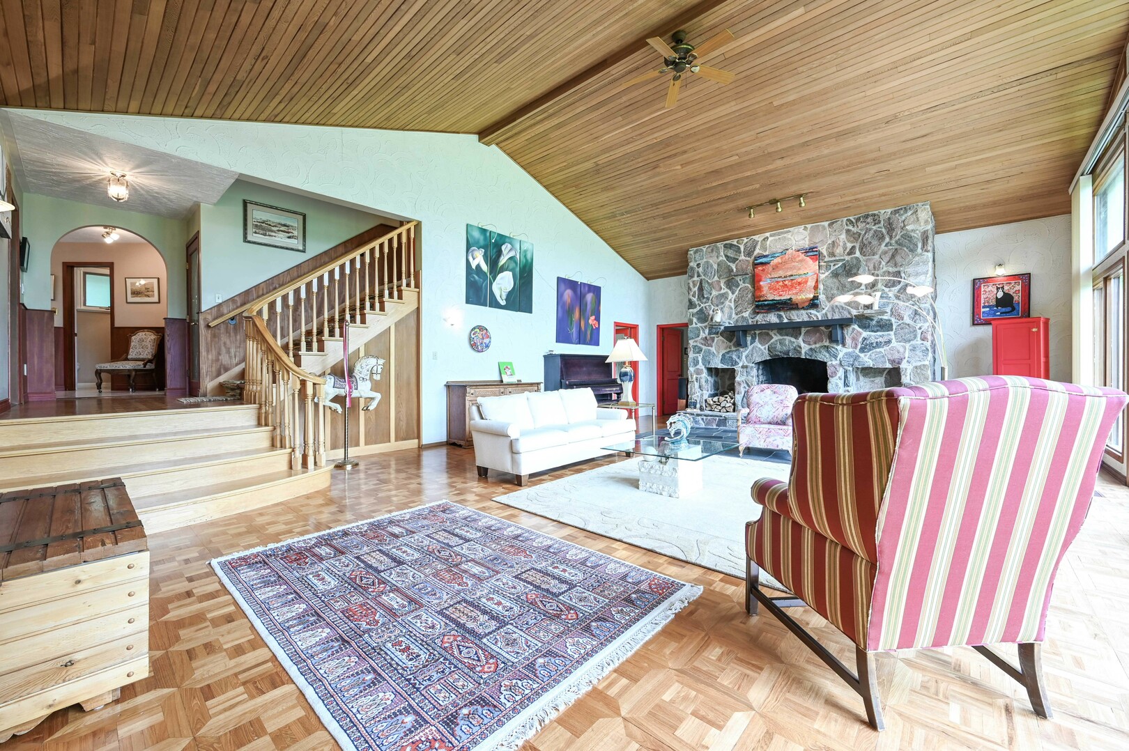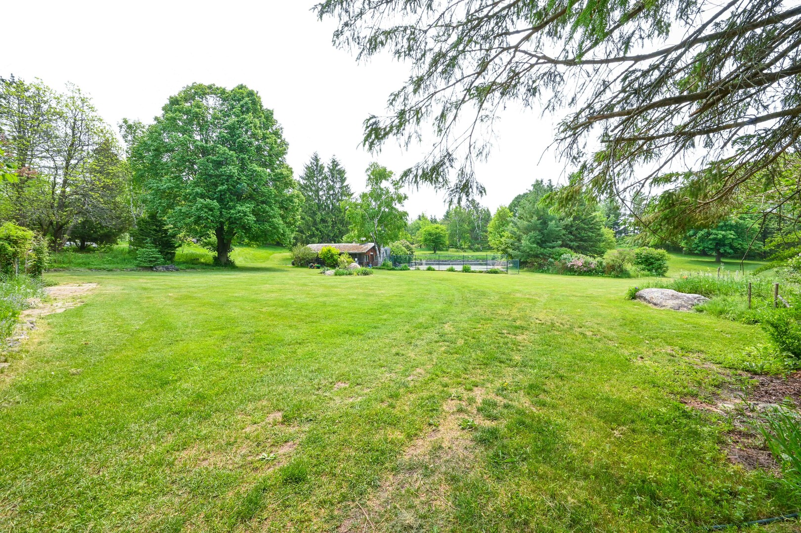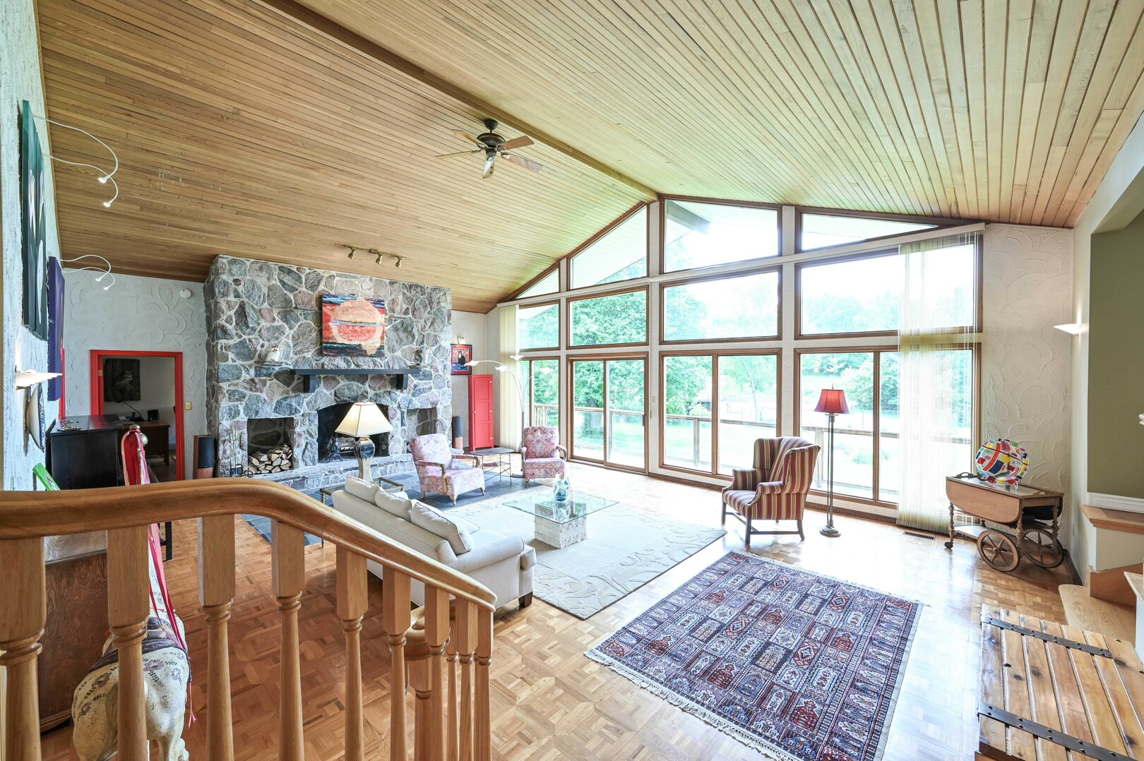 A stunning, secluded estate in one of the most desirable areas of Caledon, five minutes from Palgrave. This 7.42 acre property boasts two large, spring-fed ponds and extensive landscaped grounds with dozens of specimen trees, shrubbery and gardens. It also includes a tennis court, large golf green and pool. The European-designed, custom-built home has a spacious open-concept floor plan featuring a spectacular great room with a 16-ft. cathedral ceiling, a wall of south-facing windows and sliding glass doors overlooking the grounds, and a towering fieldstone fireplace on the main level. This level also includes the dining room, kitchen, and cozy library with a gas fireplace. On the upper level, the large principal bedroom has a beautiful ensuite with a walk-in marble shower and garden doors to a rear patio. Lower level with full walkouts features a large recreation room with a wood-burning fireplace and a spa with hot tub and sauna. Do Not Miss Out on viewing this Gem!