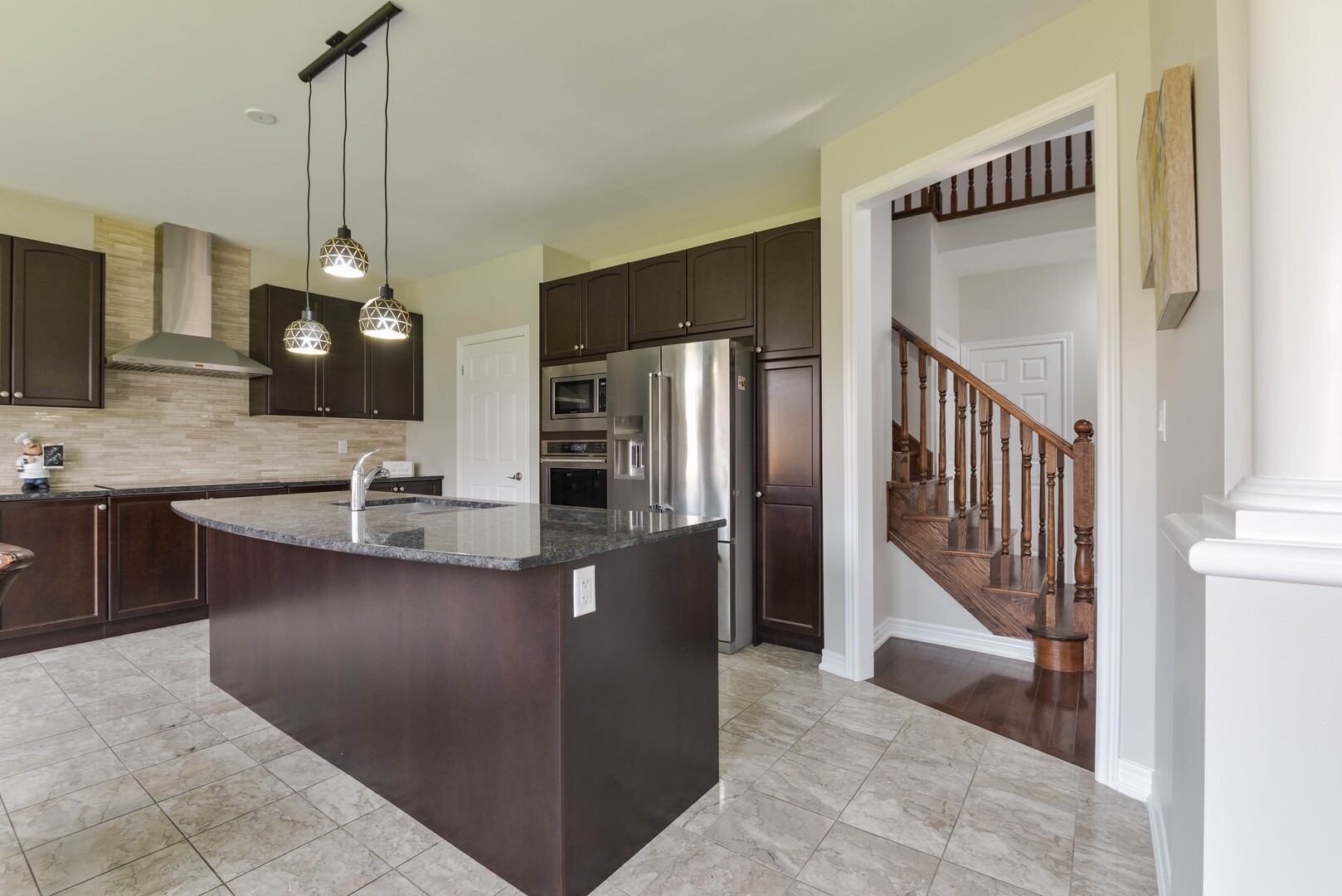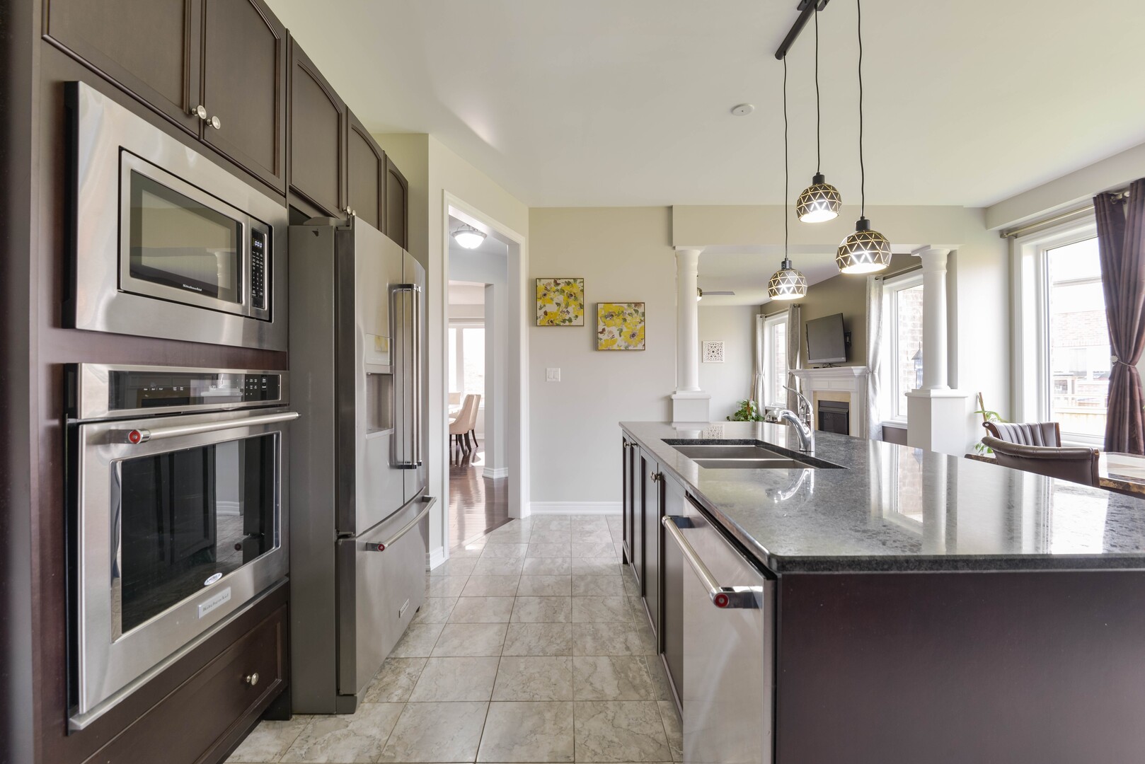 Gorgeous Exec Home On A Pie Shaped Lot. Stunning Kitchen W/Granite, Island & High End Appliances: Dbl Ovens, Warm Drawer, Induction Cooktop, Dbl Fridge, Premium Paid For Pie Lot! Features Formal Living, Dining & Family Rooms, M/Floor Den, Open Concept Family Room W/Gas Fireplace. Oak Stairs! Gourmet Kitchen With Premium Appliances, Granite Quartz Counter-Top W/Center Island, Custom Back-Splash. Stained H-Wood In M/Floor & U-Hallway. M/Floor Laundry!!