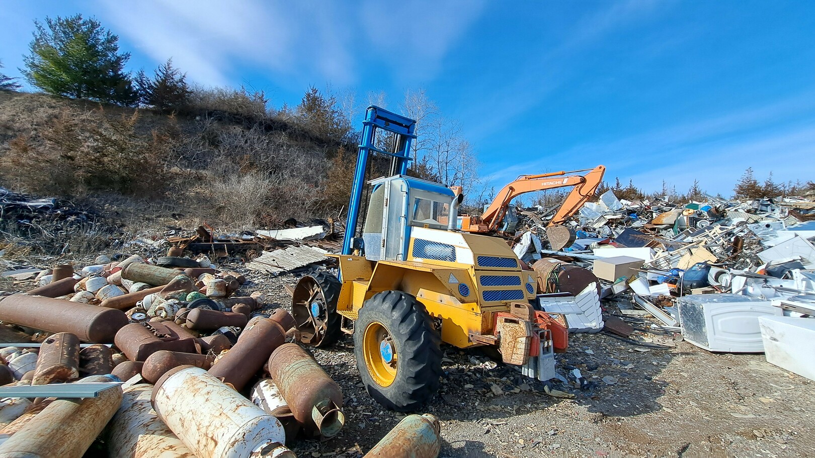 As you look at the video which we have sped up to save you a bit of time you can also find it on YouTube and replay it at normal speed. As you see the excavators, forklifts, scrap pressor (crusher), skid steer, and tow truck, all of these items are included.