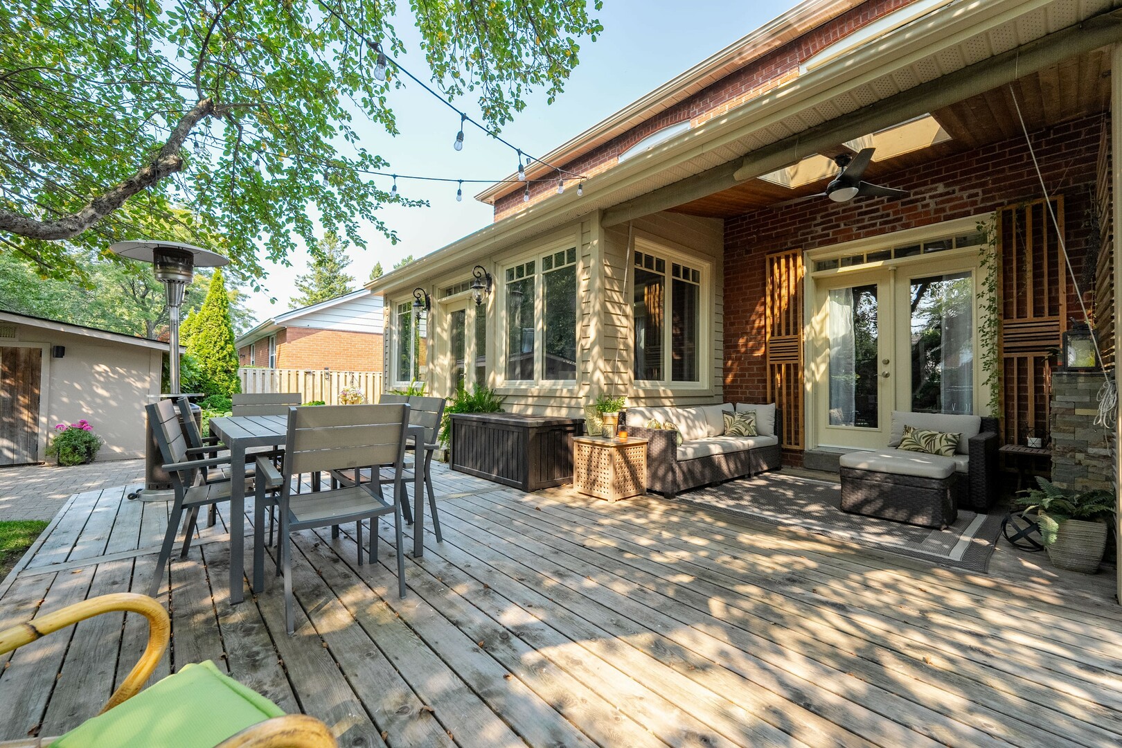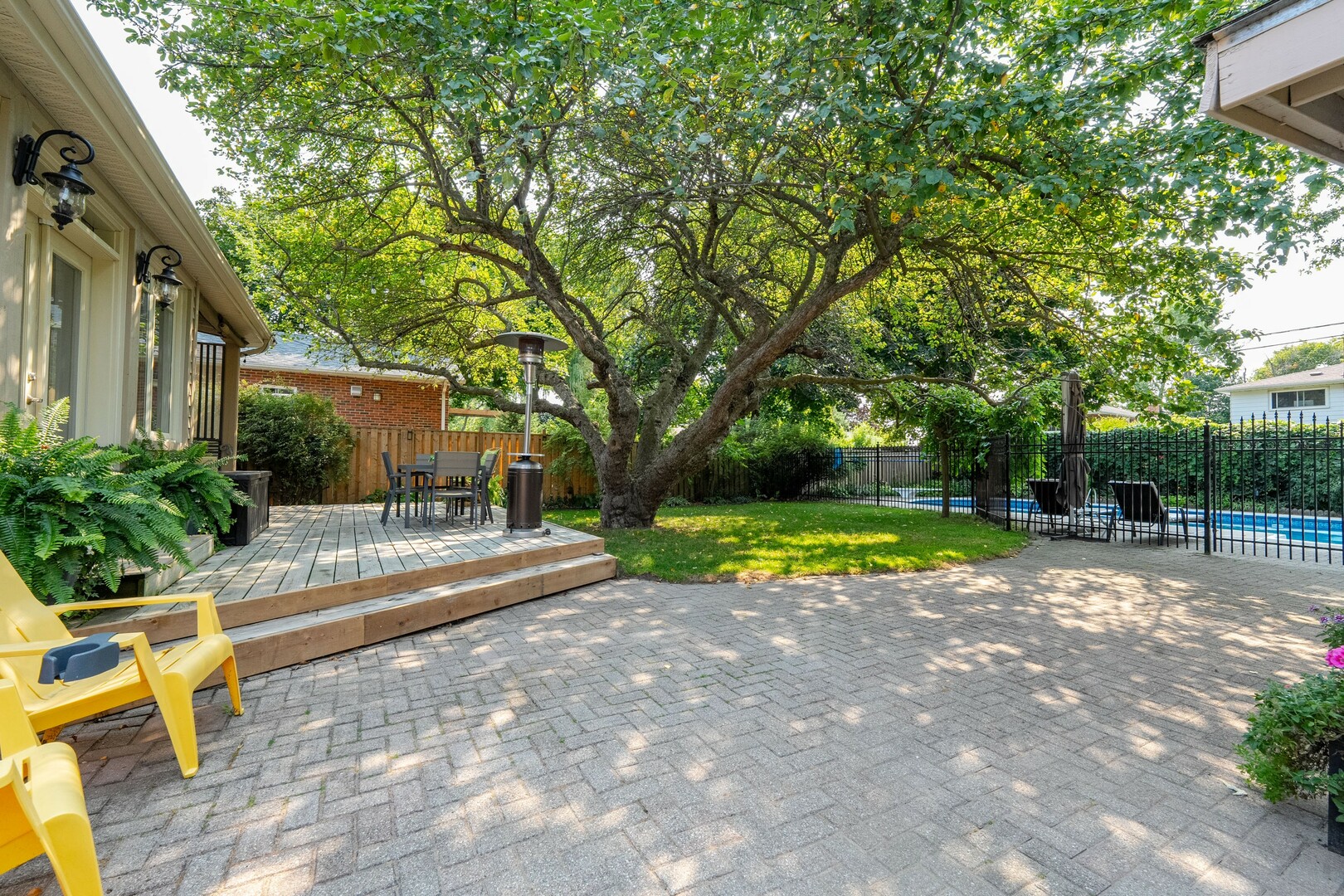 This bright cheerful sun filled family home features a premium 55’ lot, generously sized principal rooms & bedrooms, hardwood floors, gas fireplace, heated washroom floors, large modern eat-in kitchen with over-sized island, granite countertops, stainless steel appliances, walk-in pantry & abundant storage. Two walkouts allow seamless flow out to an entertainer's dream backyard including a covered 3 season seating area with ethanol fireplace overlooking a stunning in-ground heated pool, interlocking stone patio ideal for summer BBQ’s & pool parties with family & friends providing a great balance of indoor-outdoor living. Finished lower level includes a recreation room and a convenient 3-piece bath.