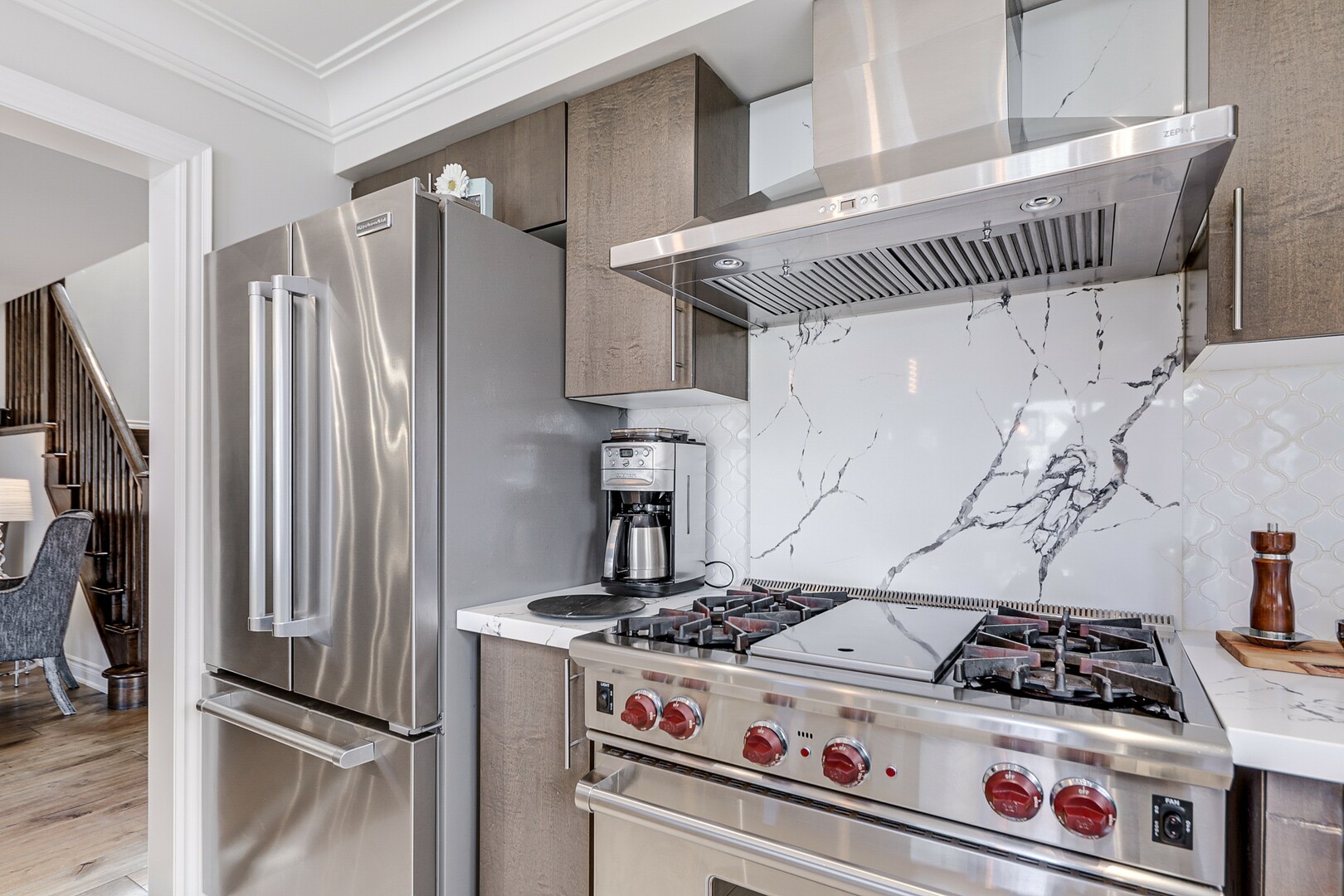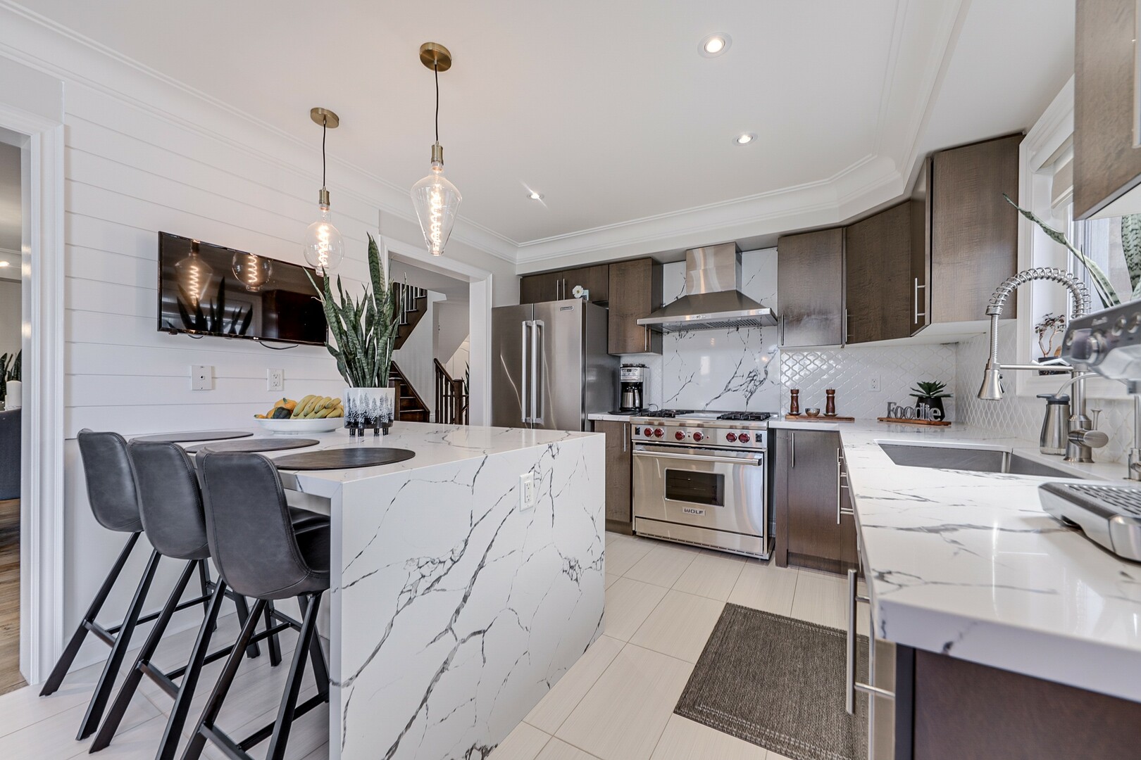 Welcome to this exquisite home! Enjoy over 3000sqft of living space. This 2-story 4-bedroom home fronts on Nature Trails & close to pond. Fiberglass front door is stunning and provides high security. Gorgeous engineered hardwood floors throughout. Kitchen has quartz waterfall counters and quartz backsplash behind WOLF Professional Gas Stove & Commercial Hood Vent (8in). Large family room with gorgeous high vaulted ceiling and architectural fireplace. Basement in-law suite is perfect for a separate living quarters for family member. Inc. fireplace, LED lighting throughout w/ dimmers, kitchenette, 4pc luxury on-suite w/ heated floor. Large finished pantry, cold cellar, workout gym (rubber flooring). Custom built garden shed (backyard), professionally landscaped, natural stone-porch-pathways. Rough-In Electrical for Hot Tub. Over $100,000 in upgrades that are visible throughout the property. Family home is ready to move in!