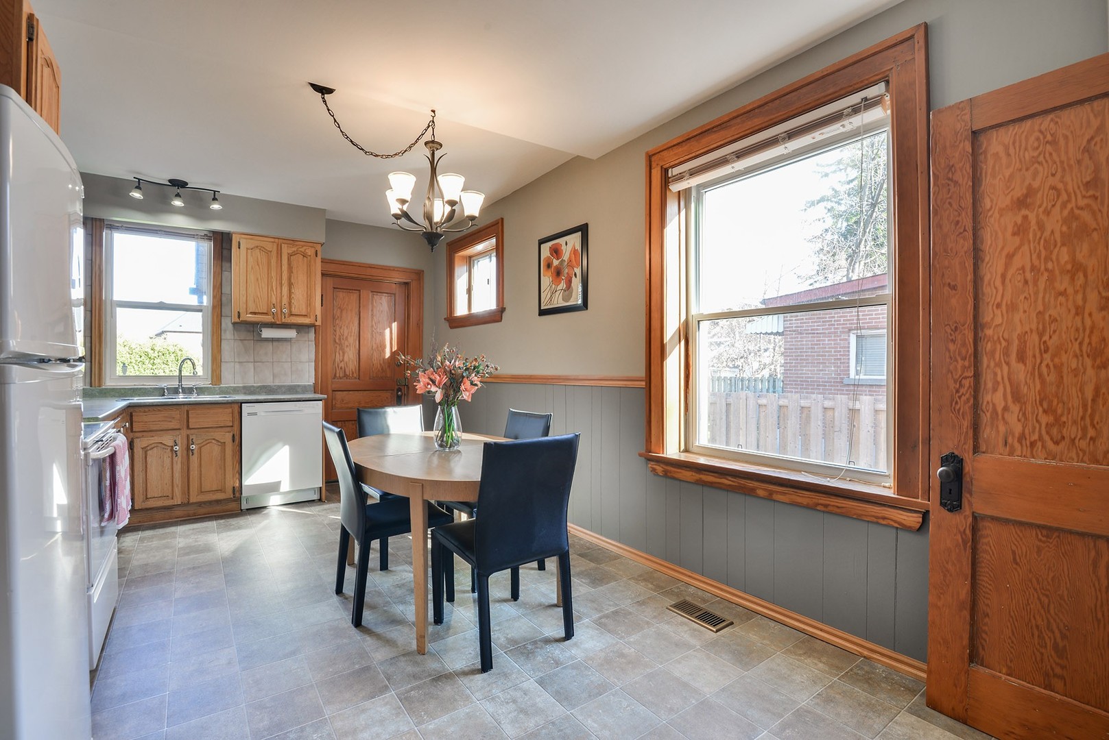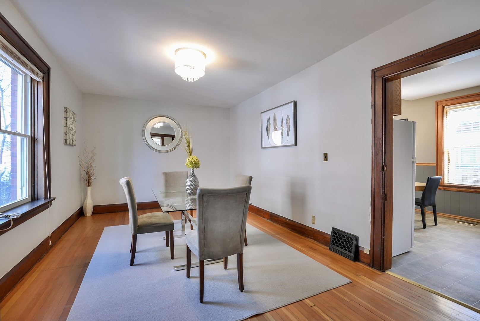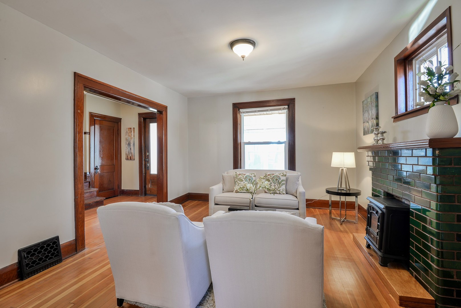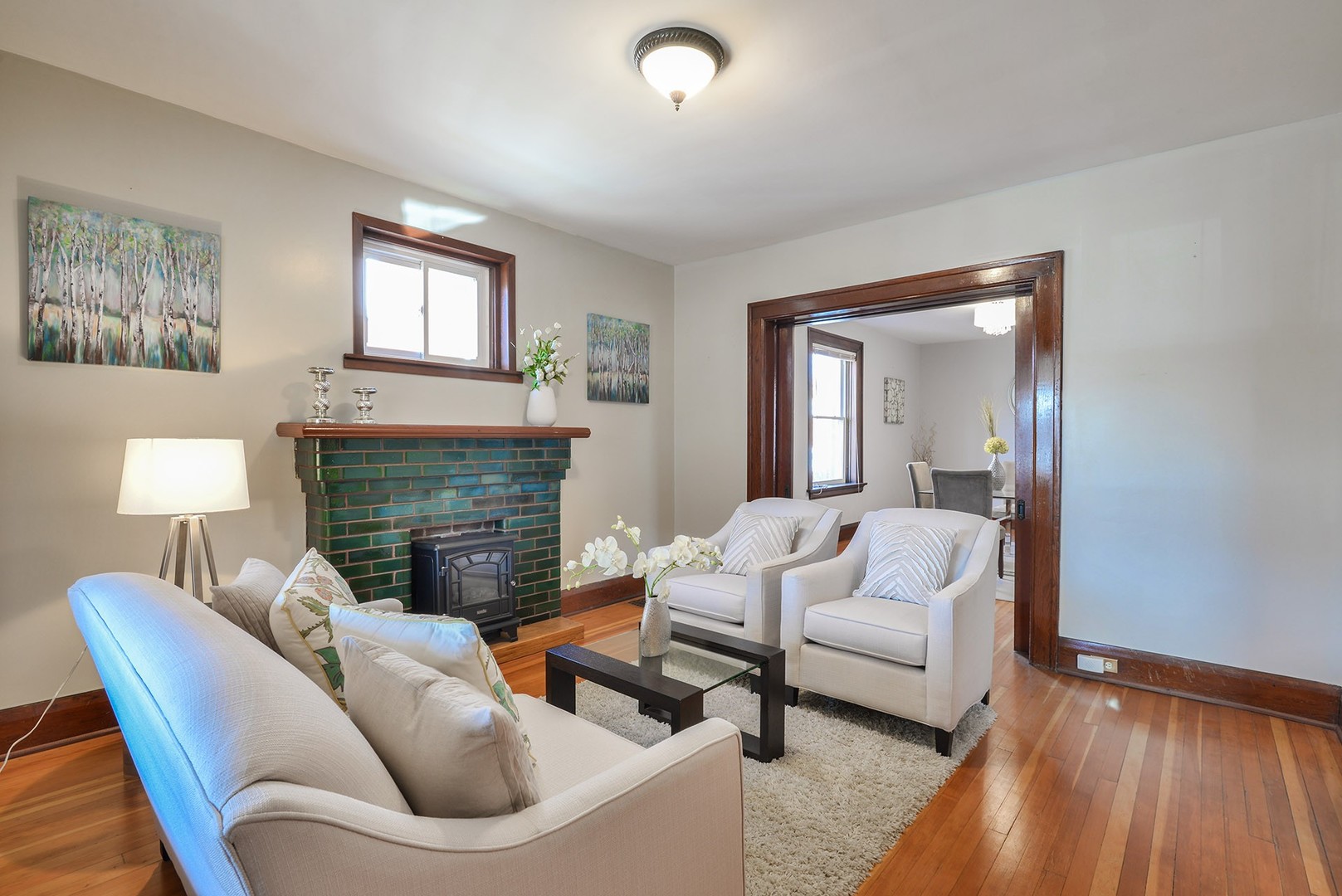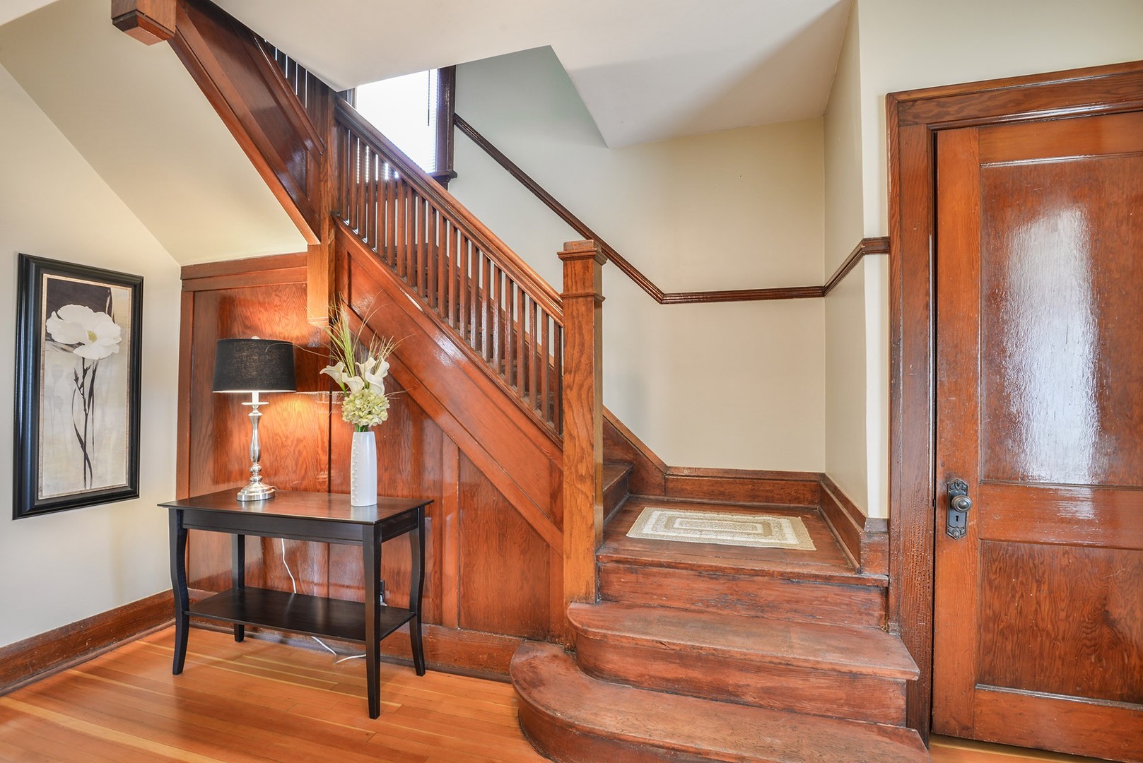 Refinished original Douglas Fir hardwood flooring and trim was kept for that yesteryear touch.