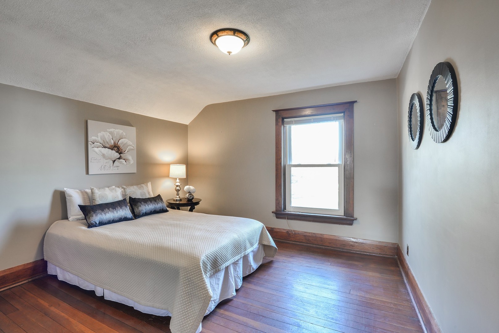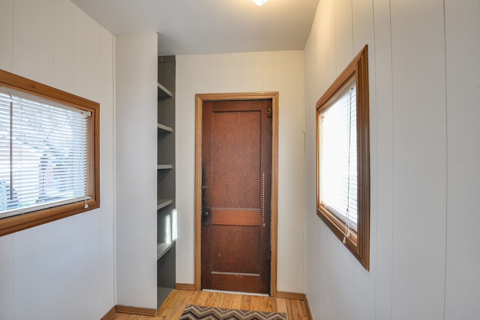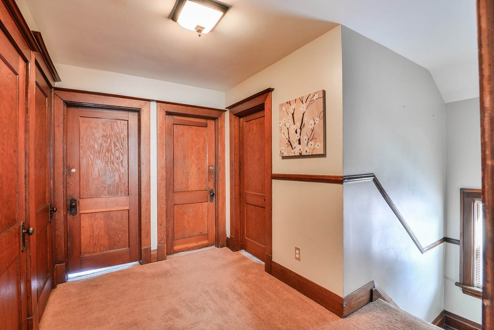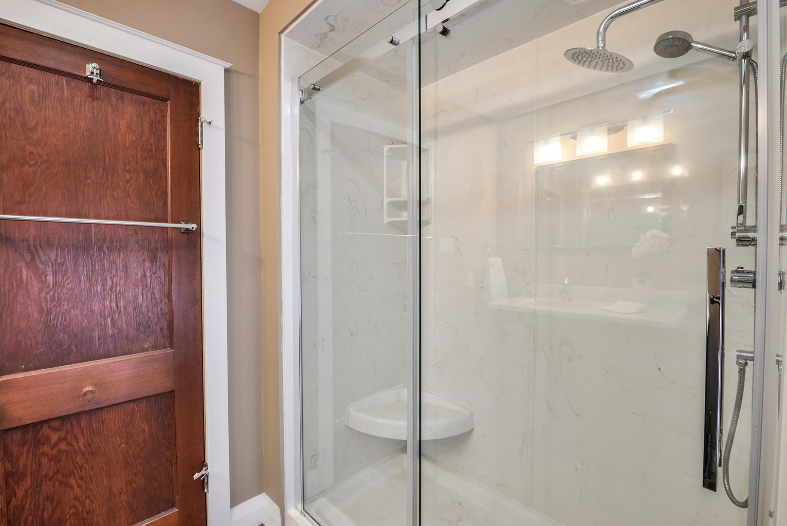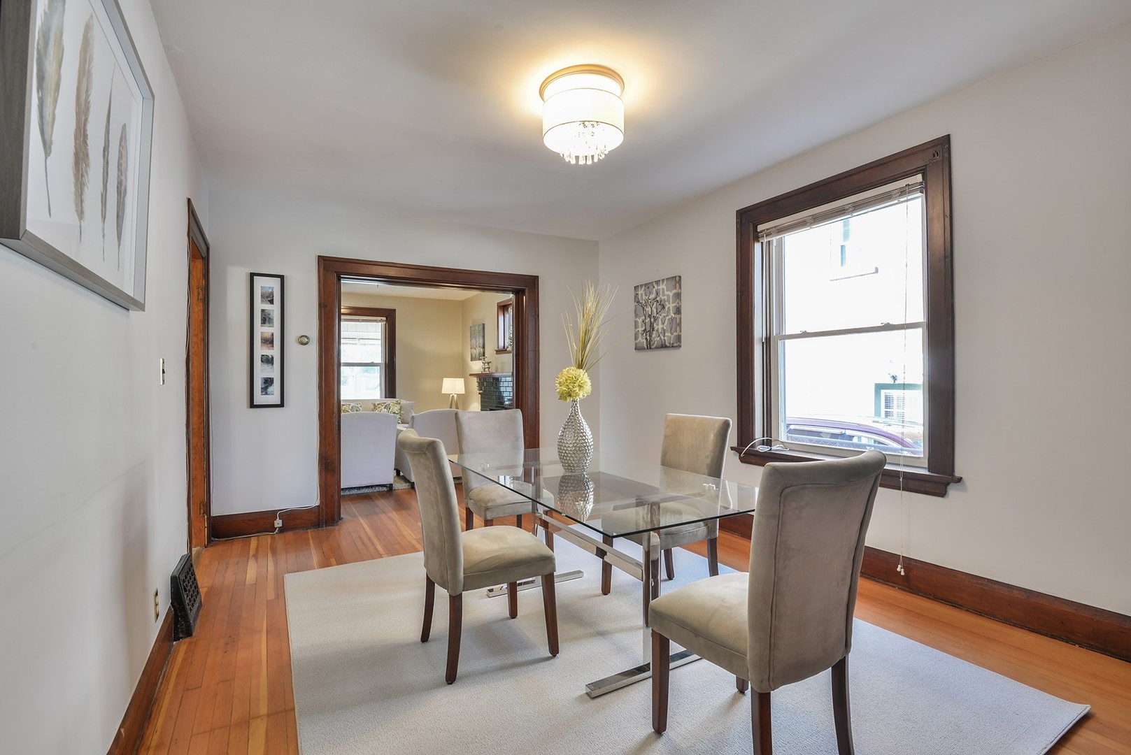 Refinished original Douglas Fir hardwood flooring and trim was kept for that yesteryear touch.