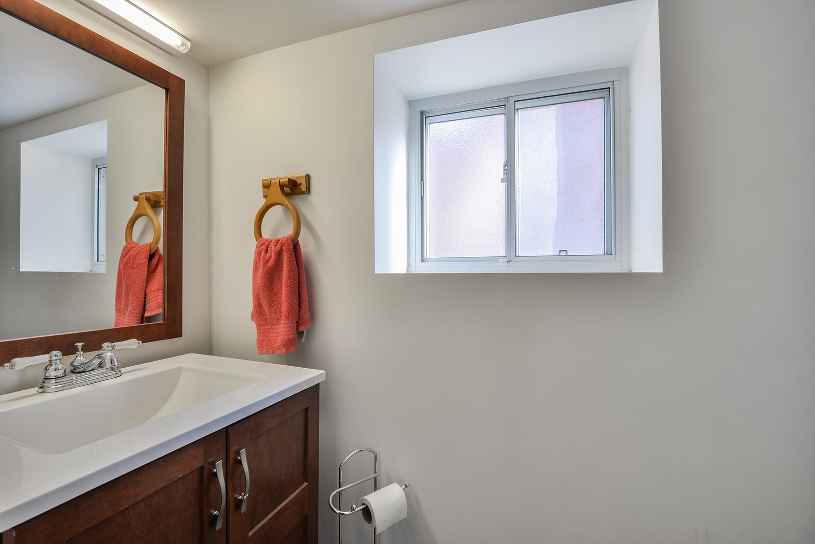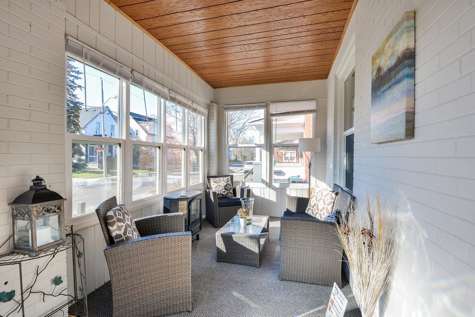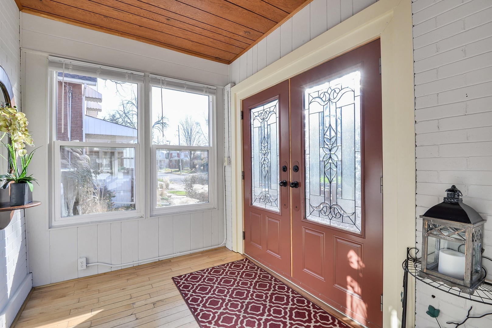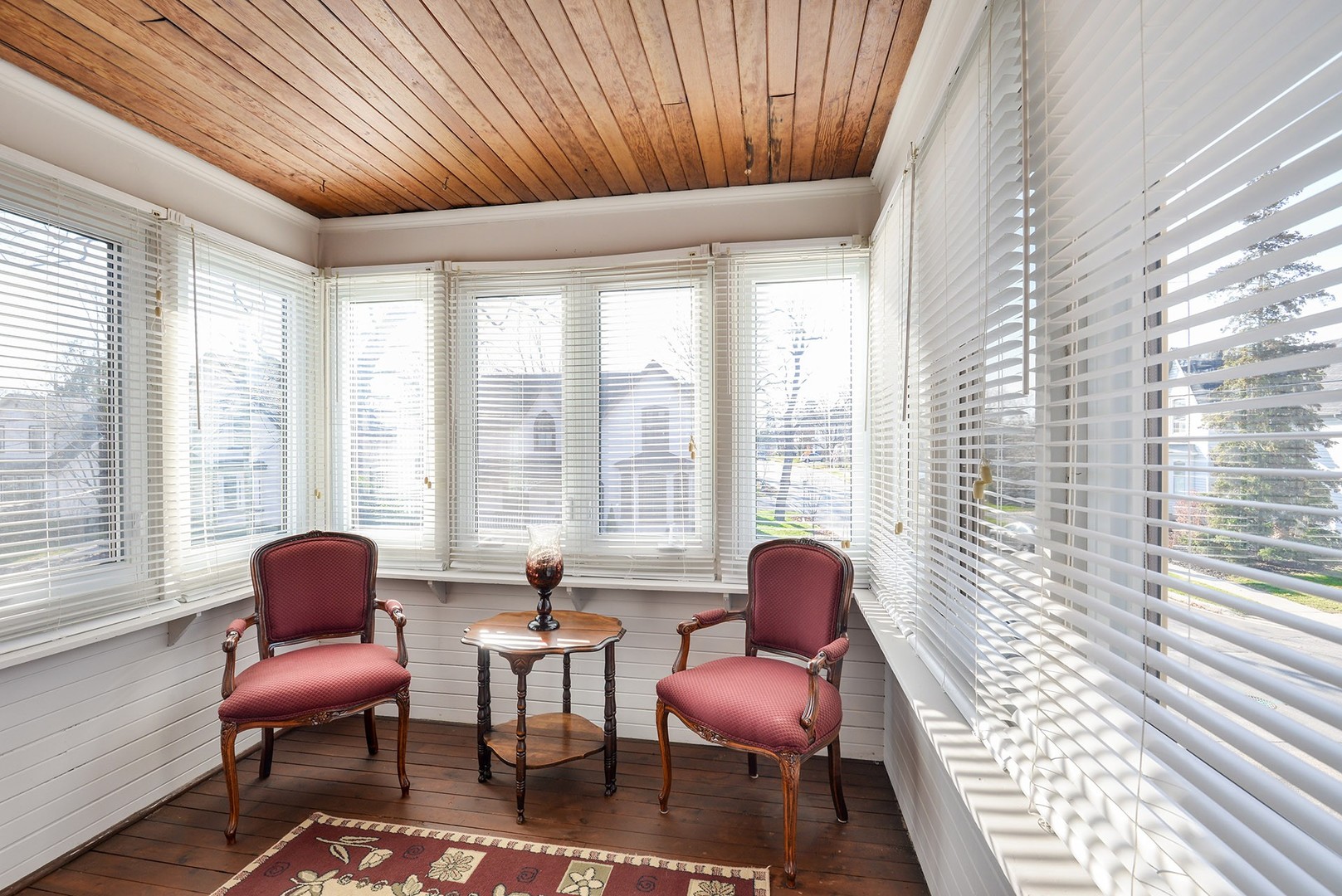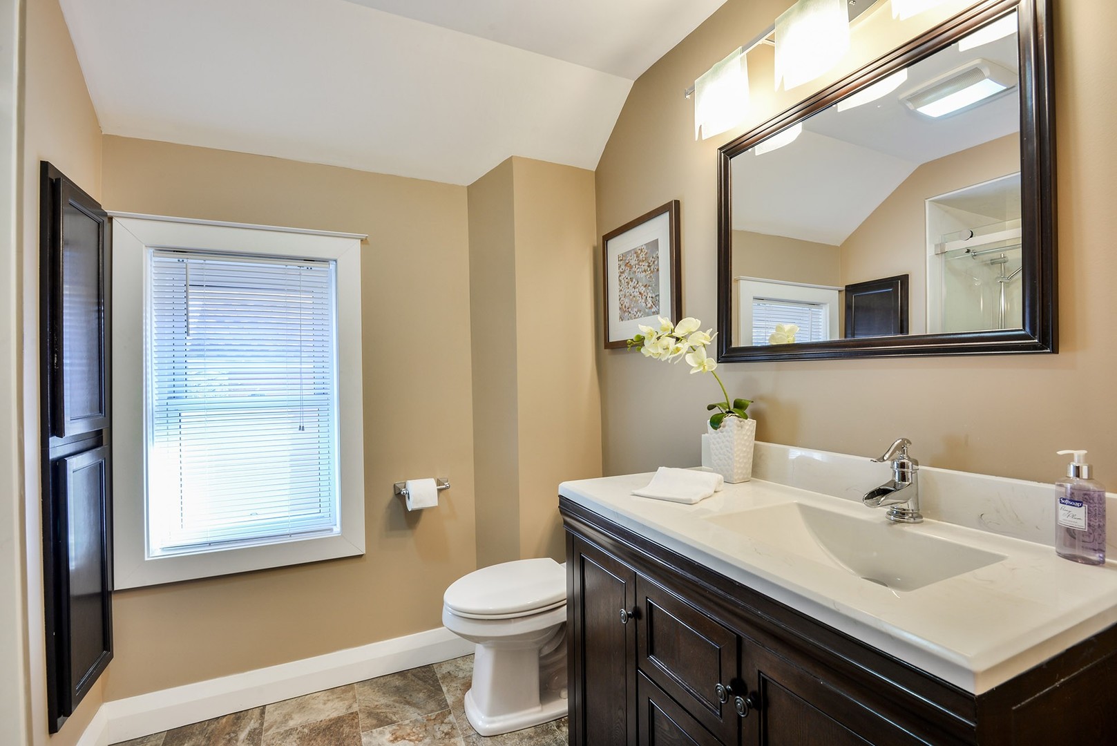 Refinished original Douglas Fir hardwood flooring and trim was kept for that yesteryear touch.