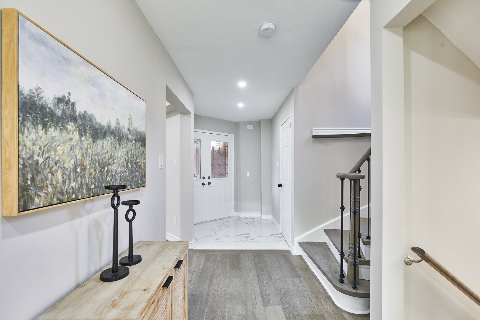 * 4 +1 Bedroom 3 Bathroom Detached Home In Pringle Creek Whitby * Totally Renovated * New Hardwood Floors on Main & Second * New Kitchen with Quartz Counters & Backsplash * Breakfast Area with Walk-out to Deck * New Bathrooms * Freshly Painted * Entrance Through Garage * New Oak Stairs With Wrought Iron Pickets * Primary Bedroom With 6 Pc Ensuite * Front Interlock Walkway * Finished Basement With Bedroom, Rec Room, Den ad New Vinyl Floors * Steps to Catholic Elementary Schools & Sinclair High School, Parks, Shops, Hwy 401, & More * Furnace & Central Air (8 Yrs) Roof (15 Yrs) * Windows (10 Yrs)