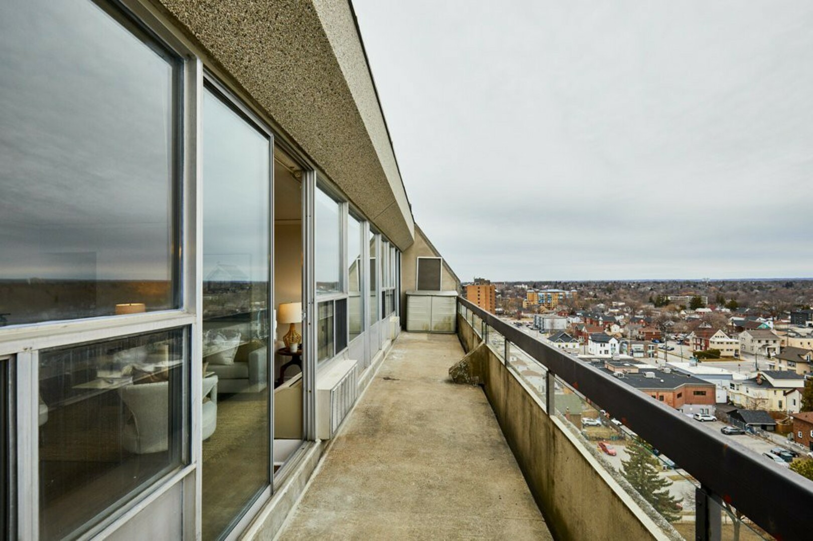 Welcome to Penthouse 12 at 55 William St E, Oshawa a bright & open, over 1000 sq ft residence offering both privacy, & breathtaking views. This rare corner unit features only one neighboring suite, additional windows for abundant natural light, & a sweeping 180-degree city view, including Lake Ontario & Toronto's CN Tower. Step inside to a welcoming foyer with ceramic tile flooring & an oversized coat closet. The open-concept living and dining area boasts floor-to-ceiling windows, contemporary Luxury Vinyl flooring, & modern lighting. Sliding glass doors lead to an expansive, nearly 40-foot-long terrace; your "backyard in the sky," perfect for outdoor furniture, storage, & alfresco dining. The kitchen is stylish & functional, with sleek finishes, ample counter space, & plenty of storage. The first bedroom offers serene terrace & city views, Luxury Vinyl flooring, & a double closet. The second bedroom, a hidden gem with an extra large closet, provides a private view of Toronto's skyline and CN Tower, making it ideal for a guest room, office, or retreat. The primary bedroom is a luxurious sanctuary with city & lake views, a spacious closet, & direct terrace access. The main bathroom features a walk-in shower, an extra-large vanity, & a high-efficiency toilet. Condo fees include - water, cable, & internet for added convenience. The private parking spot is located just steps from the doors into the building for added ease. Located in the heart of Oshawa, PH12 is steps from top entertainment, dining, outdoor attractions such as the Tribute Centre, Yuk Yuks, YMCA, Costco, Legends of Fazio's Restaurant, & Wendel Clark's Classic Grill and Bar. Experience world-class events, fine dining, parks, & fitness centers, all within easy reach. Don't miss this rare opportunity, schedule your visit today!**The pictures in this listing are of when the property was furnished the owners have moved out & the property is now unfurnished** (id:9346)