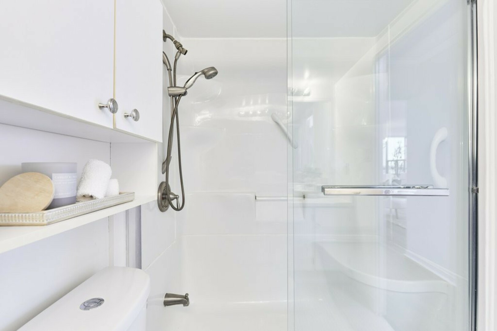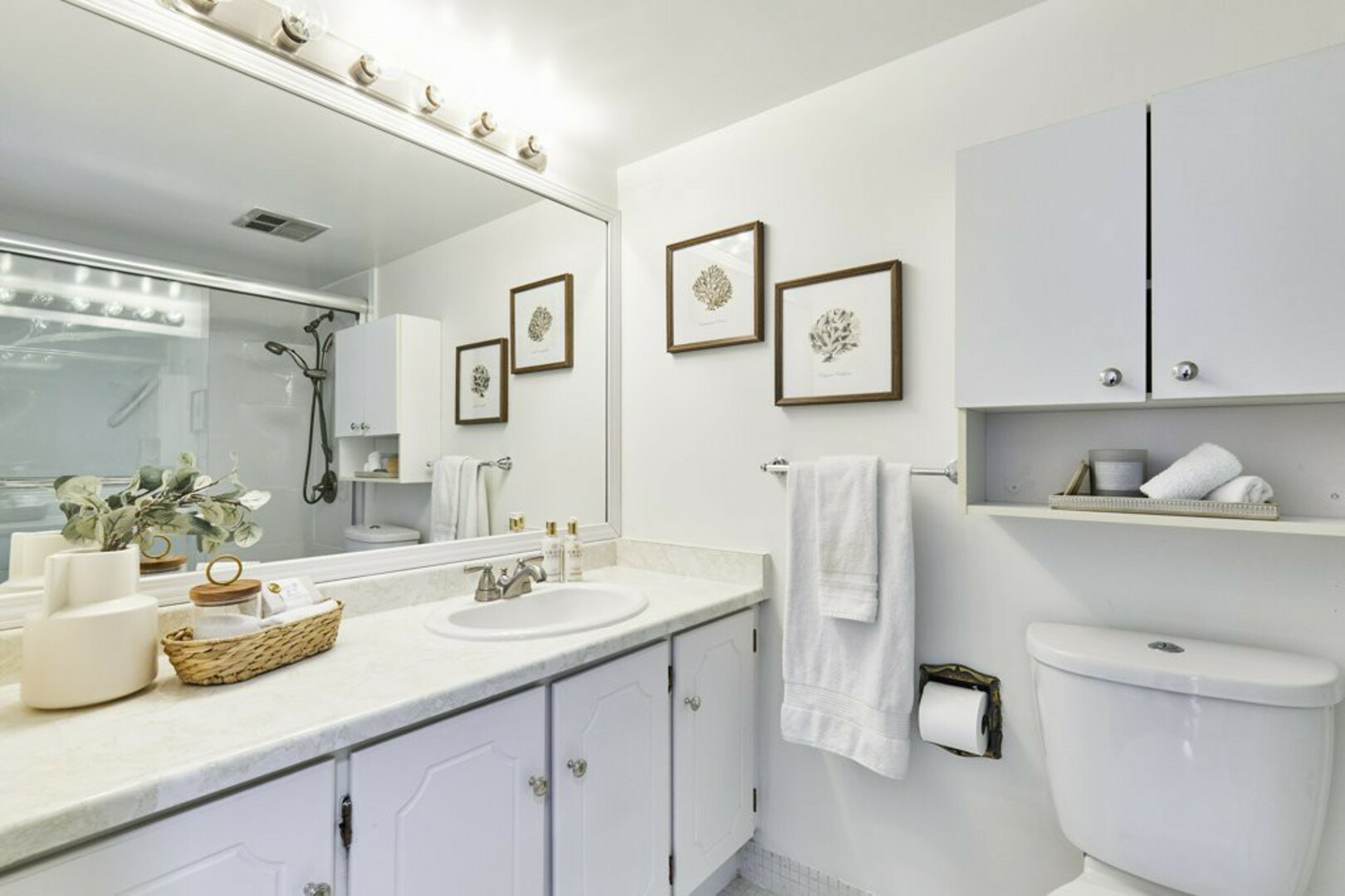 The main bathroom features a walk-in shower, an extra-large vanity with ample storage, and a high-efficiency low-flow toilet.