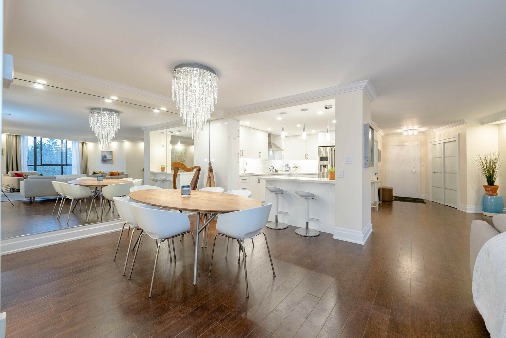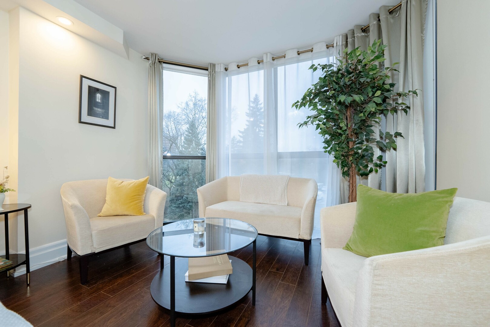 A Beautifully Appointed Tridel Condo In High Demand Humberview Heights. This Spacious Model Features Stunning Architectural Elements: High Ceilings, Angled Walls, and Floor-To-Ceiling Windows With Spectacular Views. The Tasteful Renovations Include a Stunning Kitchen, Engineered Wood Flooring, Crown Mouldings, Smooth Ceilings, an Entertainment Wall, And Many Luxury Finishings. The Primary Bedroom Boasts A Walk-In Closet, A 5 Piece Ensuite, And A Comfortable Sitting Area. The Private 2Nd Bedroom Has An Ensuite 3 Piece and An Oversized Closet. Gated Grounds Offers A Park-Like Setting And Adjacent Garden Allotments For The Avid Gardener. Convenient No Fee Car Wash. Excellent Schools Nearby, With School Buses Pickup Directly Outside The Building. It Is A Short Walk To The Bus Stop And Soon One Ride To Mt. Dennis Subway Station.