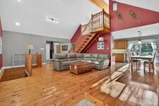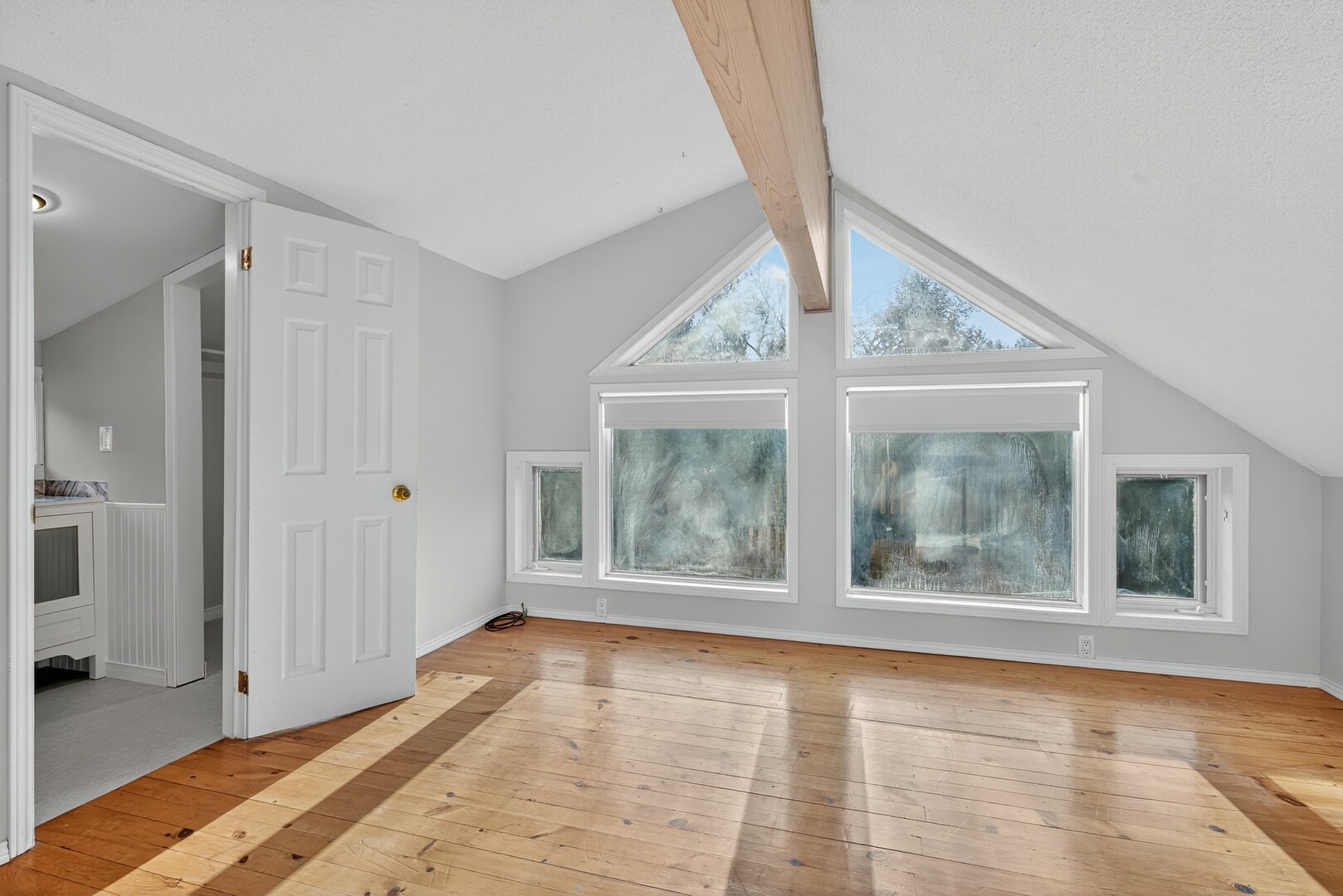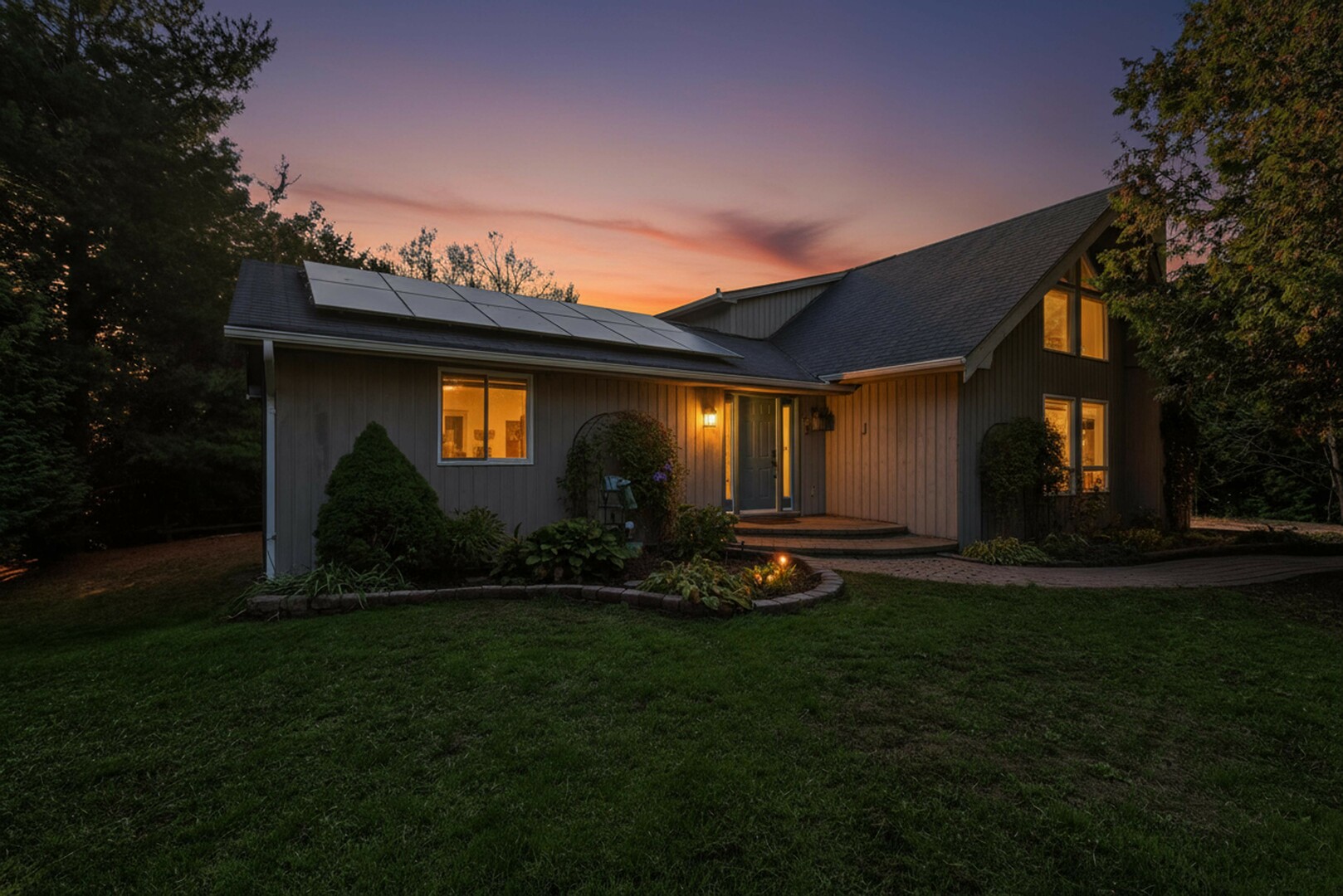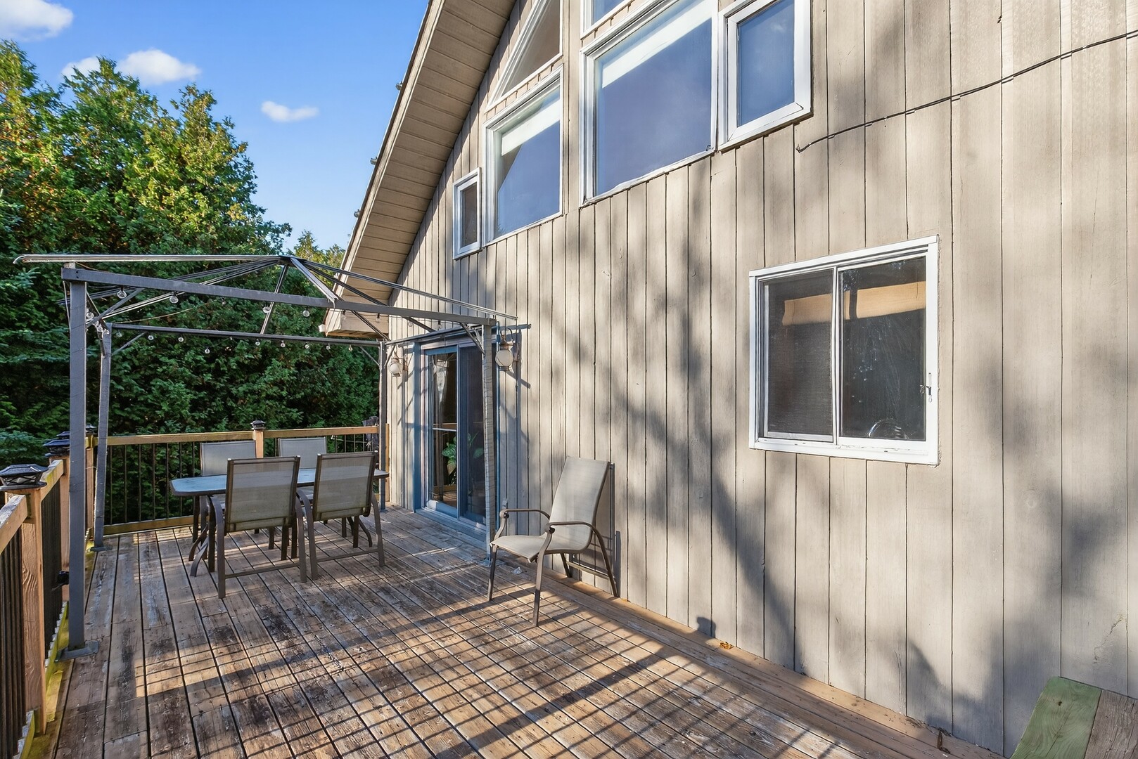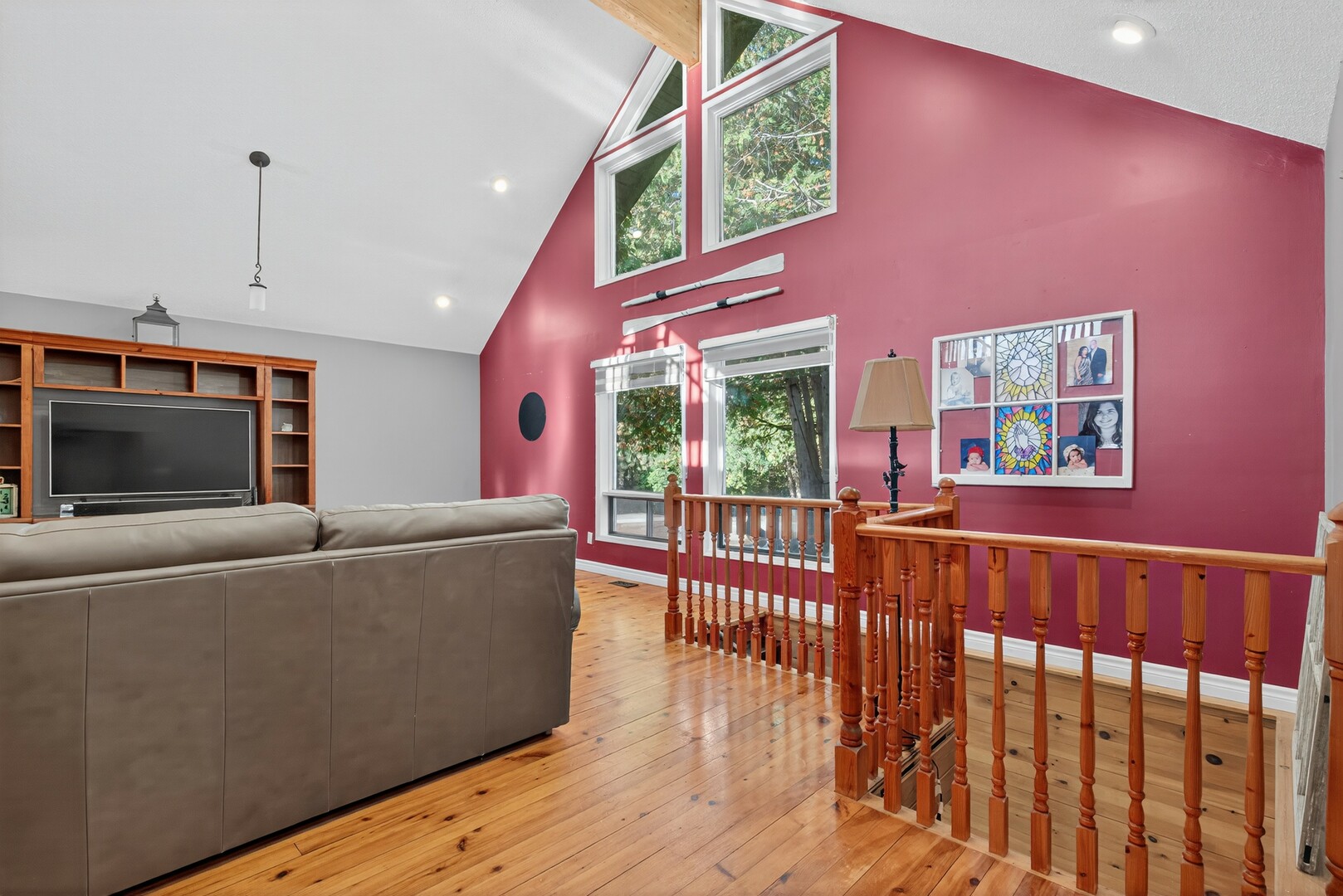 Welcome to 7 Margaret Avenue in Rural Tosorontio! Tucked away on a quiet street in a friendly rural community, this 2.3-acre (180'x420') property offers peace, privacy, and natural surroundings. Towering trees frame this charming chalet-style home, perched on a gentle hilltop with an eastern slope and open yard areas to enjoy the outdoors. Inside, you'll love the bright open-concept main floor featuring cathedral ceilings, large windows, and warm pine floors throughout the living and dining areas. The living room is wood-stove ready, with chimney piping already in place. The adjoining dining room includes a sliding walkout to the rear balcony perfect for morning coffee or evening sunsets. The kitchen features wood cabinetry with crown moulding, undercabinet lighting, pull-out organizers, a tile backsplash, and a convenient coffee bar nook, plus newer Samsung appliances including a double-oven stove and a fridge with ice and water. Two main-floor bedrooms offer comfortable space and closets, while the main bath includes a double-sink vanity, corner soaker tub, and separate shower. Upstairs, a versatile loft bedroom overlooks the living area and includes a 2-piece ensuite and walk-in closet. ~1714 sqft. The walk-out basement adds valuable living space with a large rec room, second kitchen setup, fourth bedroom, 4-piece bath, and laundry area with two sets of washer/dryers ideal for extended family or guests. Practical features include a geothermal heating system (2013) for efficient comfort and solar panels generating approximately ~$2,700 per year in income fully transferrable for another 10 years. Outside, enjoy the fire-pit area, mature trees, and rear balcony measuring about 10ft x 24ft, overlooking your private property. A rare opportunity to enjoy rural living with sustainable energy and timeless charm all within a welcoming community setting.