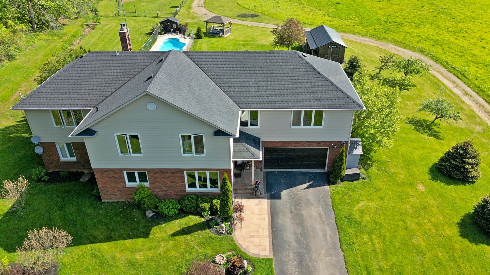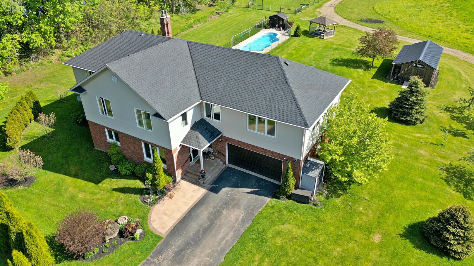 Welcome to a prestigious & tranquil 75-acre retreat in the heart of North Burlington, where comfort meets rural charm on this expansive farm. Nestled amidst lush landscapes, this magnificent property boasts a spacious 3,907 square foot, 2-storey, 5 bedroom, 4 bath home, offering an exceptional blend of convenience and luxury. The main floor features a bedroom & ensuite, perfect for guests or multi-generational living. The kitchen is equipped with restaurant-grade appliances, making it a culinary enthusiast's dream. The 2nd floor includes a 2nd large family room, ideal for extra privacy, kids space, & entertaining, while each bedroom is generously sized. The large living spaces along with high-speed internet ensuring a blend of modern living with the tranquility of country life. Large windows throughout the home provide stunning views of the picturesque landscape, sunsets, sunrises, the serene 2-acre pond & extensive walking/horse trails that invite exploration and relaxation. Beyond the main residence, the property includes an inground fibreglass pool, a 34' x 48' barn, a massive shed, & an outbuilding ideal for various agricultural pursuits or as a versatile space for hobbies & storage. (id:9346)