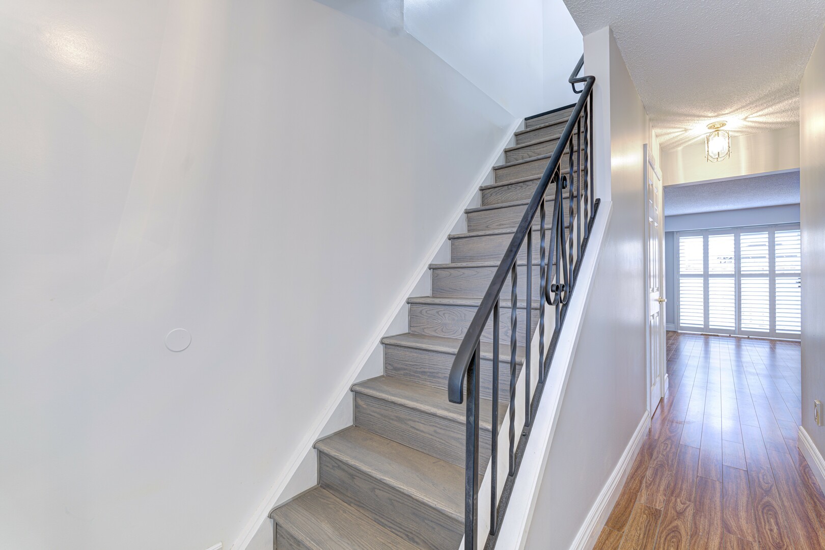 "Welcome to the condo townhouse prize lot of Gateshead in the beautiful city of Stoney Creek. This south facing location has a wonderful nature view of the Niagara Escarpment. It is just tiny steps away from Cherry Heights park for children to enjoy several sporting fields and play grounds. Within steps to Stoney Brook Manor to visit elder family members if need be now or in the future. An excellent walk score that boasts both a short jaunt to catholic and public elementary schools as well as a catholic high school. A short walk to public transportation and too many amenities to mention makes this location ideal. You simply can not renovate the fact that your new home is an end unit, has a driveway to support 2 cars, a garage and access directly from a city road without entering and navigating speed bumps, twists and turns in the survey. You will notice newly upgraded stairs leading to fresh new floors, door and light fixtures in the 3 well sized bedrooms. The main floor has a walk out to the backyard that accepts the setting sun light to the west ready for your patio set and BBQ. Not a fan of the sun simply close the California shutters throughout the home. As mentioned keep one of your cars warm in the winter in the garage and access it through an interior door. An automatic garage door opener and central vacuum system make this property even more convenient. The rec room in the basement with an electric fireplace and is ready for your families enjoyment watching sporting events or just keeping safe, sound and warm spending time with your family or friends. What else could you ask for in a condo townhouse?