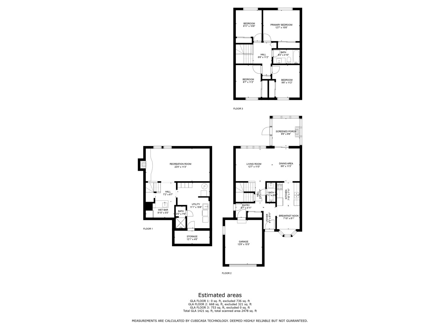 | Primary Bedroom | Second level | 12' 7'' x 10' 8'' |