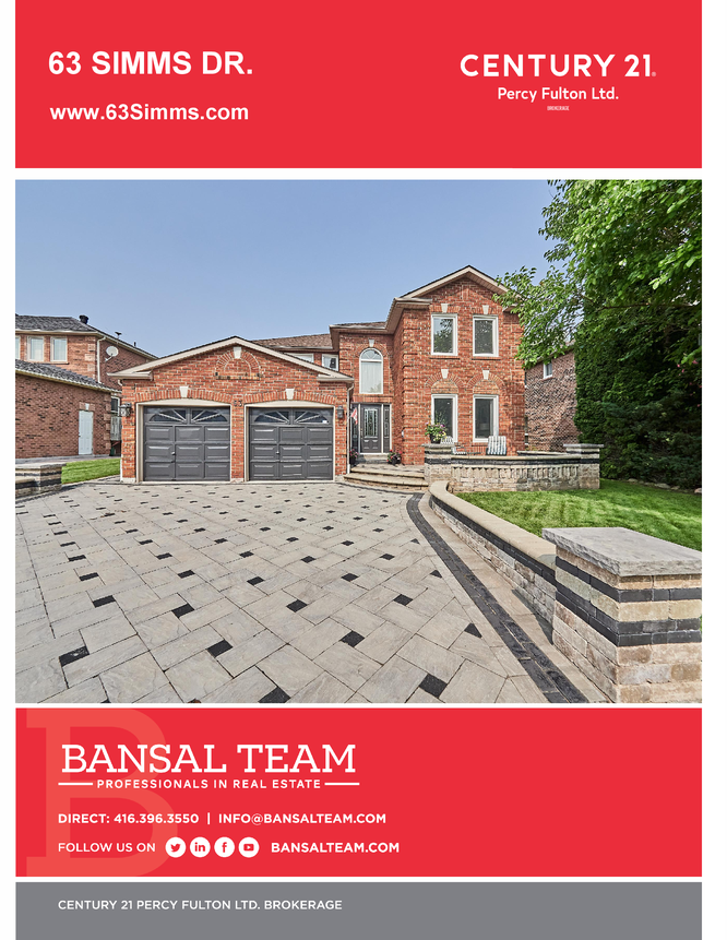 A stunningly updated 4+1 bedroom brick home with five washrooms, nestled in a coveted neighbourhood minutes from the heart of Central West Ajax’s historic Pickering Village, welcome to 63 Simms Drive.