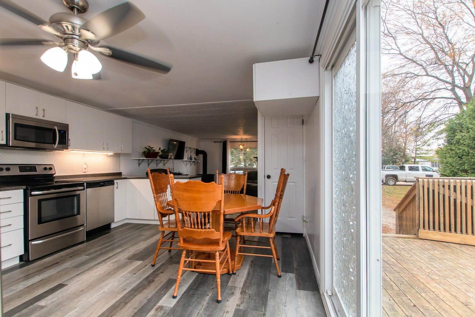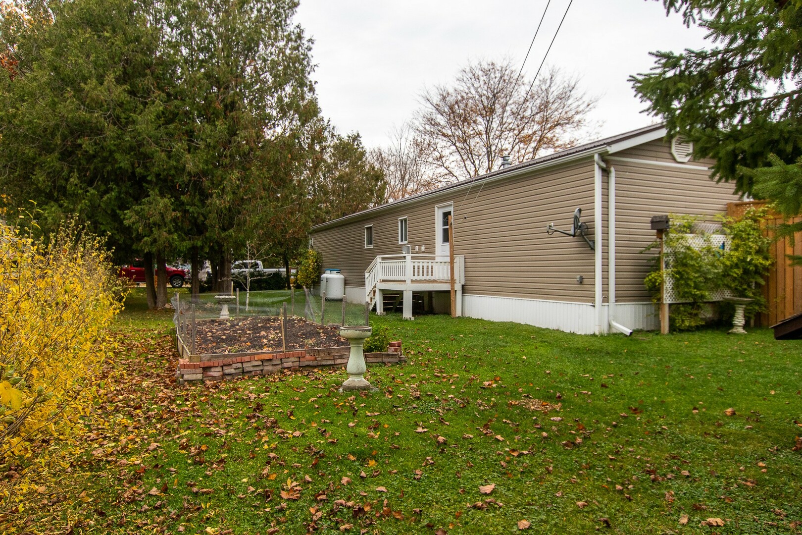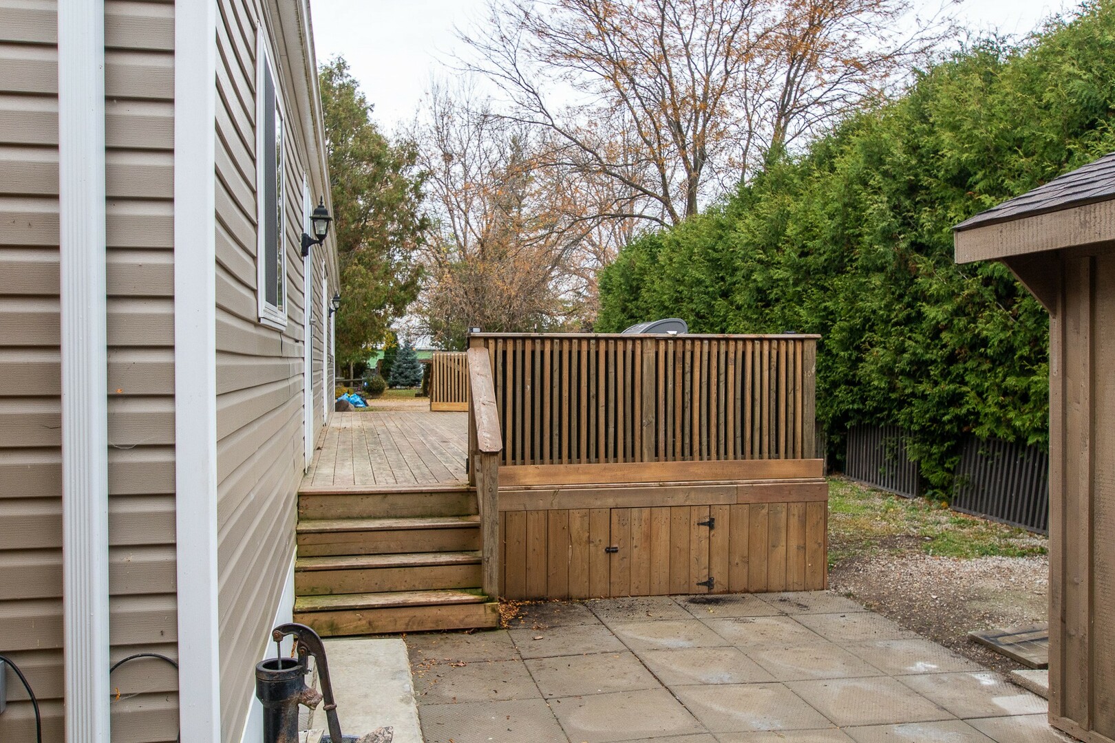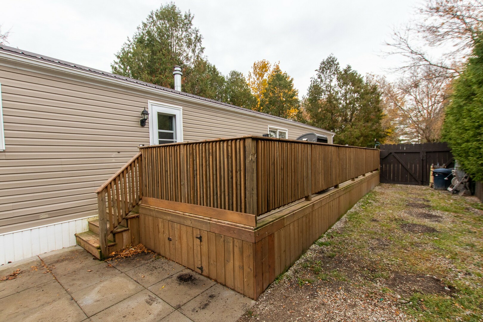 This fresh two-bedroom one bath open concept living bungalow mobile home is situated on a large lot with gardens, trees, a large deck, private patio, large double work shed with power and covered parking for your lawn tractor. There is a fenced in area for the dog to run.