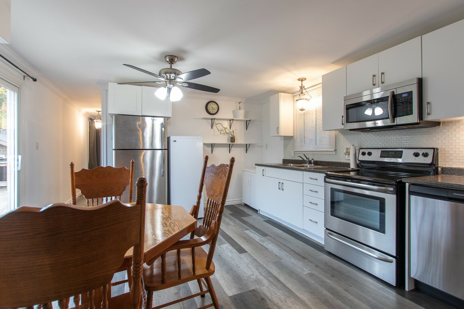 Entering the home you will notice an open airy fresh space. The new kitchen is open concept and is well laid out with eat in dinning, stainless steel appliances, modern durable flooring throughout.