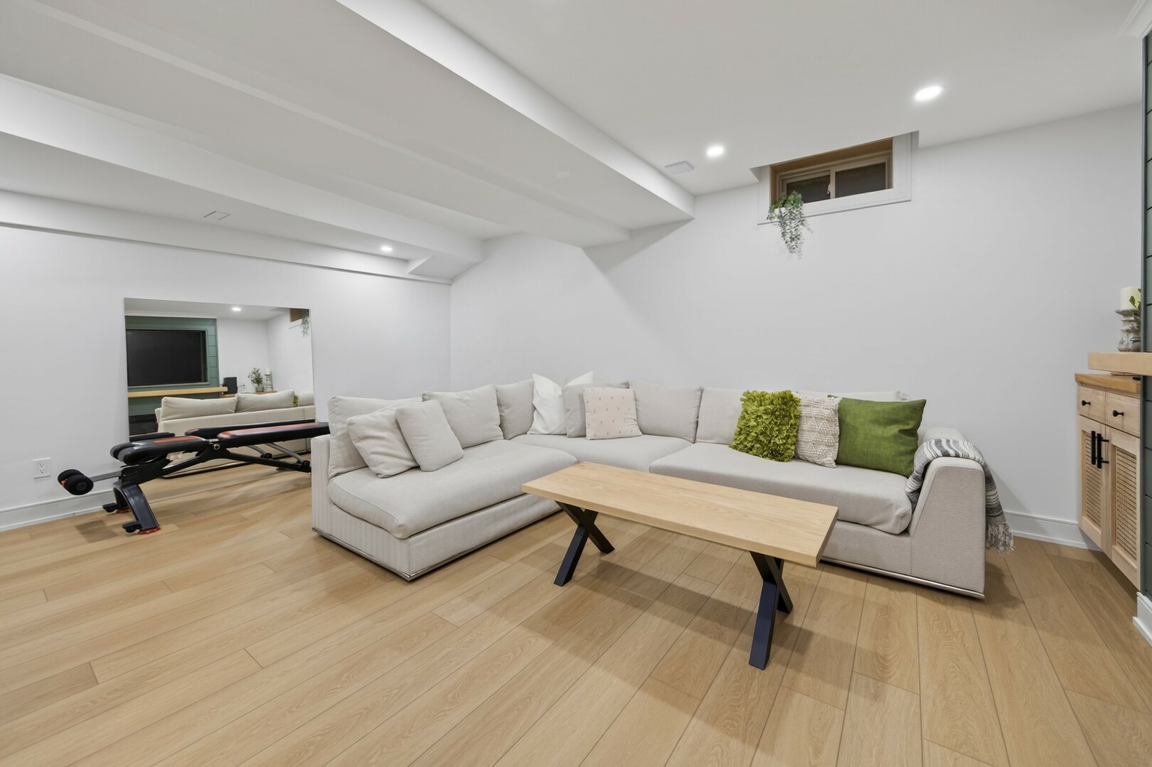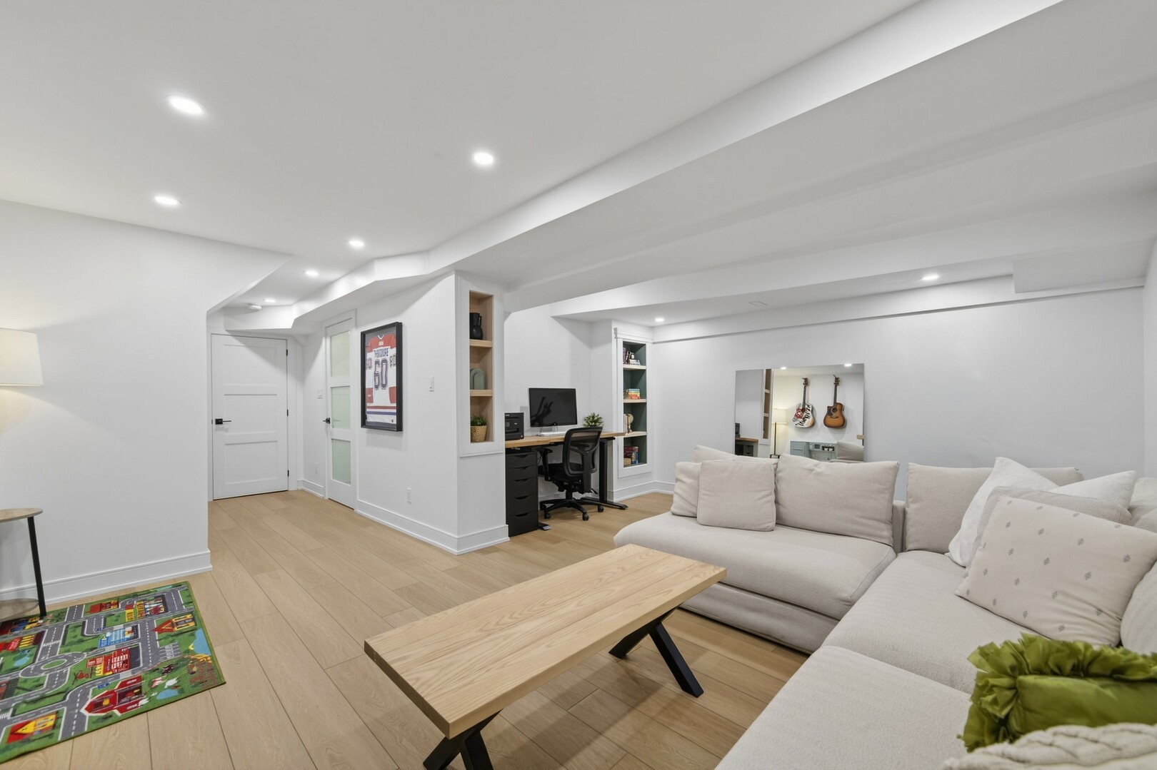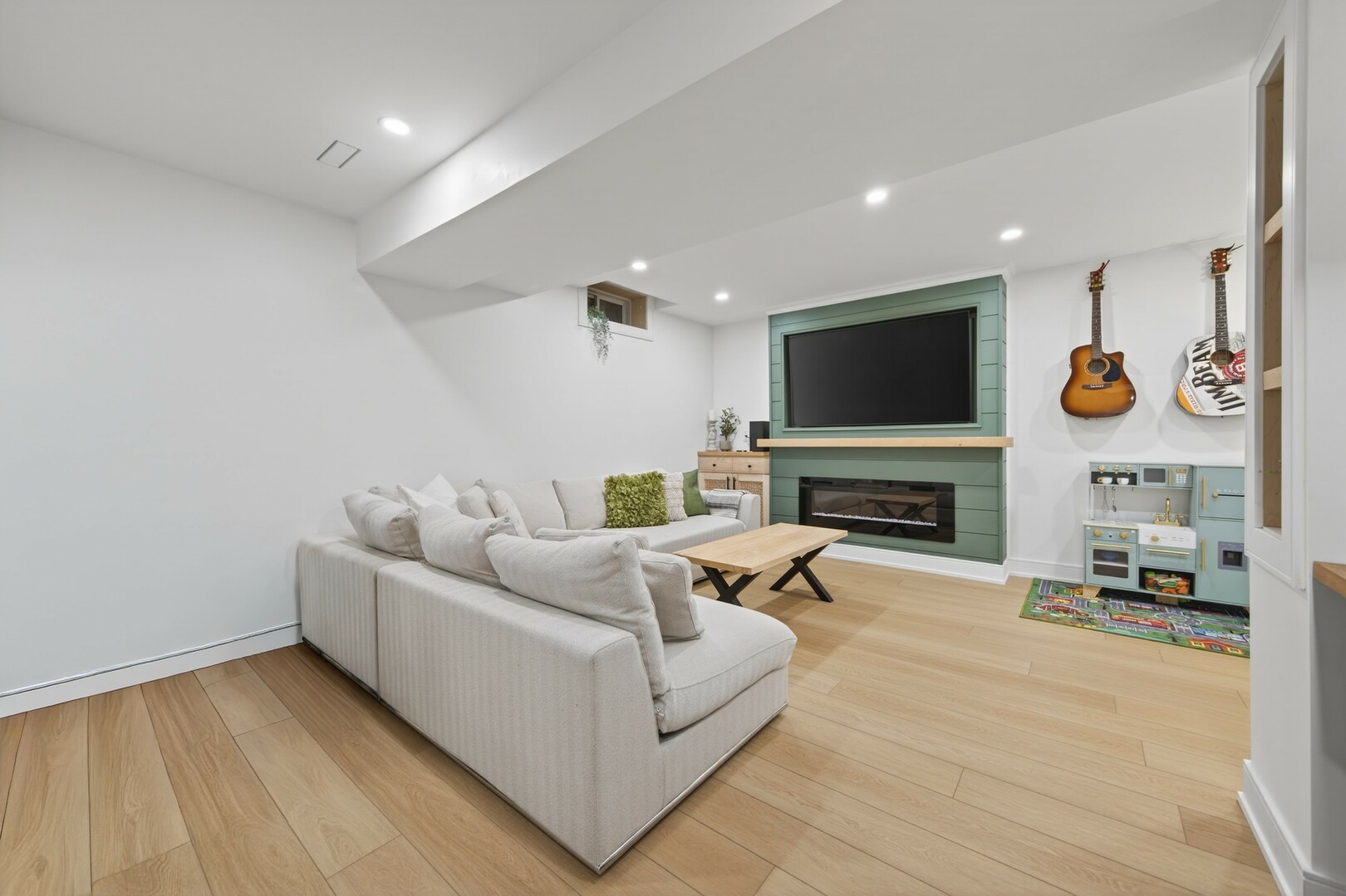 A beautifully finished basement expands your living space offering a versatile area for movie nights, or a cozy retreat.