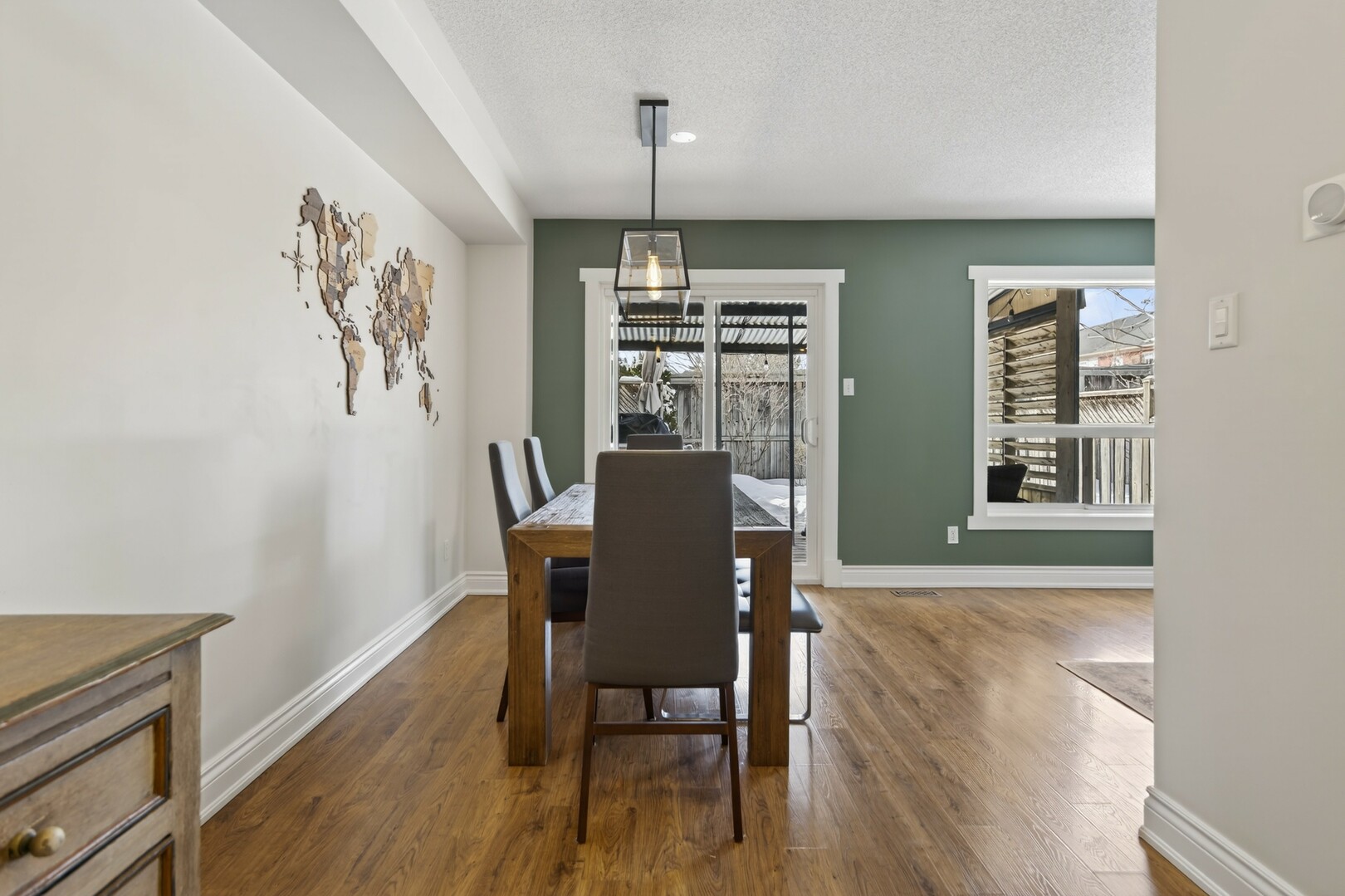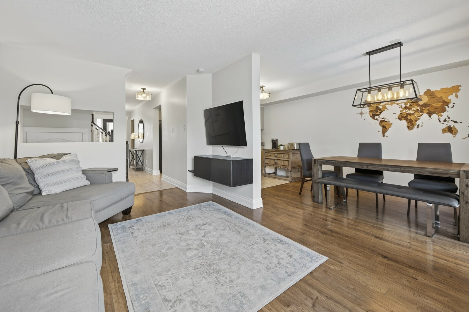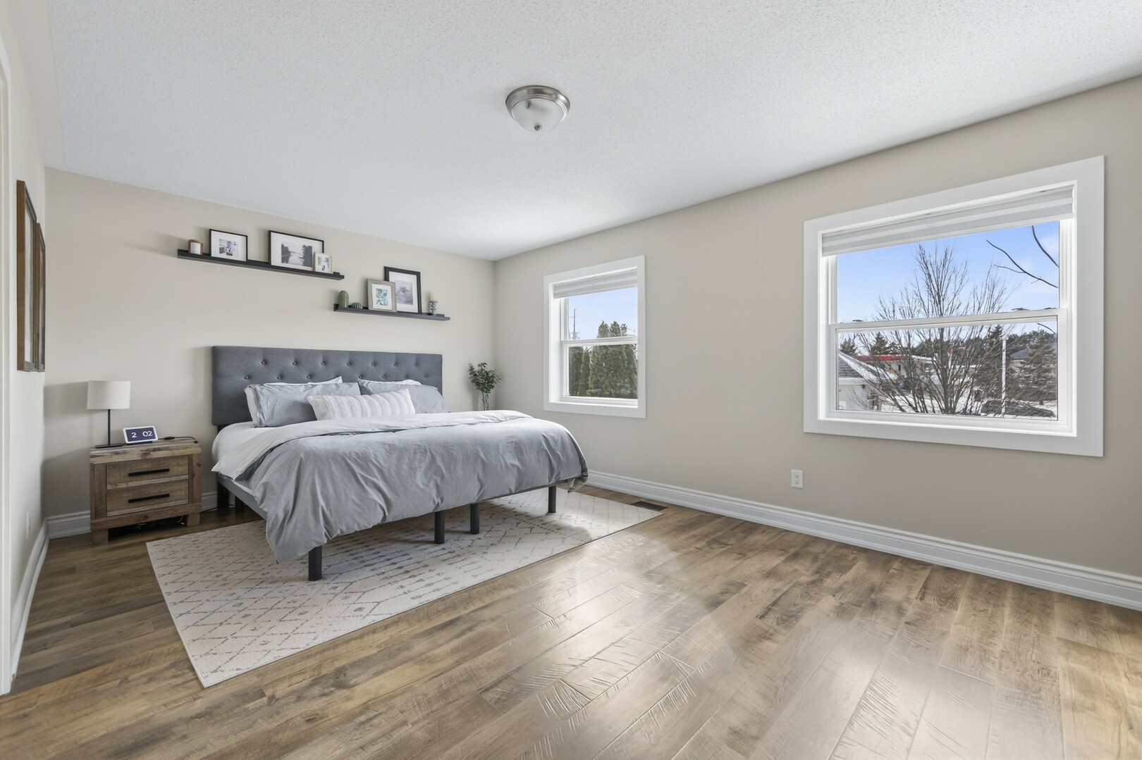 A beautifully finished basement expands your living space offering a versatile area for movie nights, or a cozy retreat.