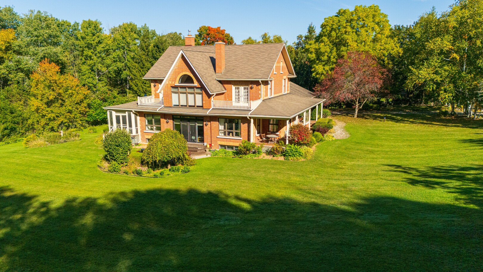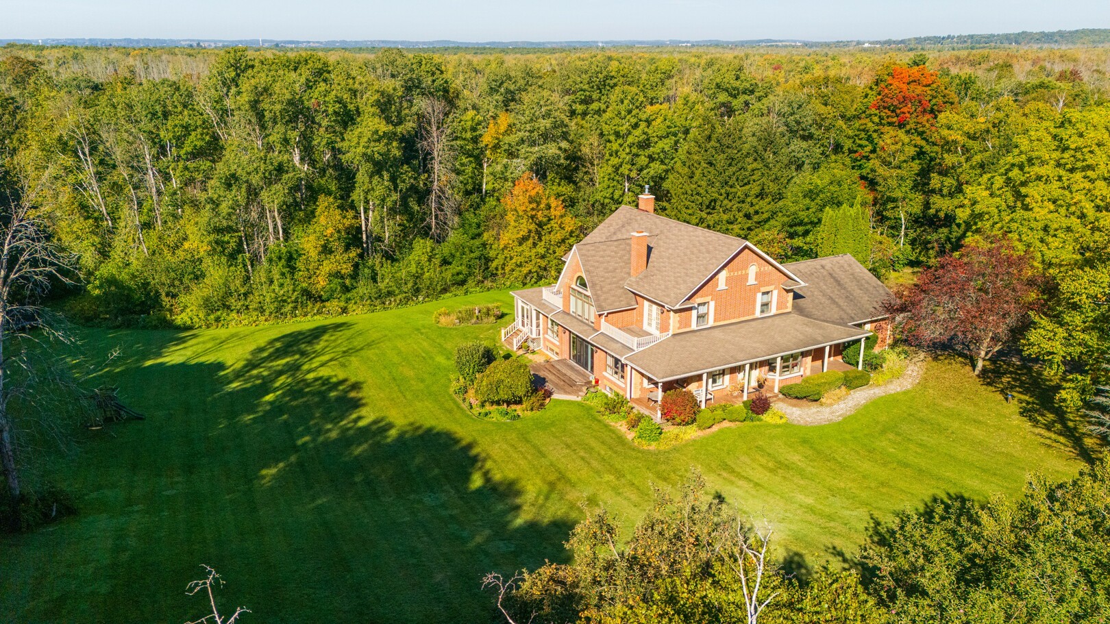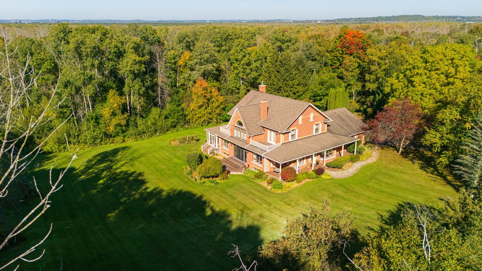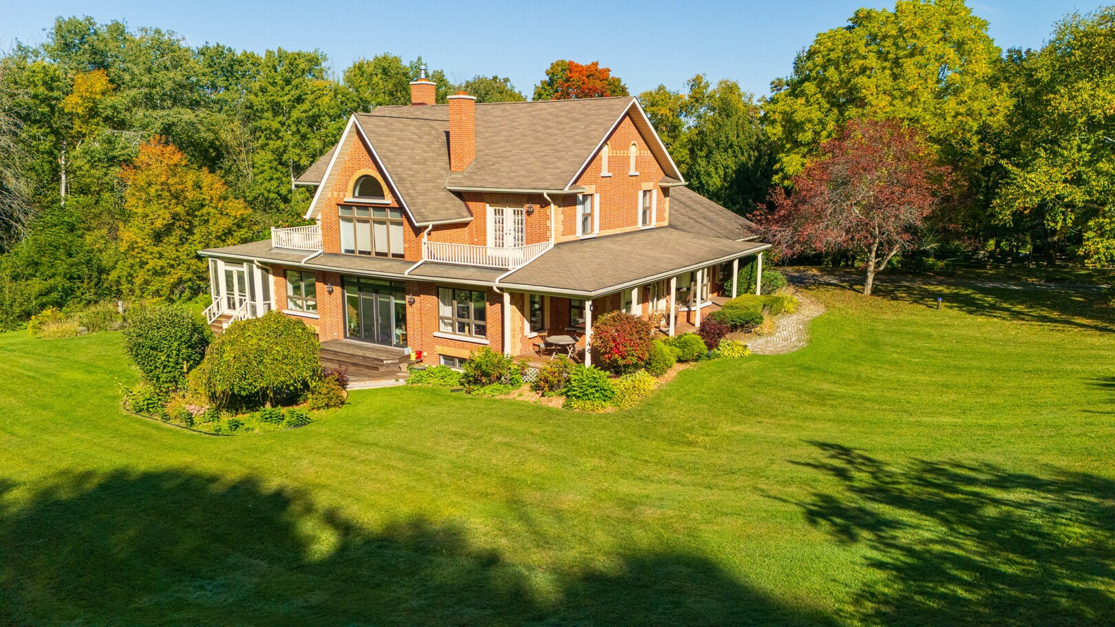 Exquisite 3.6-acre estate in prestigious Carrying Place Estates, privately tucked at the end of a quiet court. Surrounded by breathtaking four-season forest with a perfect blend of flat and rolling terrain. Showcasing French-inspired architecture, this residence offers multiple wraparound verandas and timeless elegance throughout. The modern designer kitchen features quartz countertops, a breakfast island, and refined finishes. A double-sided fireplace enhances both warmth and sophistication. Step onto the grand veranda spanning the back of the home perfect for morning coffee or evening entertaining. The primary suite is a private retreat with a walk-in closet, spa-inspired ensuite, and balcony with serene forest views. Two additional bedrooms provide comfort and style. The finished lower level boasts custom built-ins, a fireplace, sauna, and a sleek three-piece bath. A rare opportunity to own an exclusive residence offering unmatched privacy, elegance, and natural beauty in one of the areas most coveted communities. Mins to Highway 400, Hwy 9,Go Transit,Kings Finest Schools CDS, Villa Nova, Amenities Newmarket and Schomberg. (id:9346)