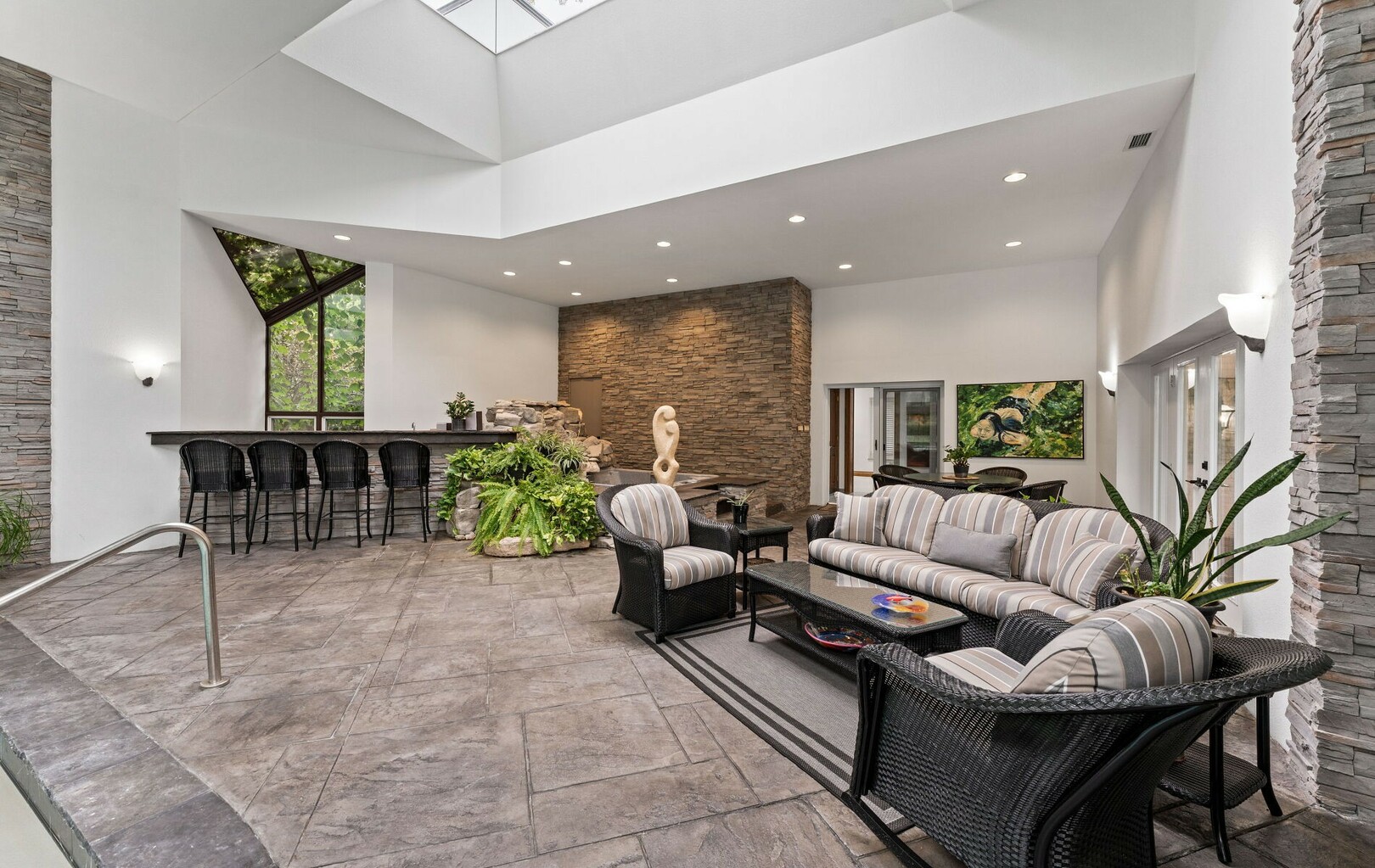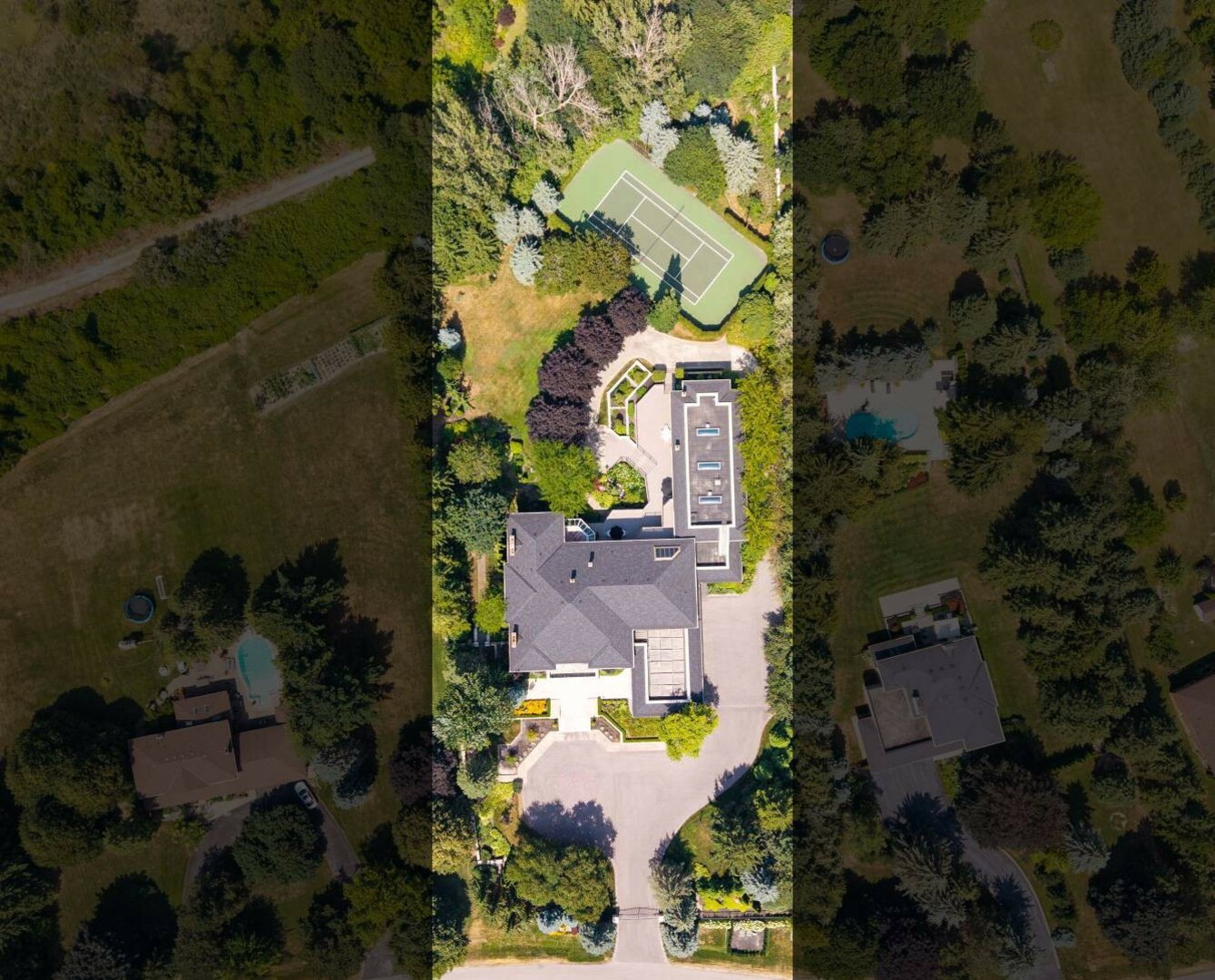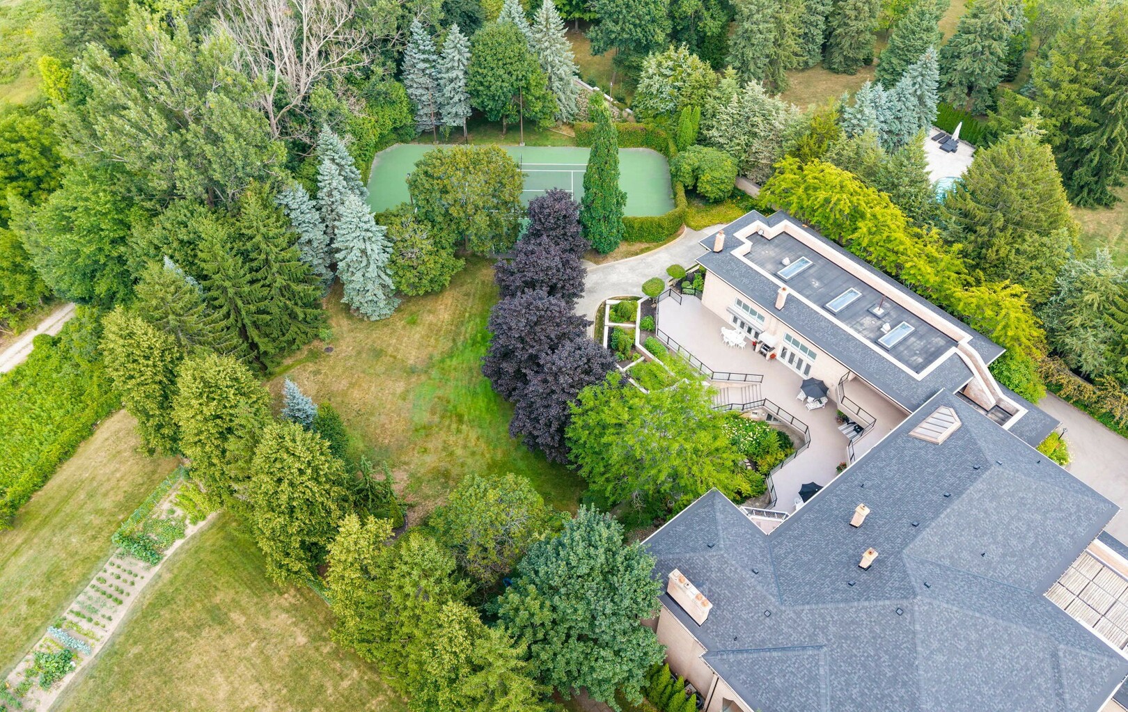 The lower level is designed for gathering and leisure, offering a recreation area, bar, sauna, and additional kitchen. Beyond, a professional-sized tennis court with LED lighting and a year-round indoor pool and hot tub create a resort-like environment. With dedicated irrigation systems, whole-home water filtration across two wells, and advanced mechanical systems, every detail is engineered for performance as much as pleasure.