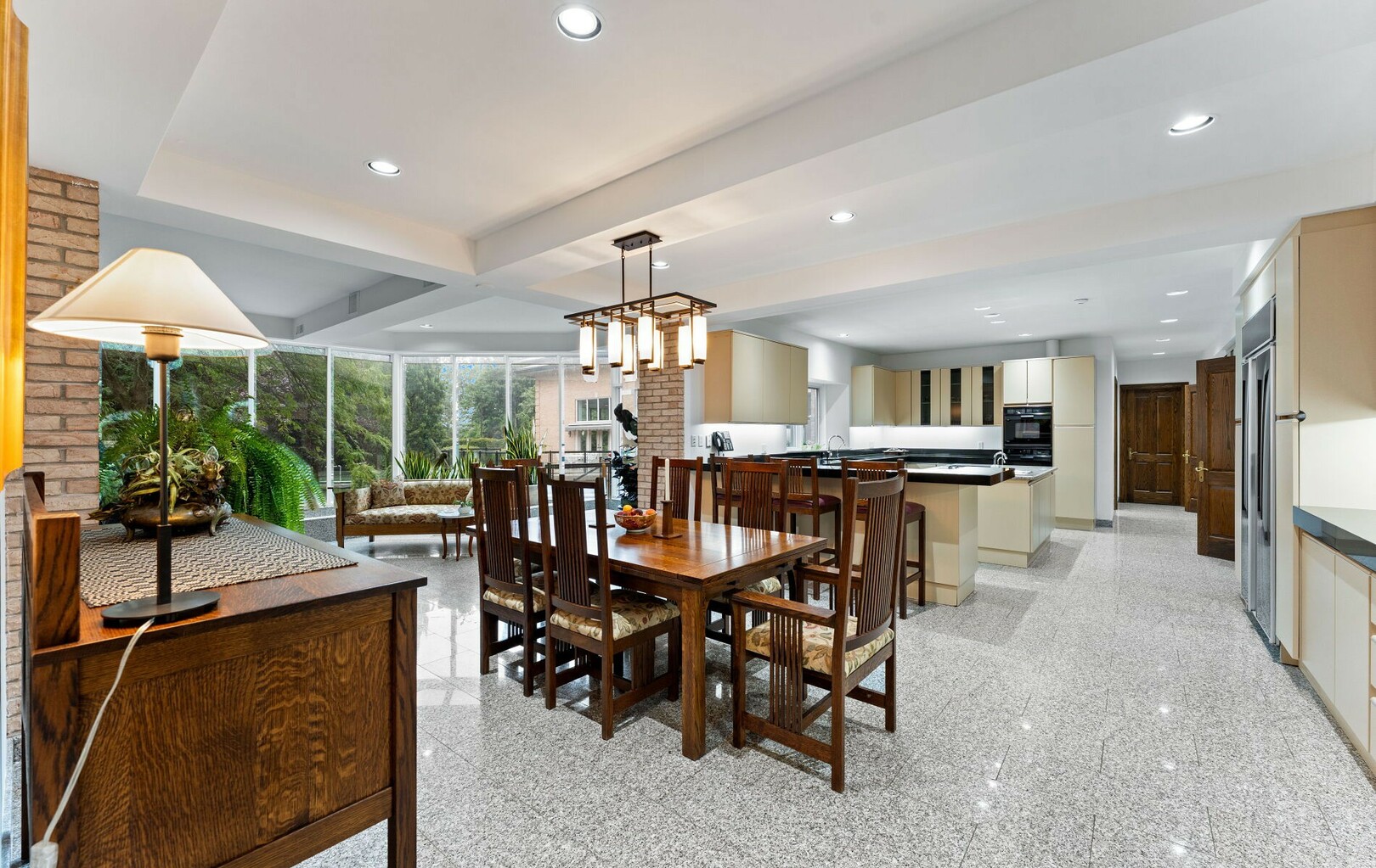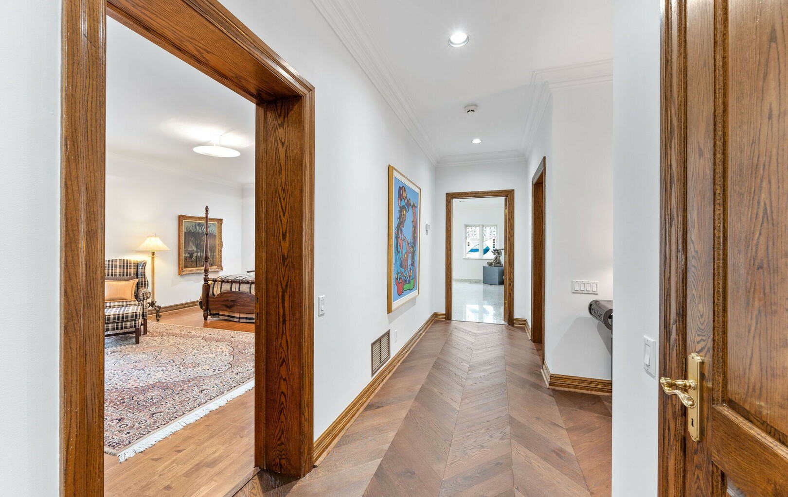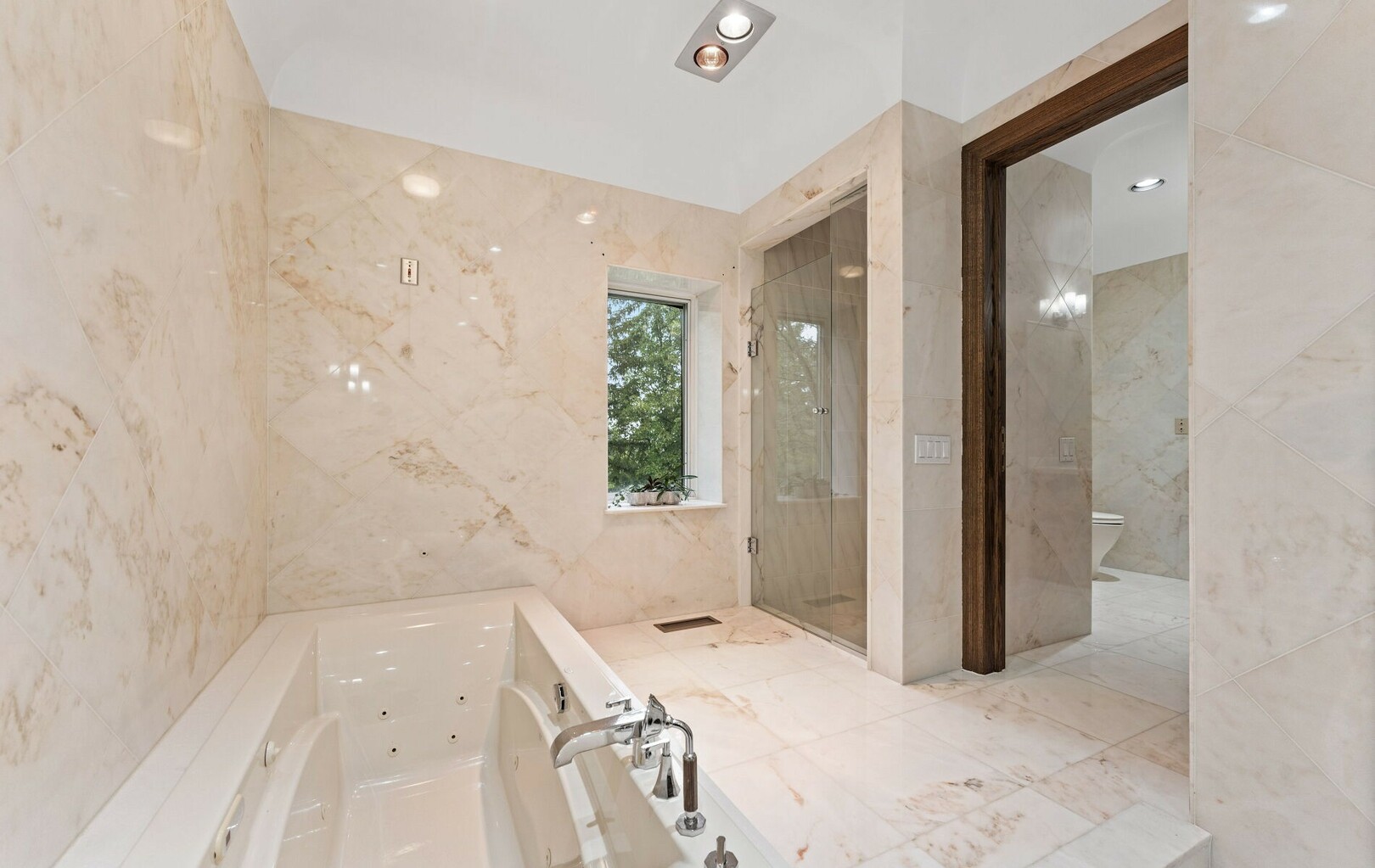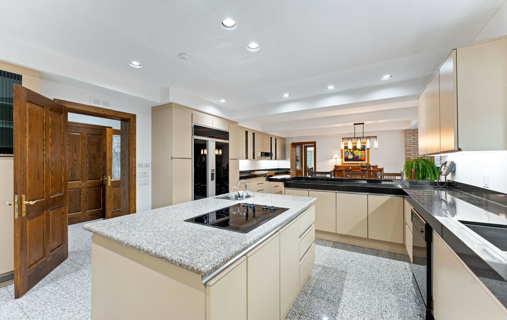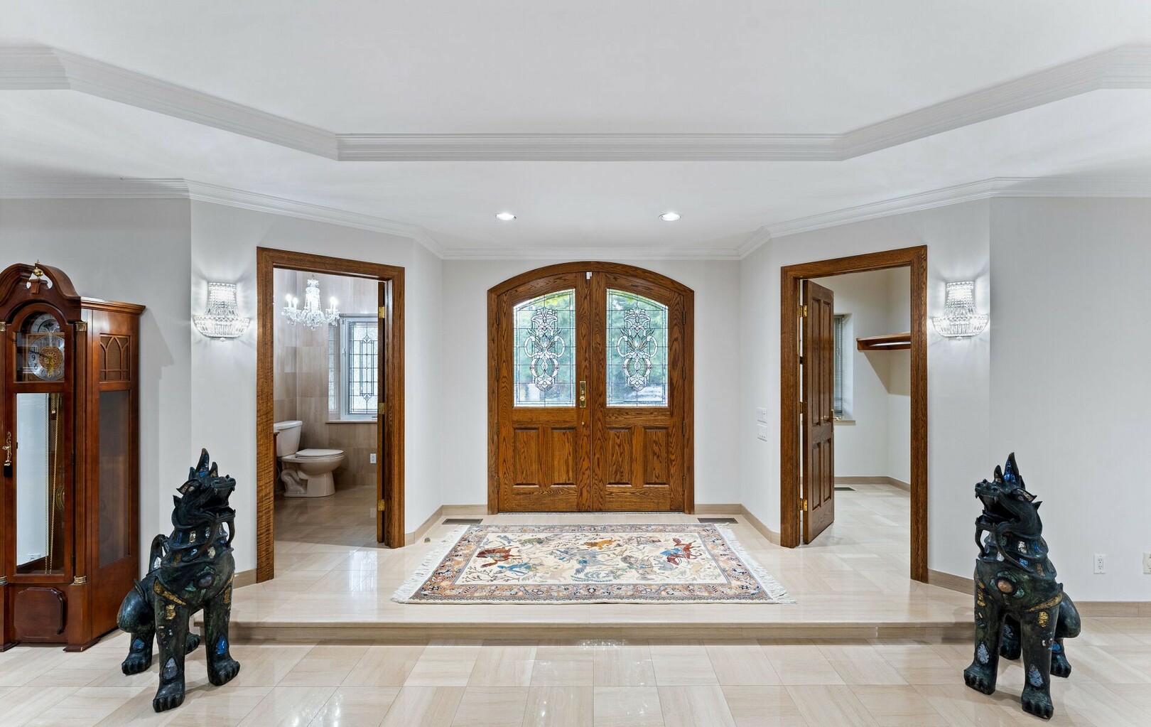 The main level balances elegance with comfort—marble floors, soaring windows, and warm woodwork set the tone. Multiple kitchens, including a chef’s haven and secondary preparation areas, ensure that hosting is effortless. Expansive principal rooms lead naturally to terraces and gardens, blurring the line between indoors and out.