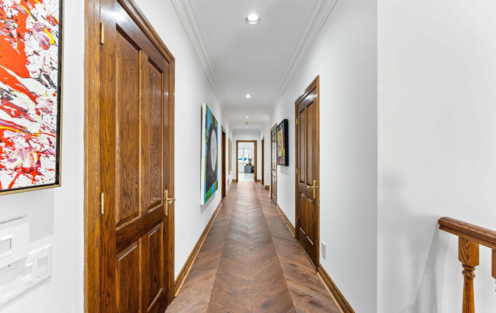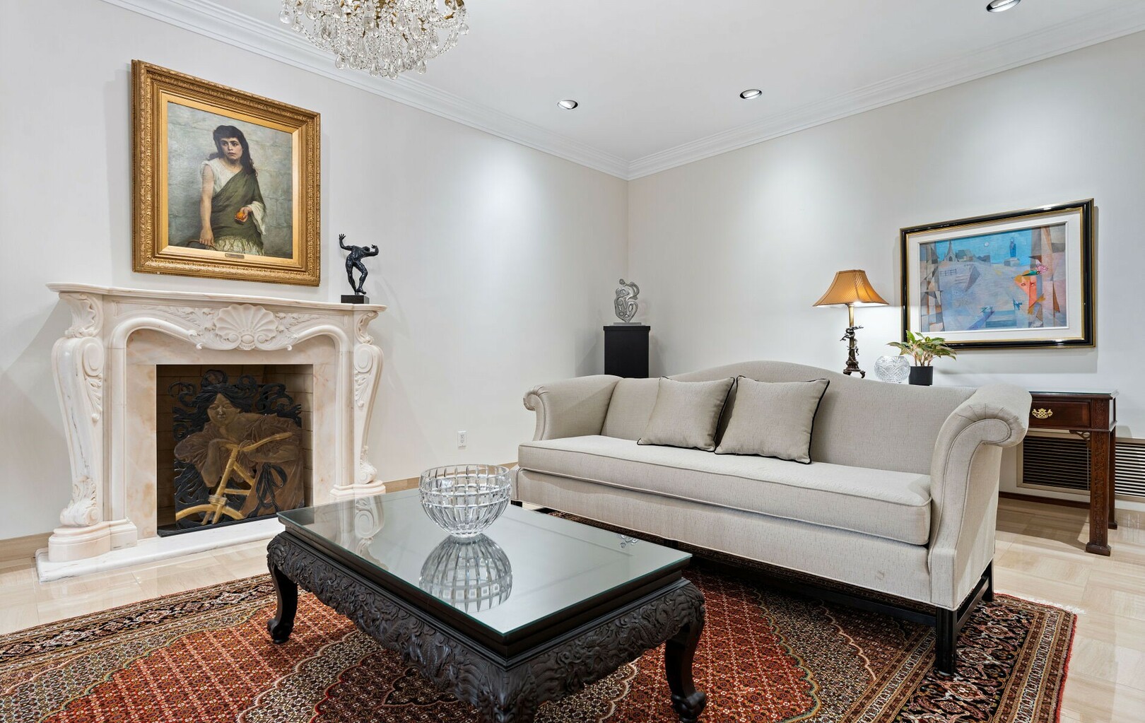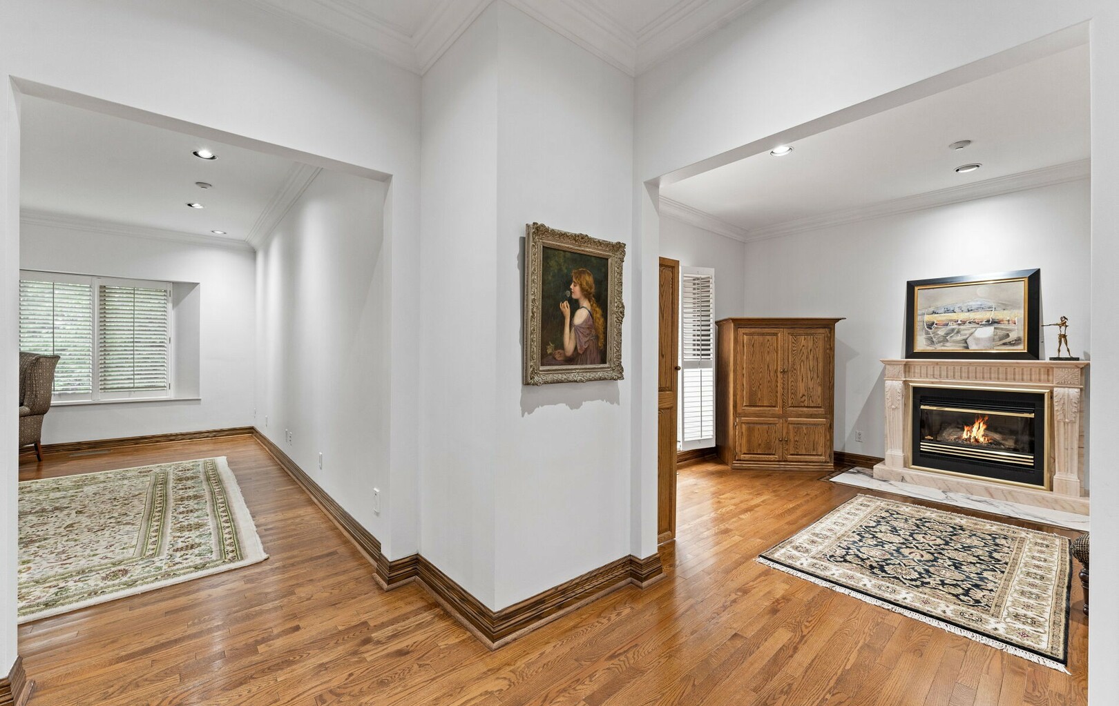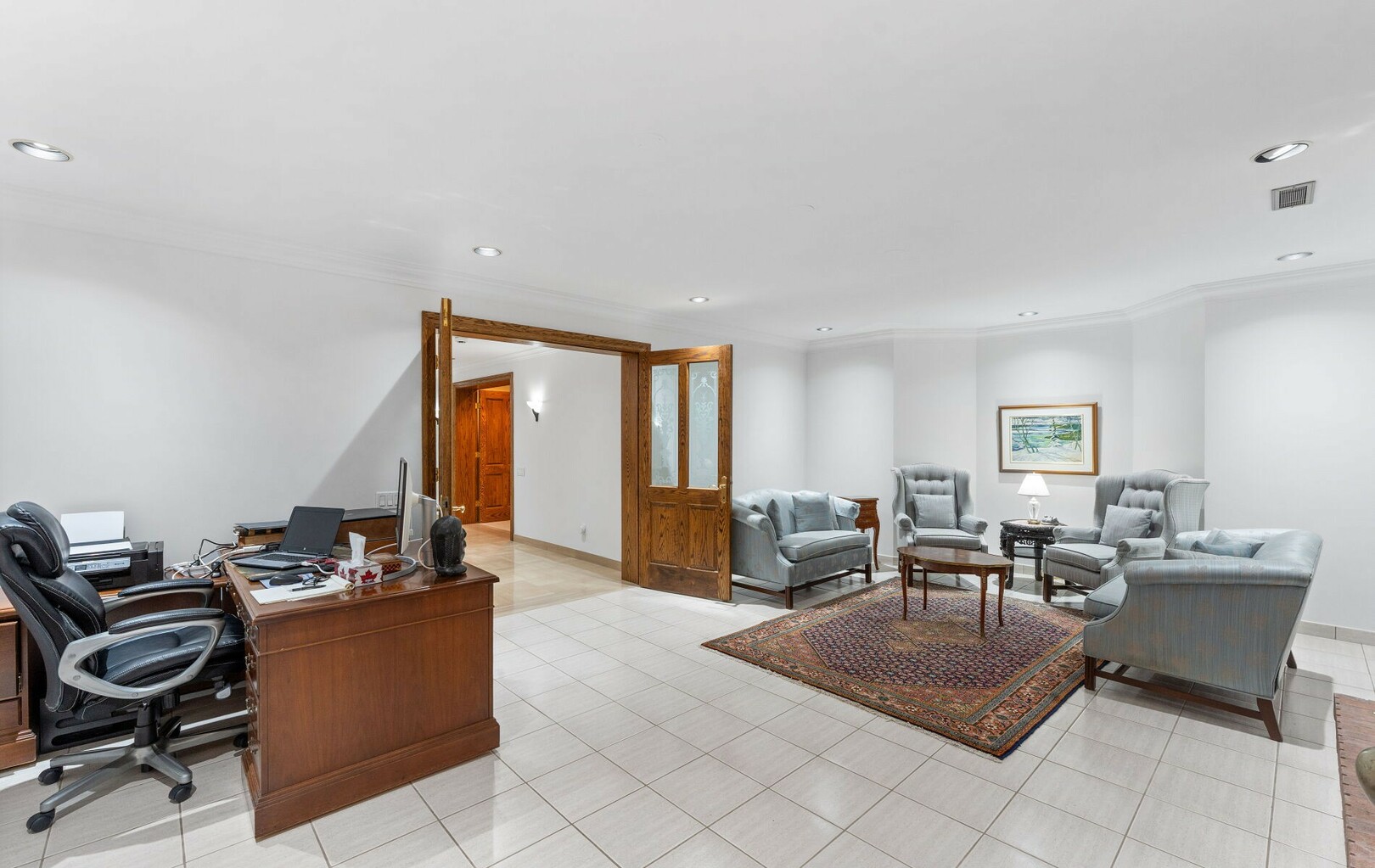 The main level balances elegance with comfort—marble floors, soaring windows, and warm woodwork set the tone. Multiple kitchens, including a chef’s haven and secondary preparation areas, ensure that hosting is effortless. Expansive principal rooms lead naturally to terraces and gardens, blurring the line between indoors and out.