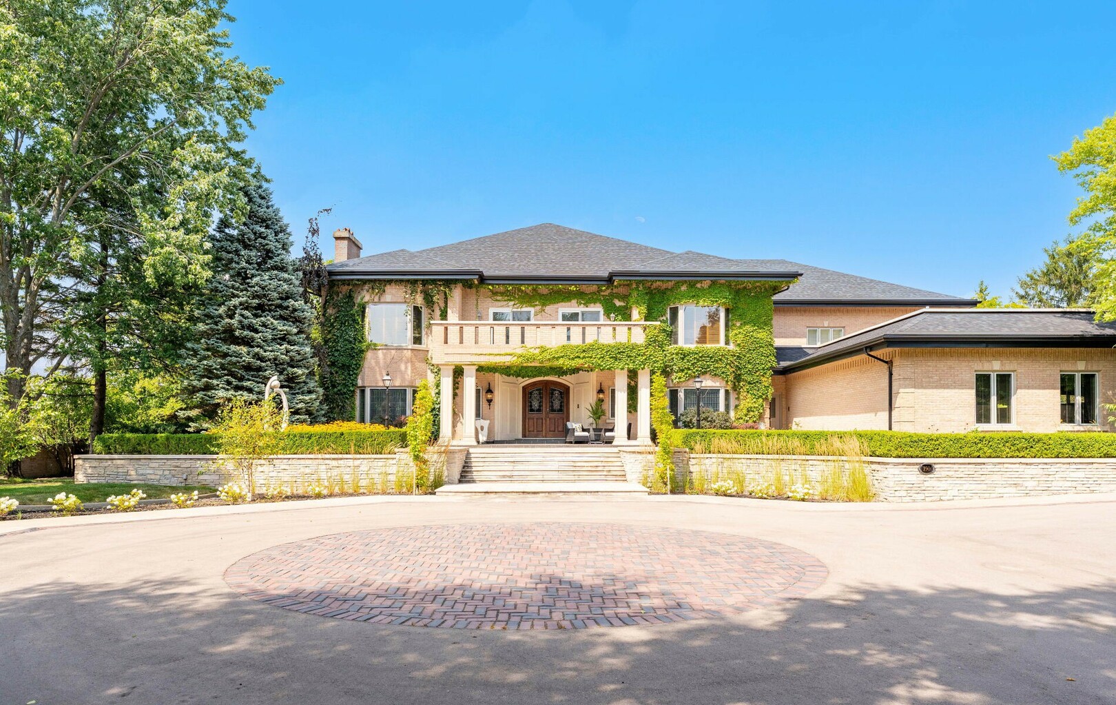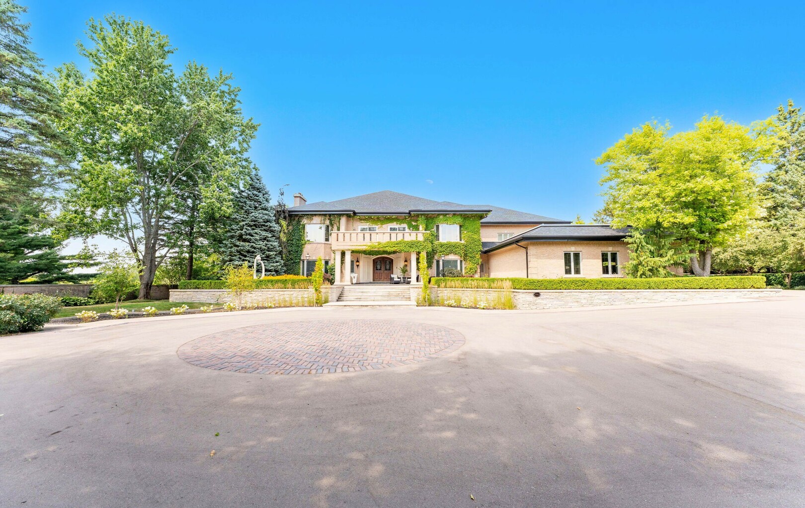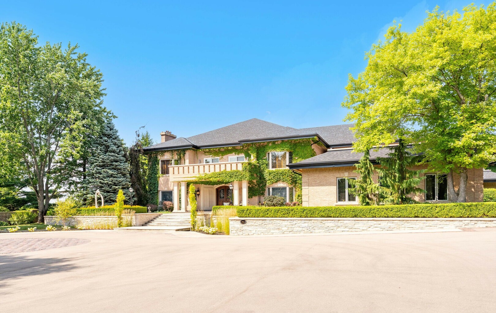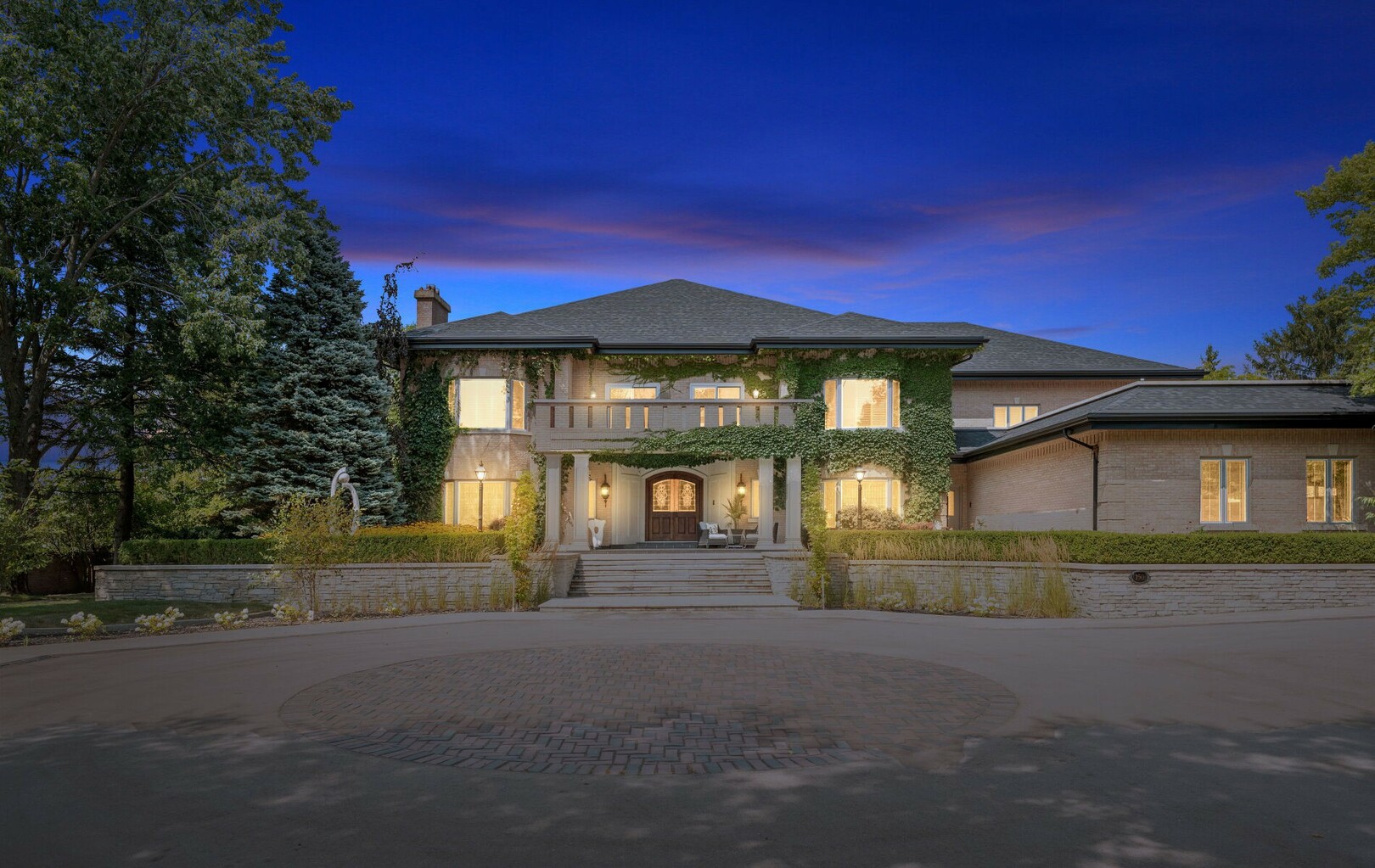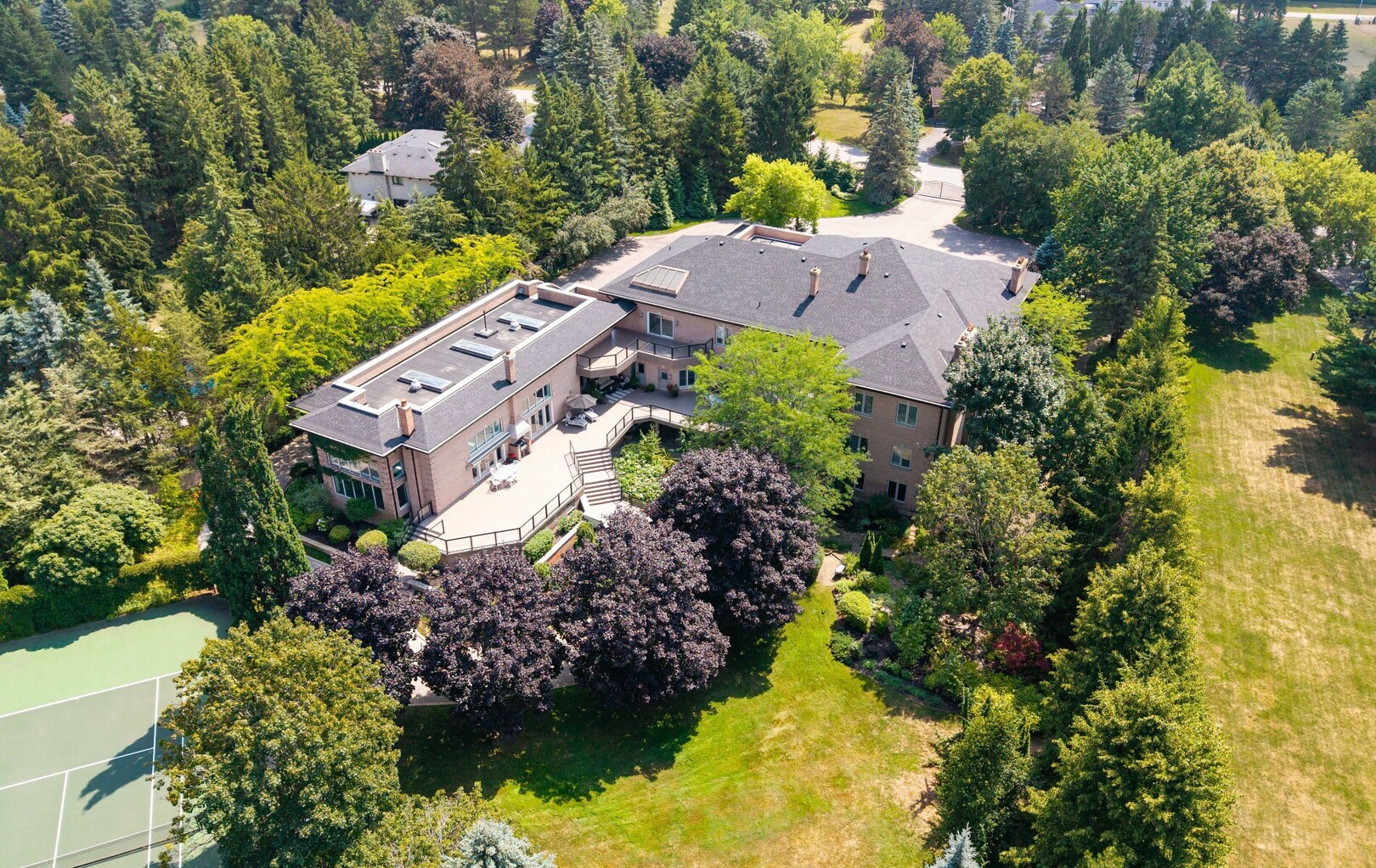 A Rare Architectural Gem! Step into a world where artistry, craftsmanship, and architectural vision meet. This one-of-a-kind estate spans over 22,000 square feet of living space and is built to stand the test of time. Constructed with solid concrete and fronted by a pure limestone façade, the residence offers unmatched enduring strength and permanence, reminiscent of a private castle.From the moment you arrive, the homes presence is undeniable. Expansive manicured gardens, a professional sized tennis court with LED lighting, and a four-car garage set the tone for an estate designed with both elegance and functionality in mind. Inside, the amenities continue with a large indoor bromine pool and hot tub with a walk-out to the terrace, while the lower level offers a kitchen, bar area, and recreation room with its own walk-out to the grounds. Spaces flow effortlessly. Inside, the home reveals layer upon layer of unique detail and artistry:A striking floating staircase anchors the main foyer with architectural flair Handcrafted stained glass windows transform light through gentle refraction, filling each room with soft elegant hues. Solid wood doors, intricate trim work, and custom millwork speak to the caliber of craftsmanship rarely seen today. A curated art collection and Arts & Crafts-inspired elements add depth, character, and artistic soul throughout. The estate offers an exceptionally flexible layout designed to adapt to many lifestyles with 5 bedrooms in total. Four bedrooms each offer their own luxurious 5-piece ensuite, complete with elegant vanities, generous built-in cabinetry, and/or spacious walk-in closets. The Primary Suite is a private retreat, featuring a cozy sitting area with a private wet bar, walk-out access to a balcony, a lavish 7-piece bathroom, a custom built-in armoire, and an expansive walk-in closet. All walk-in closets throughout are equipped with closet organizers. (id:9346)