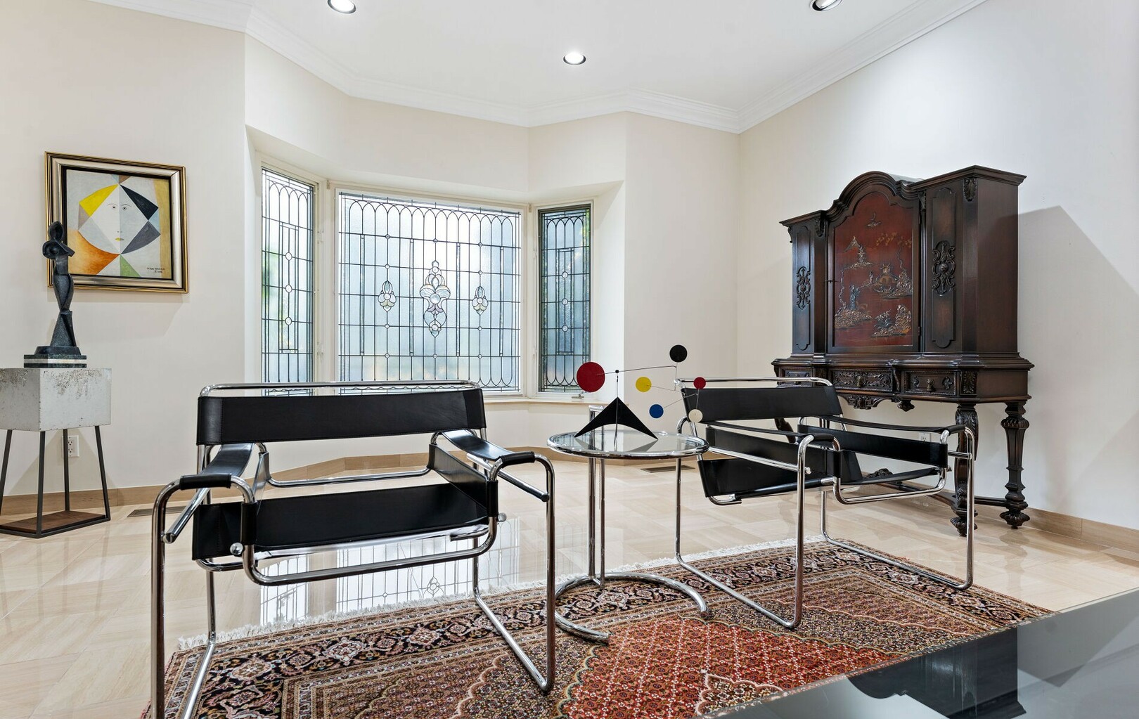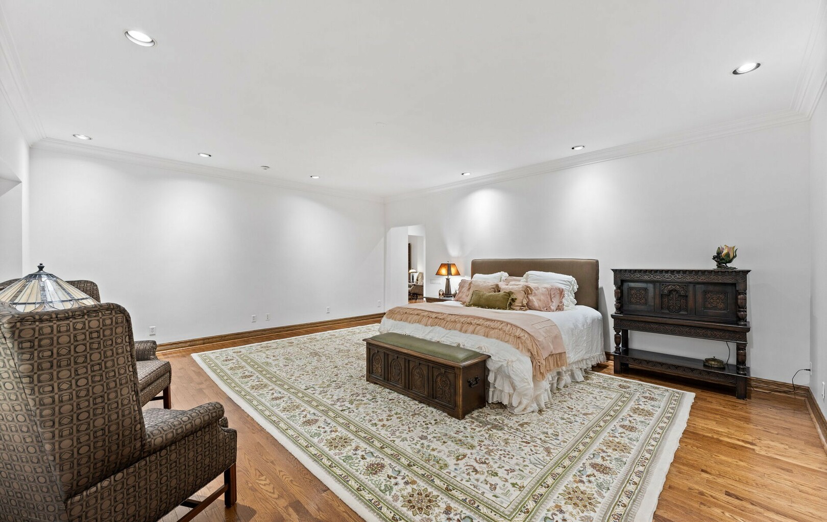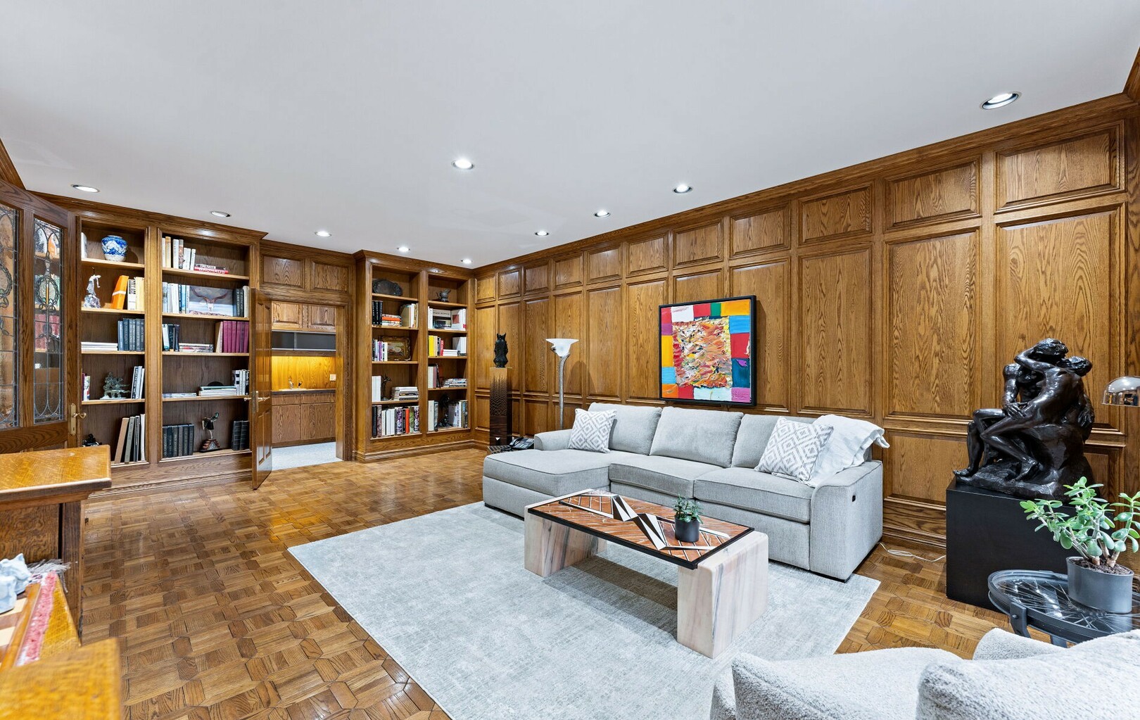 Inside, over 22,000 square feet of living space unfolds in seamless harmony. Every element, from handcrafted stained glass windows to artisan millwork, reflects a rare commitment to detail. The flow of the home invites both intimate family living and grand-scale entertaining.