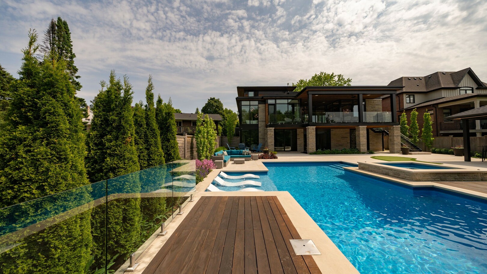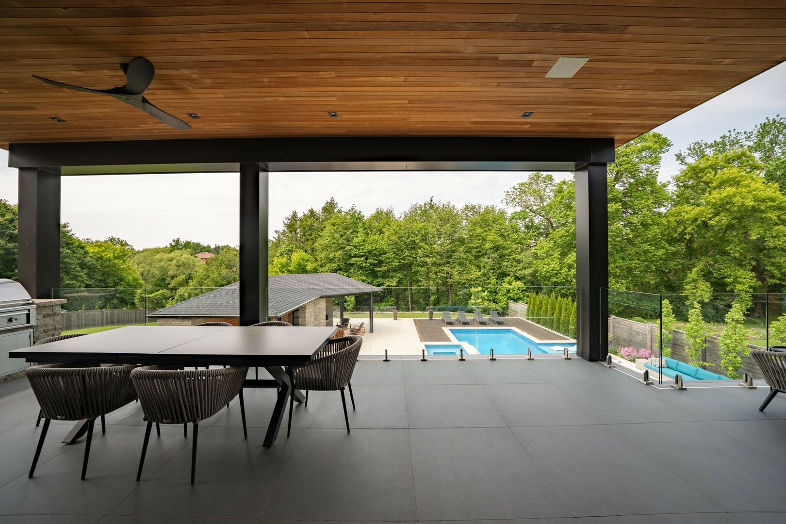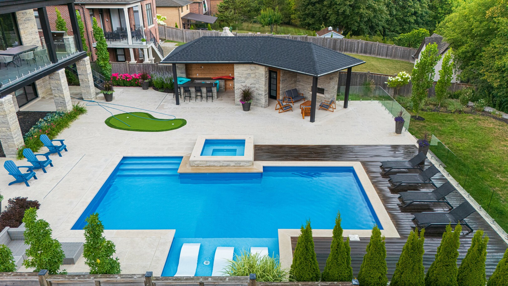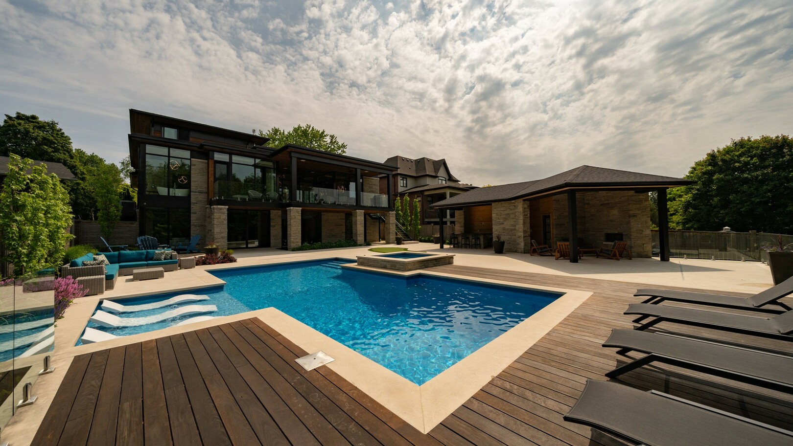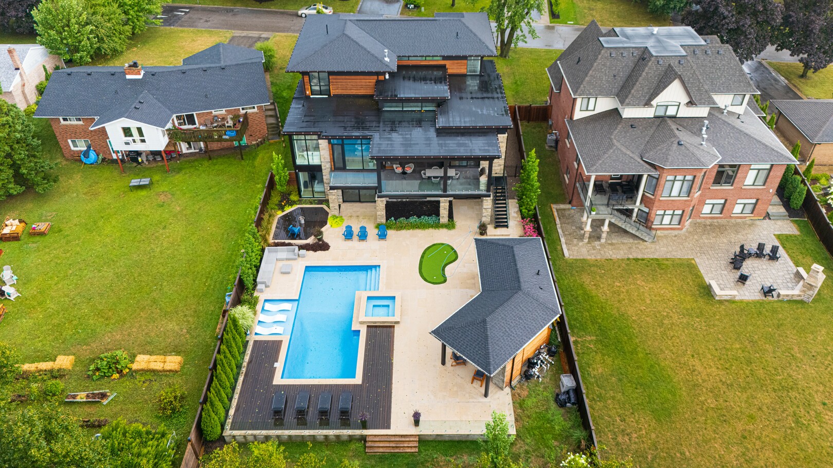 A masterpiece by David Small Designs, this architectural gem offers an elevated lifestyle with cutting-edge design and sophisticated finishes for the most discerning buyer. Soaring 10-20 ft ceilings, expansive floor-to-ceiling windows, wide-plank 8 white oak hardwood, and Eurofase designer lighting create a showstopping backdrop for everyday living and entertaining. - Smart home automation throughout (Lutron, Sonos) seamlessly blends technology with comfort. The open-concept chefs kitchen is a culinary dream, featuring premium Miele appliances and a spacious walk-in butlers' pantry. - Indulge in the bespoke main floor primary suite offering privacy, elegance, W/o to balcony, ravine views and custom millwork throughout. The second-floor family room can easily be converted into an additional bedroom to suit your needs. - The premium walkout basement is designed for both relaxation and entertainment, featuring a serene yoga studio, sophisticated cocktail lounge, and an inviting media room. Step outside to your private backyard oasis complete with an inground saltwater pool, hot tub, covered loggia, and a cabana with a cozy fireplace. Fully landscaped with elegant Indiana limestone and backing onto a tranquil ravine, this outdoor space offers unmatched privacy and natural beauty. - Additional Highlights: Heated driveway and walk way, Heated Floors,Impeccable craftsmanship & attention to every detail! - Located Mins To Highway 400, go train, Kings Finest Schools ( Country Day/Villa Nova/ King City High) walking distance to restaurants, amenities, Parks and walking trails. (id:9346)
